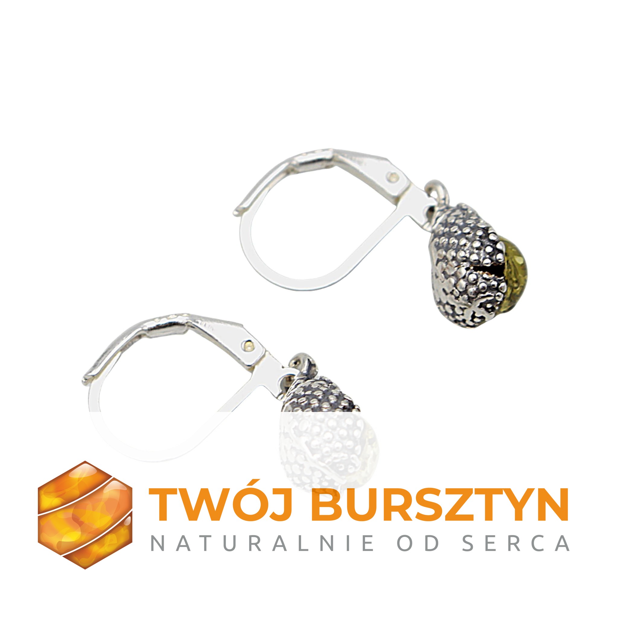 JEŻE KOLCZYKI z bursztynem srebrne JEŻYKI bursztyn