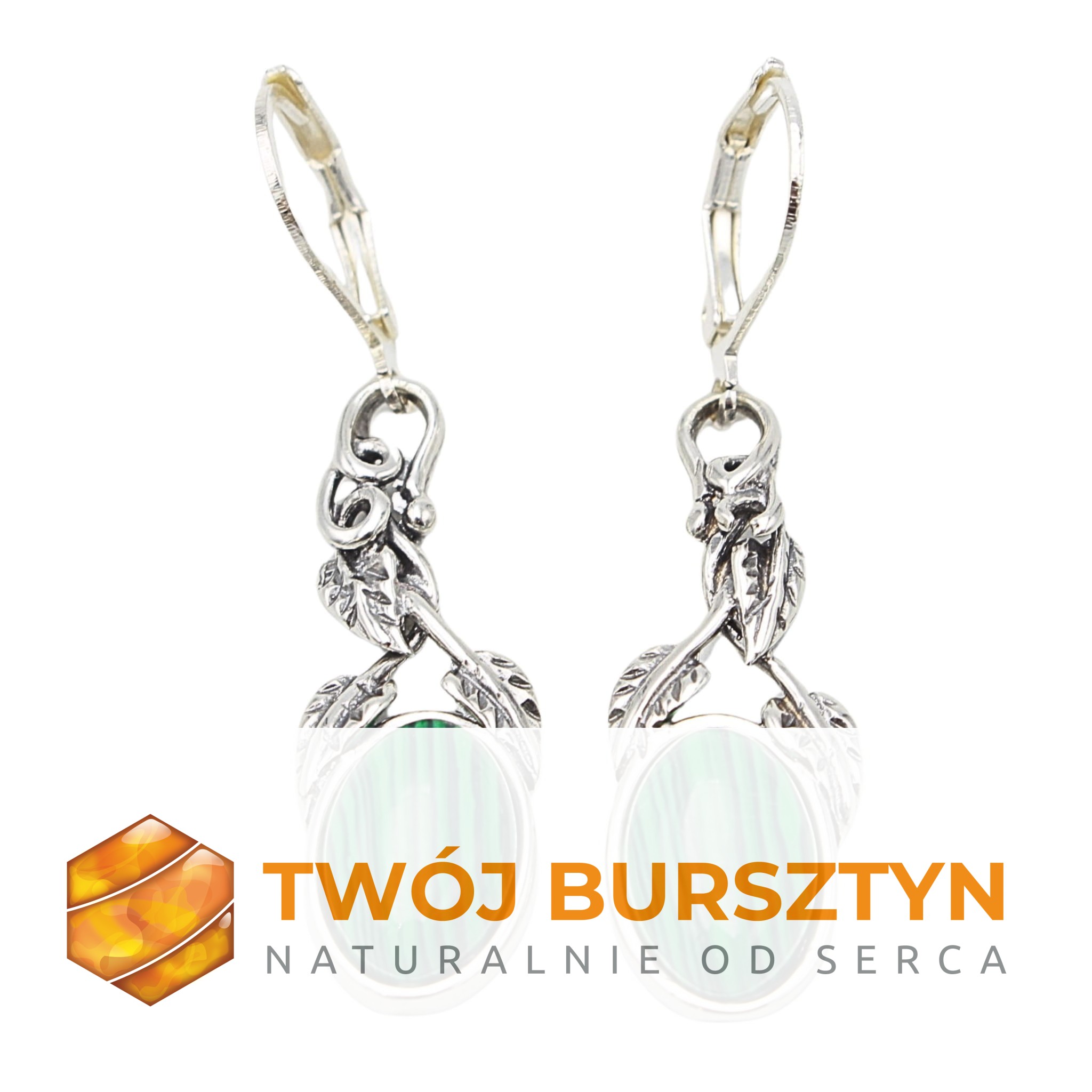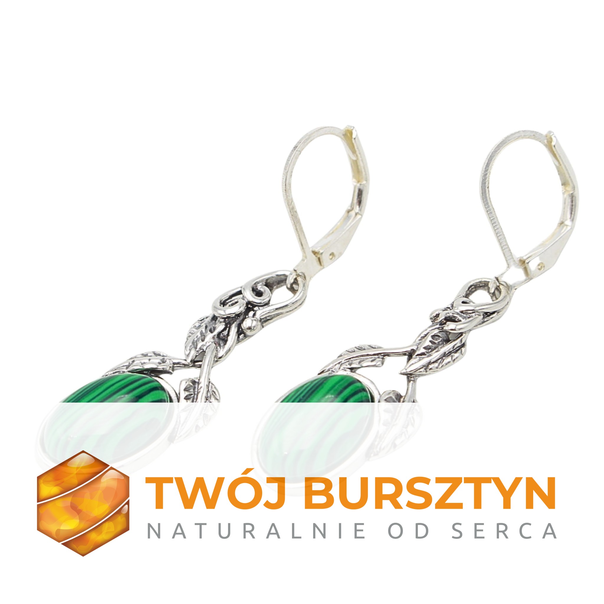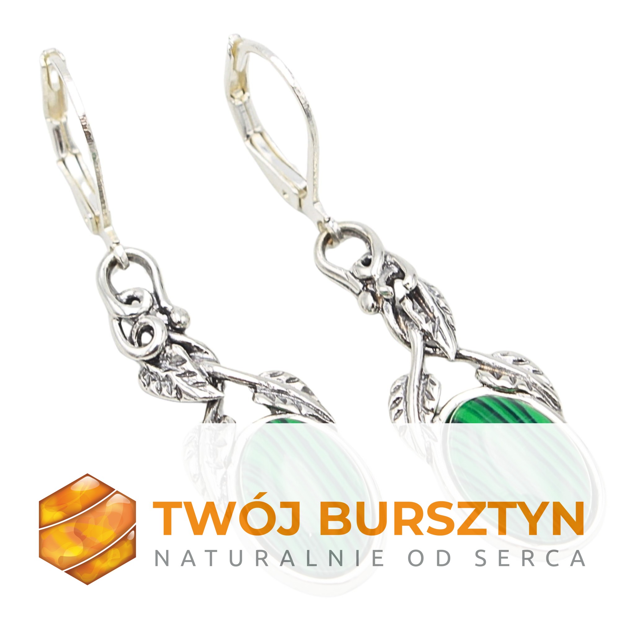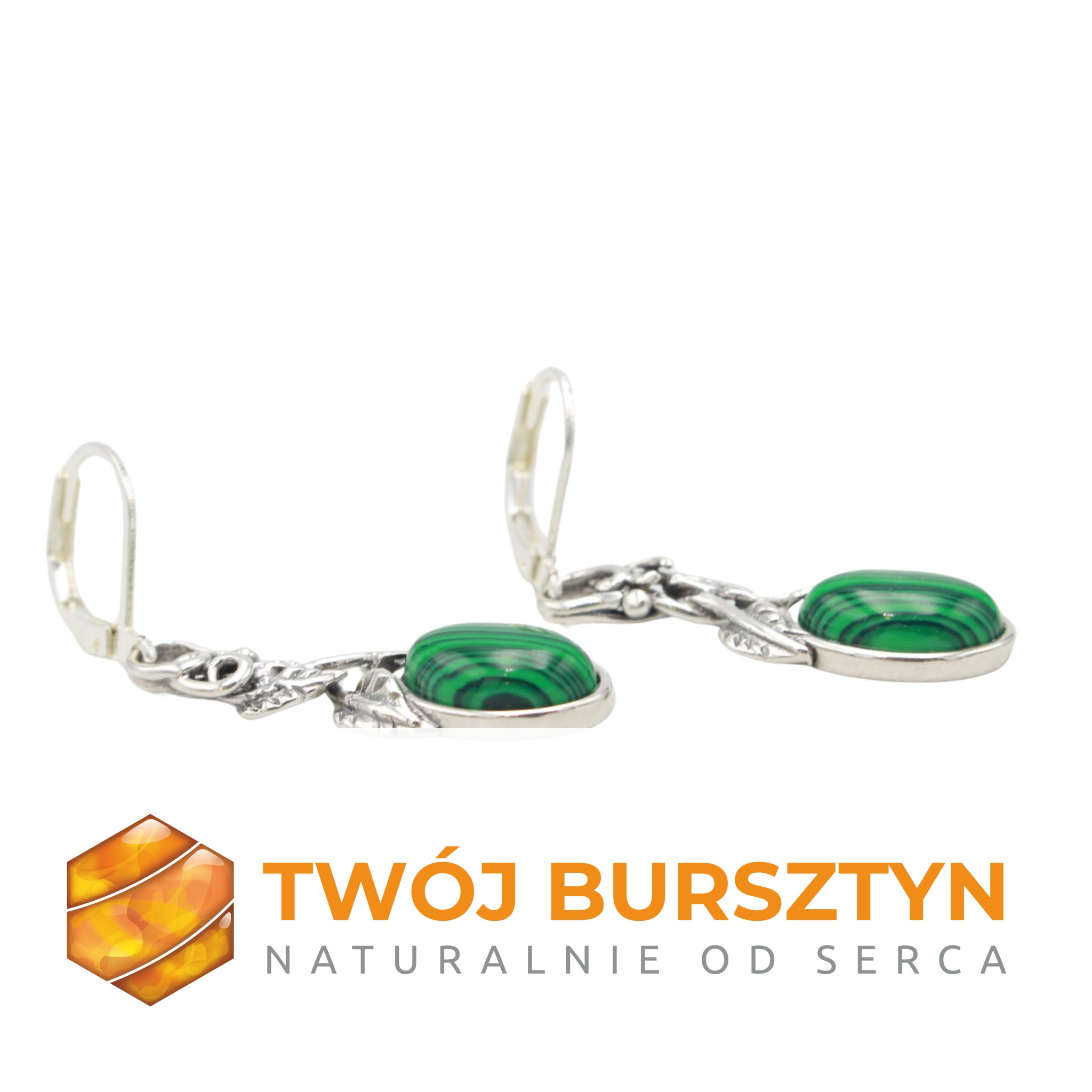 KOLCZYKI SREBRNE Z MALACHITEM malachit SREBRO 925