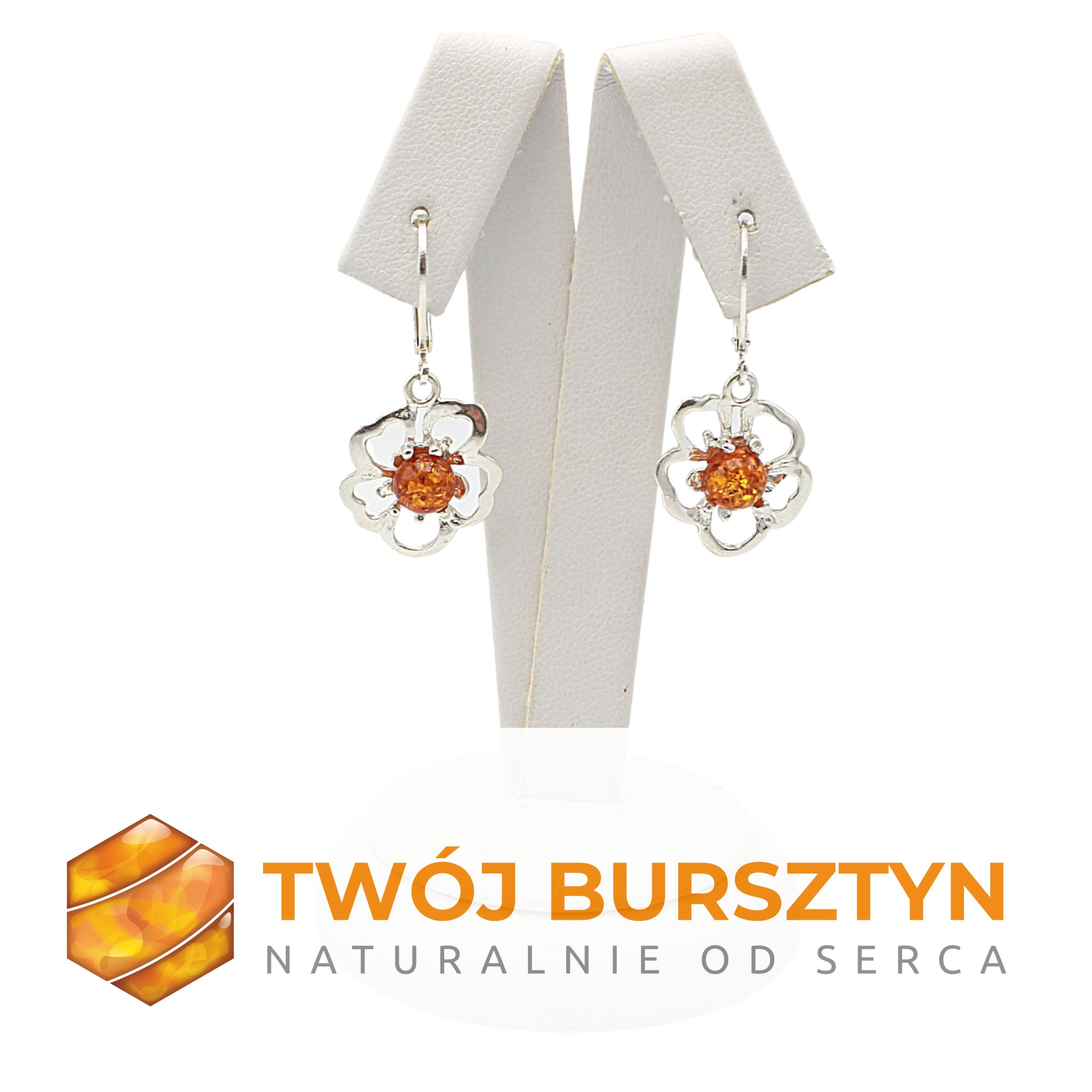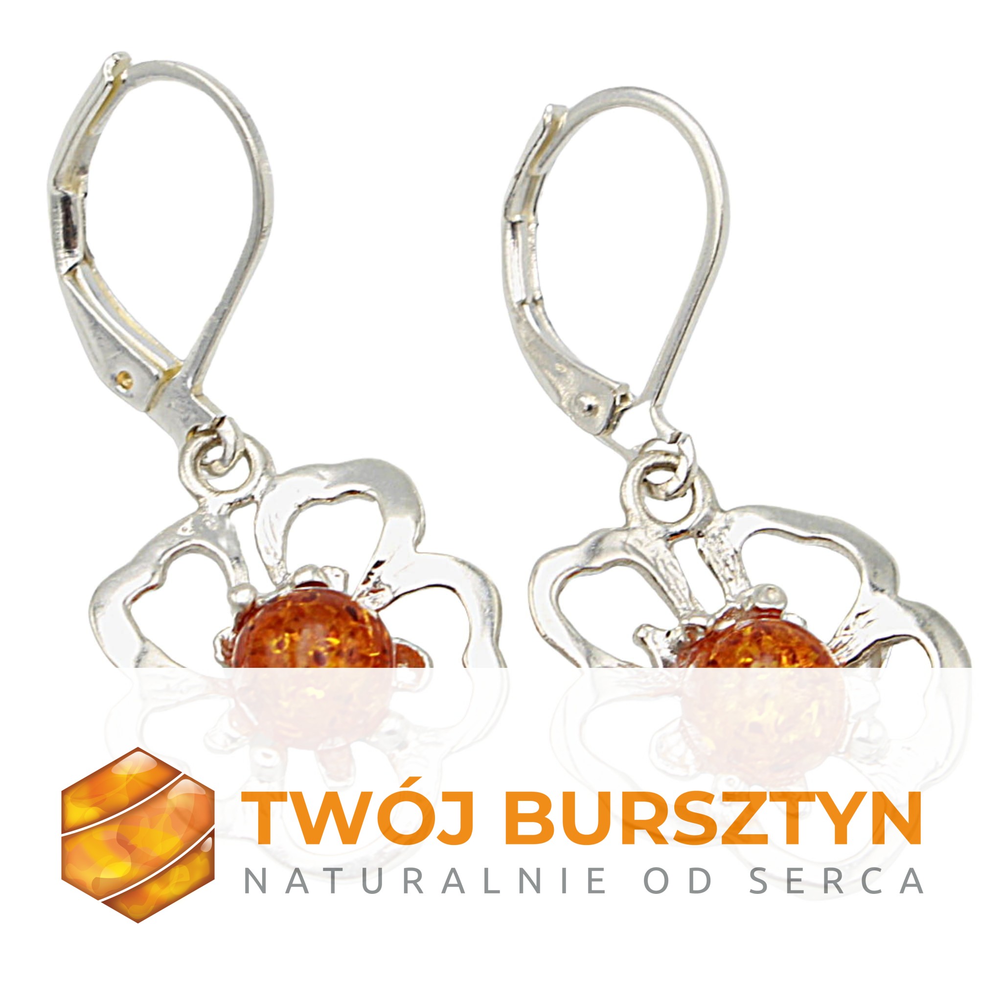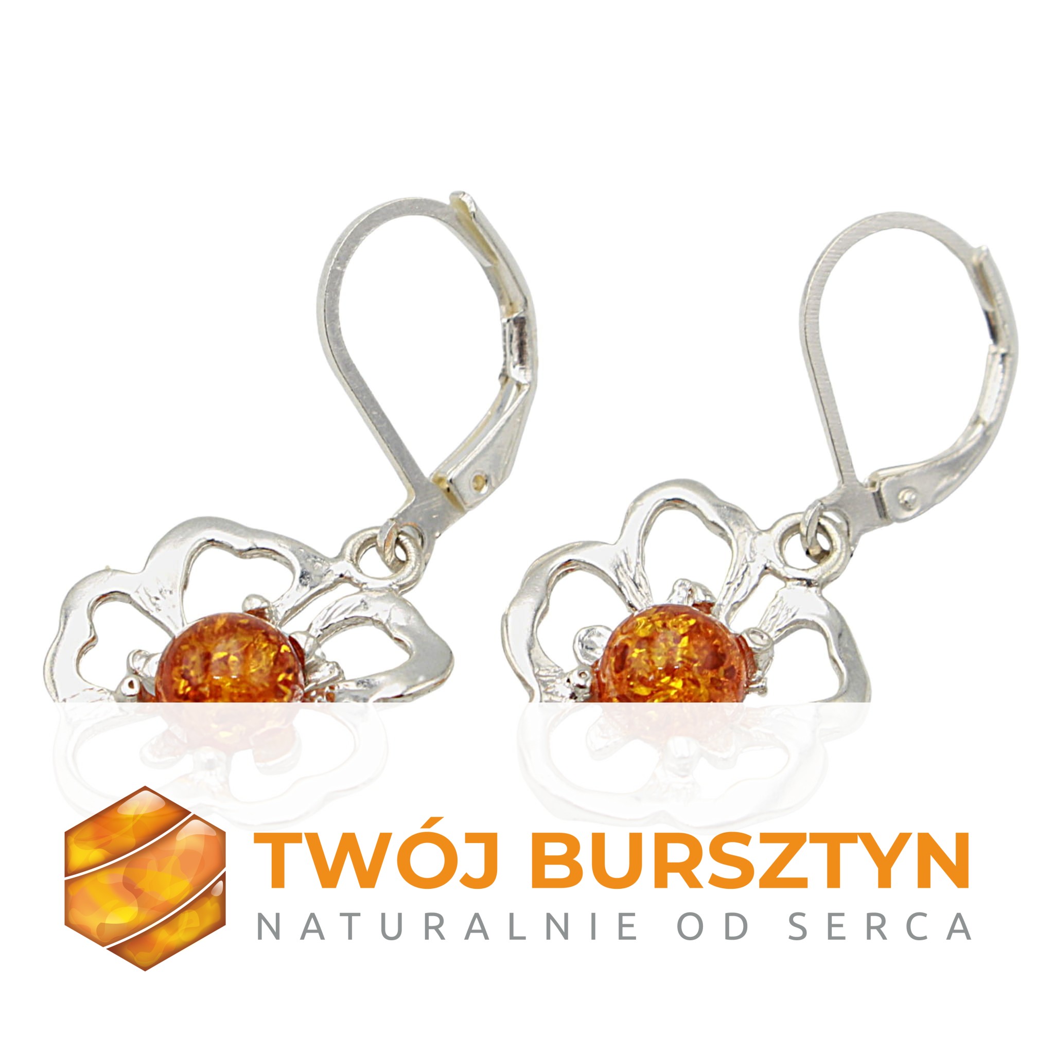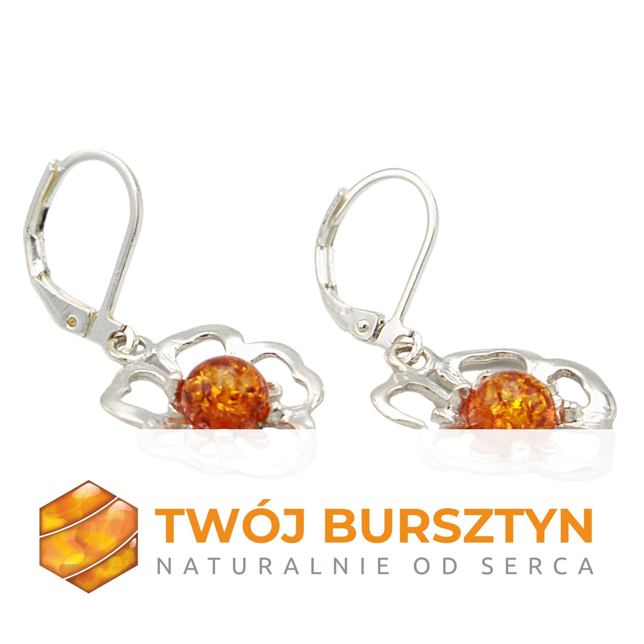 KOLCZYKI SREBRNE Z NATURALNYM BURSZTYNEM BURSZTYN