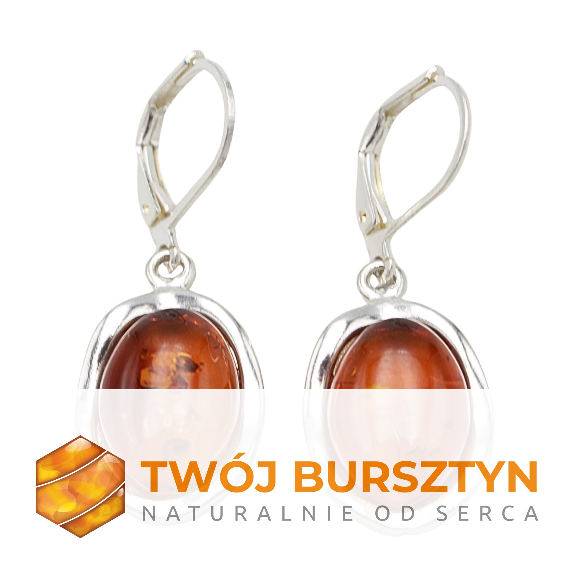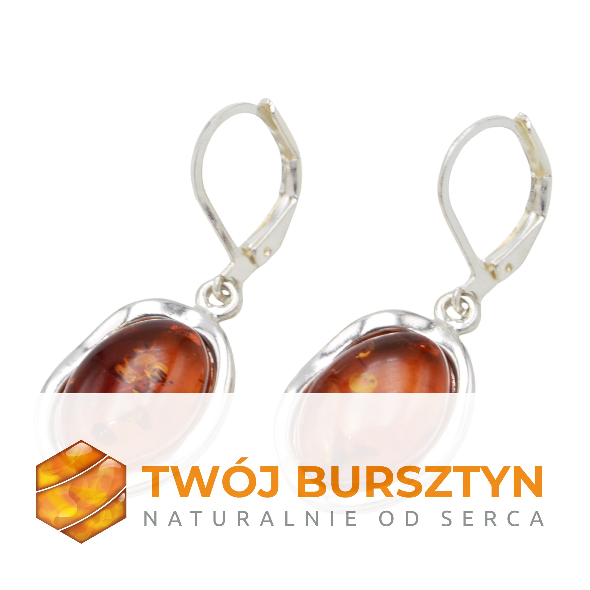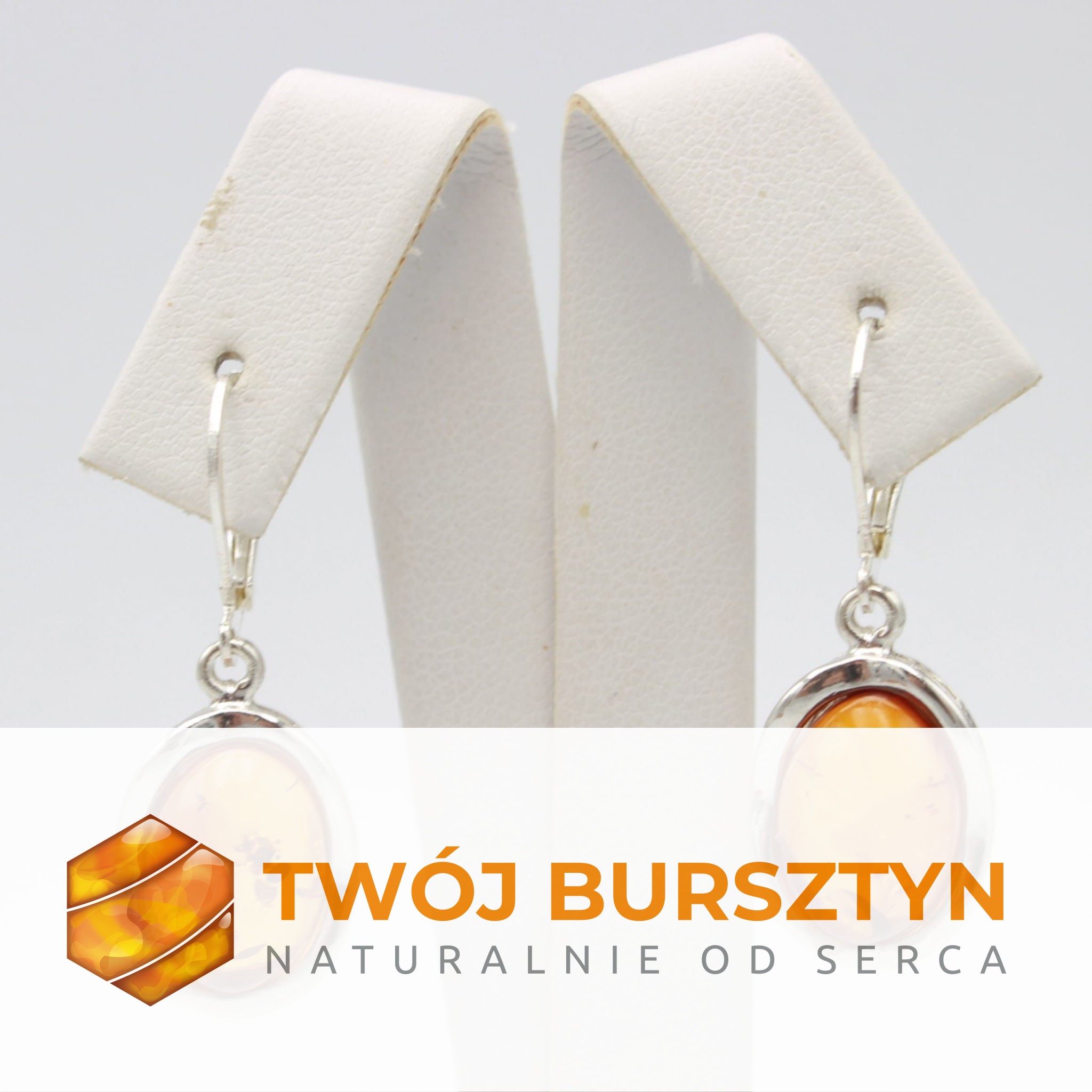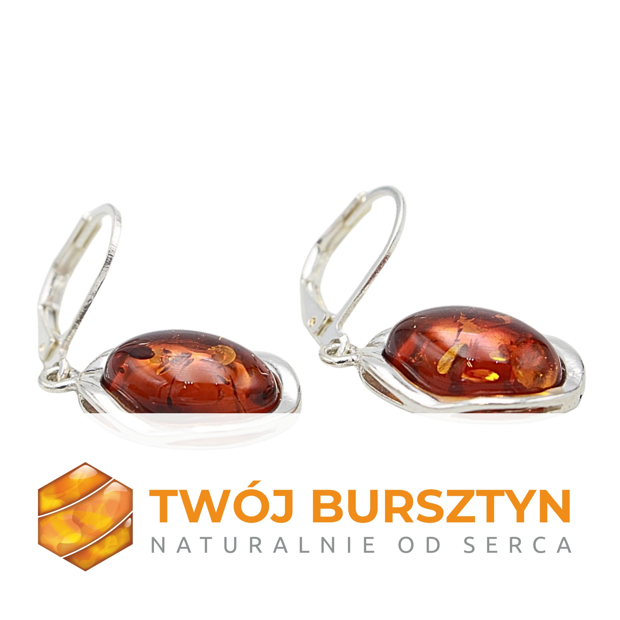 KOLCZYKI SREBRNE Z NATURALNYM BURSZTYNEM BURSZTYN