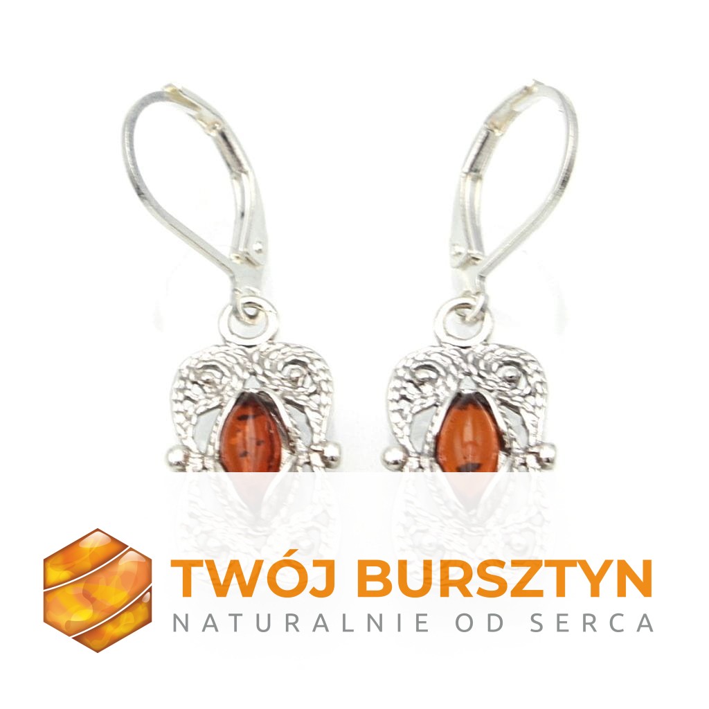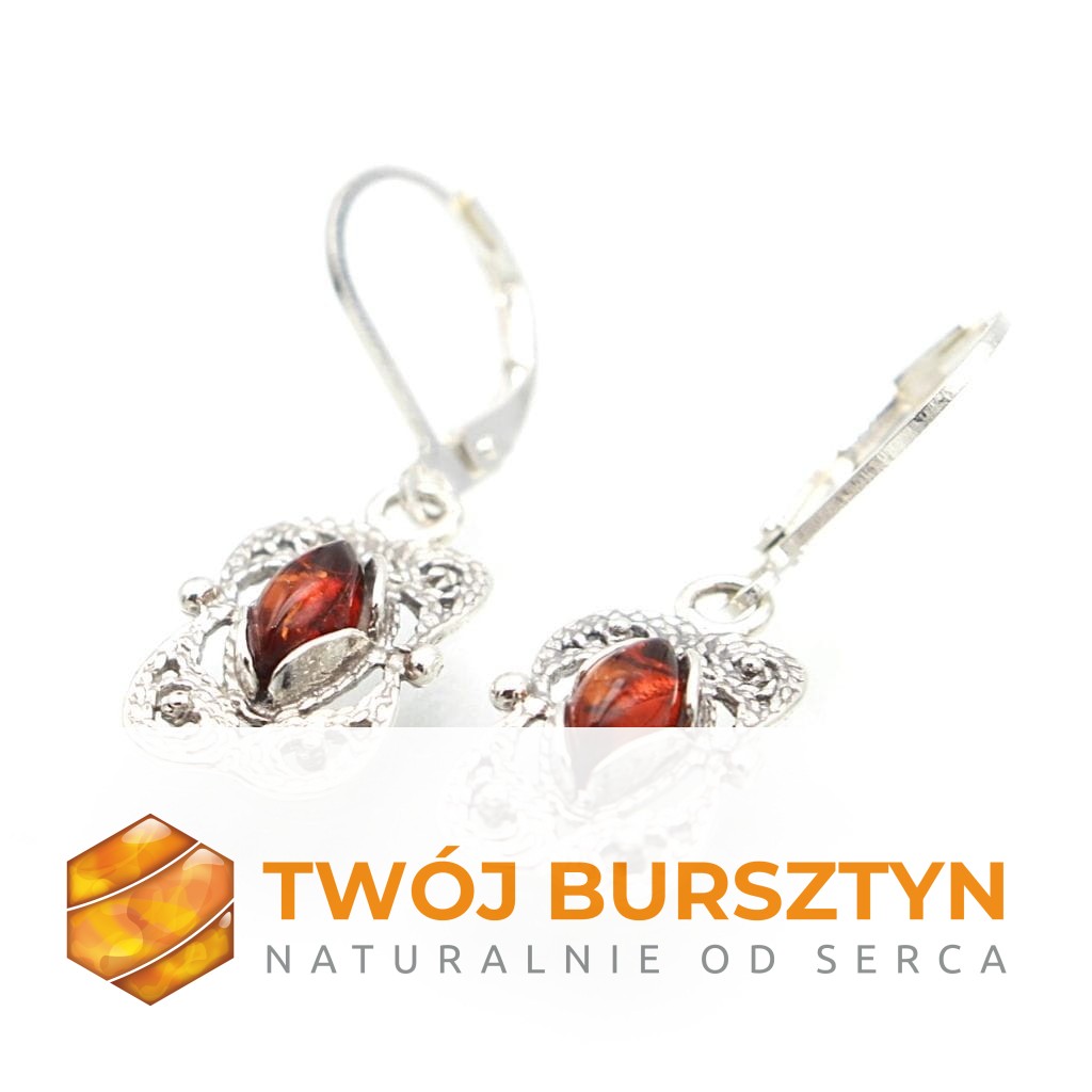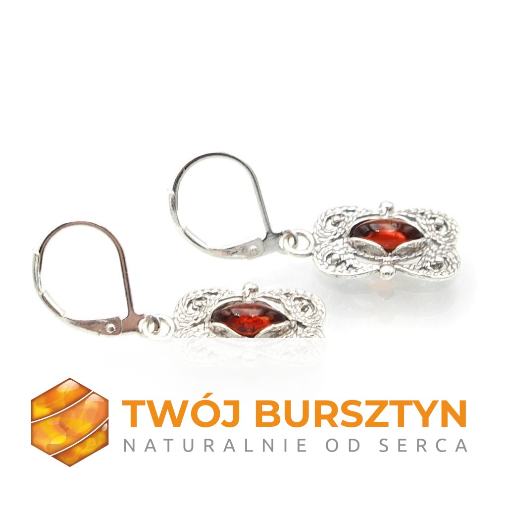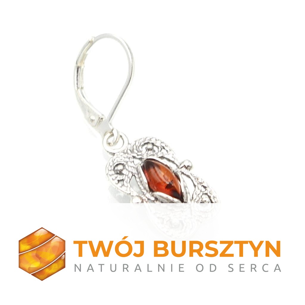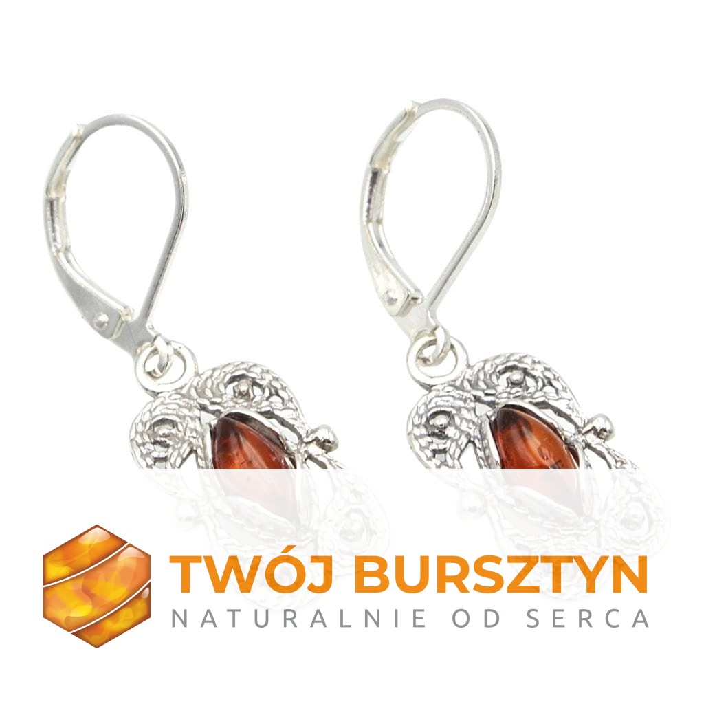 KOLCZYKI SREBRNE Z NATURALNYM BURSZTYNEM BURSZTYN