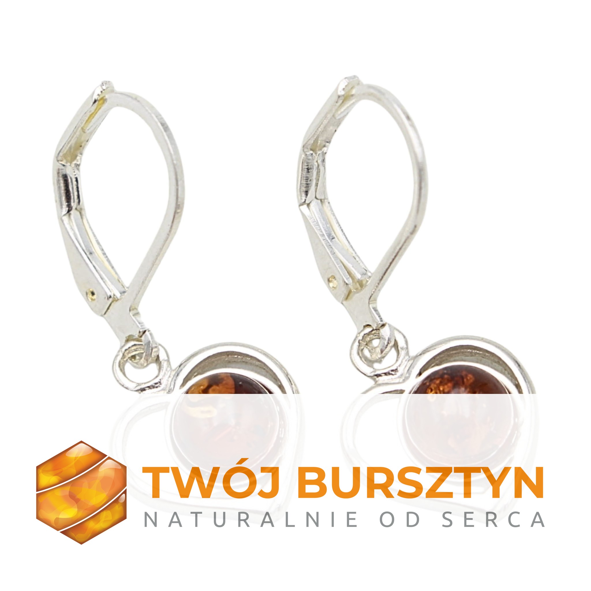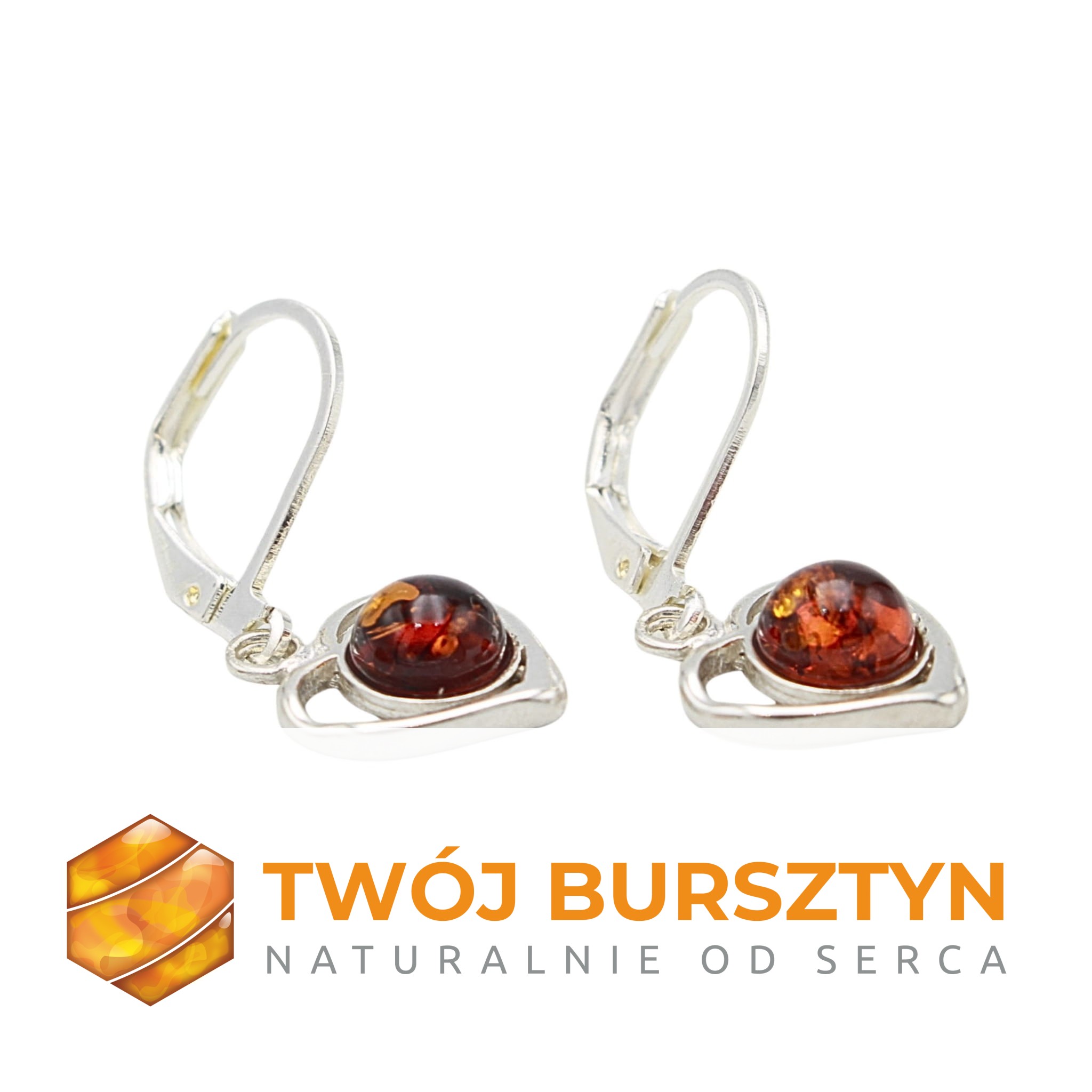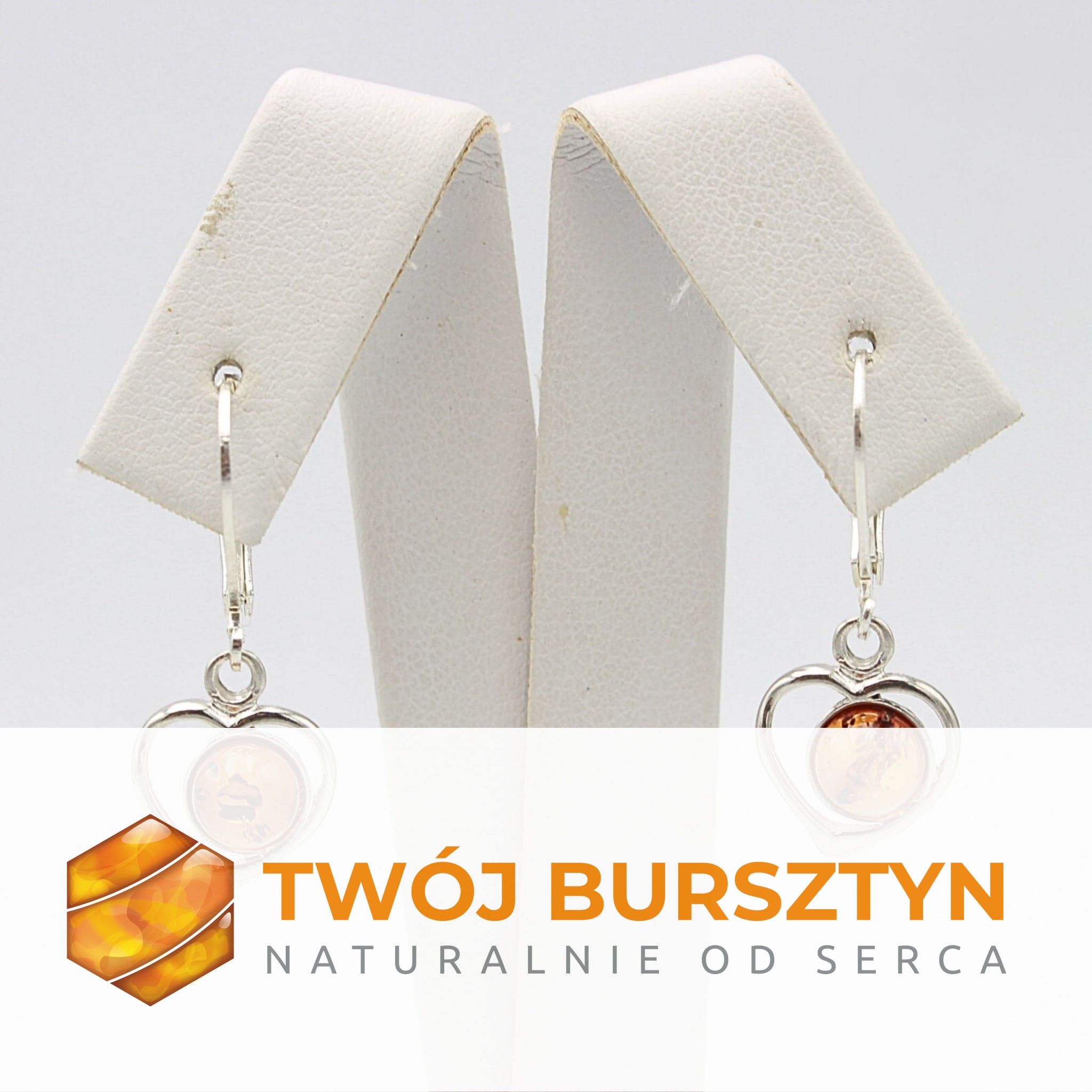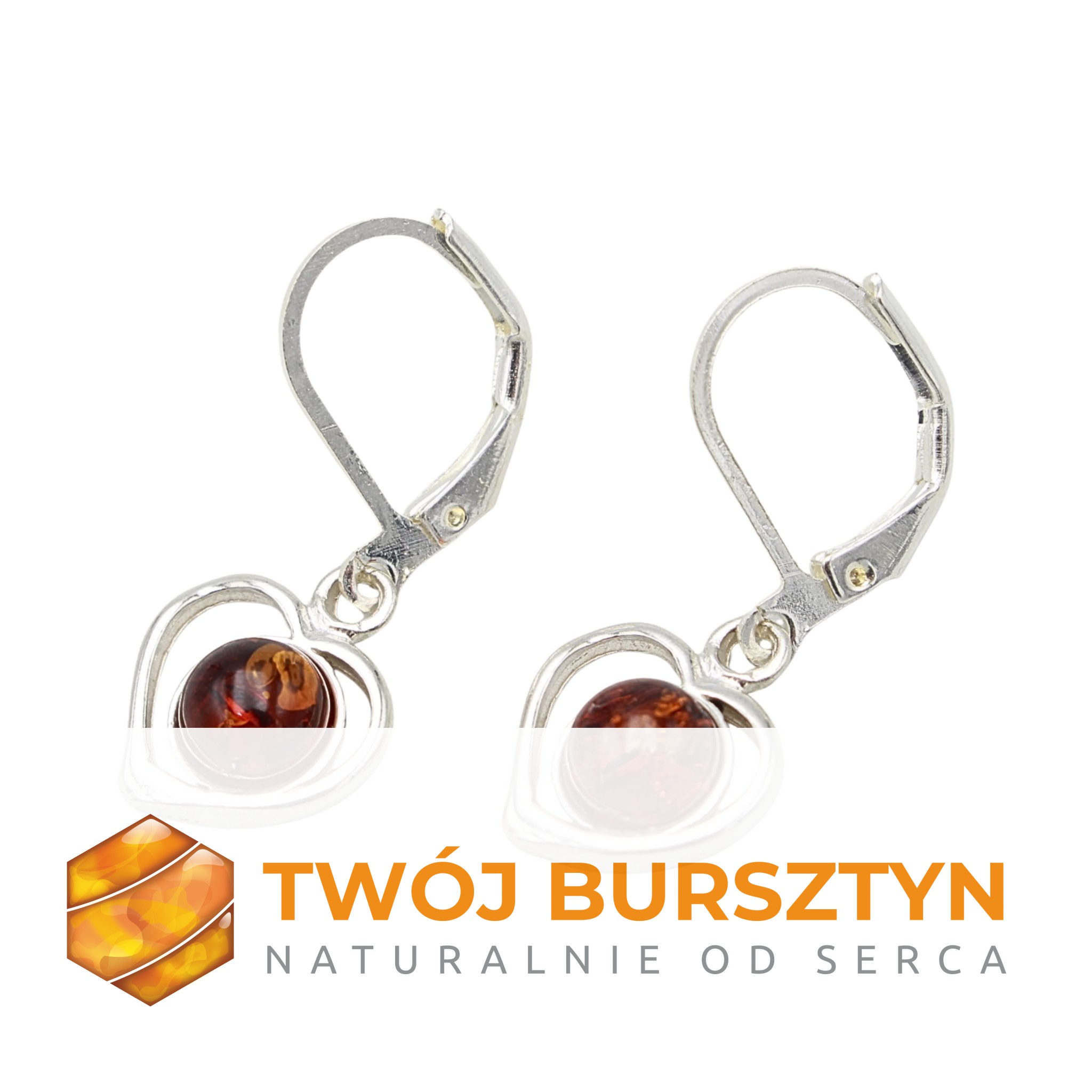 KOLCZYKI SREBRNE Z NATURALNYM BURSZTYNEM SERCA