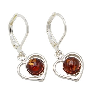 Prezentujemy przepiękne kolczyki - serduszka z bursztynu i srebra.