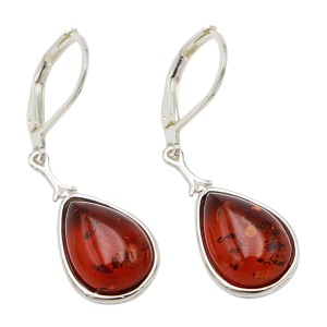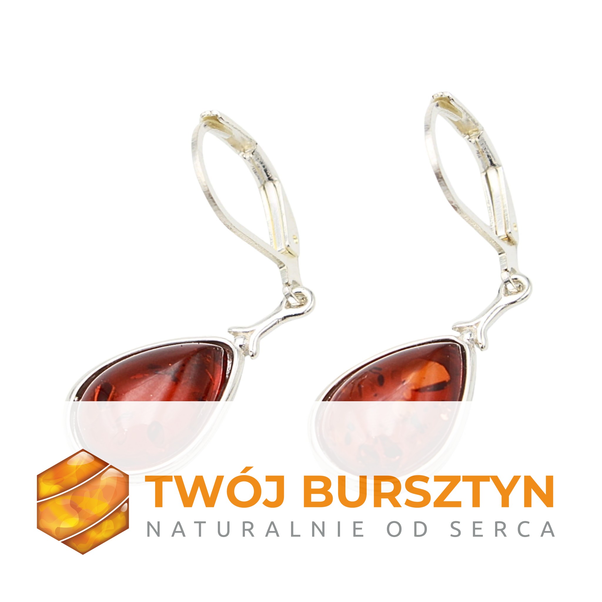 KOLCZYKI SREBRNE Z NATURALNYM BURSZTYNEM