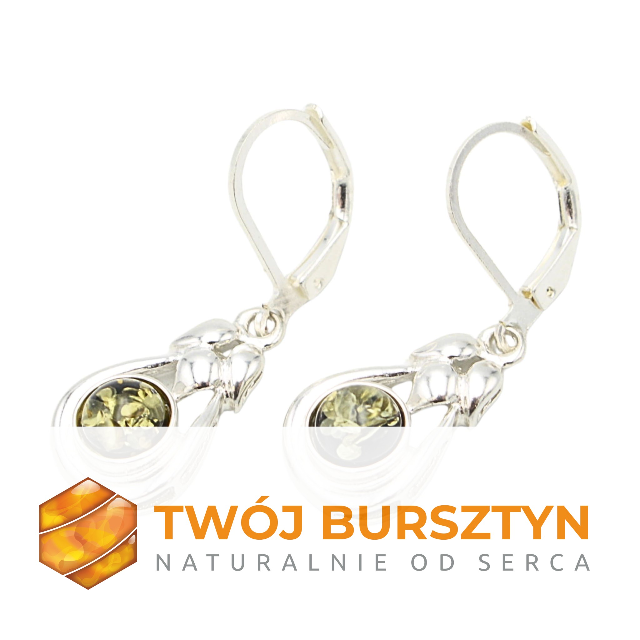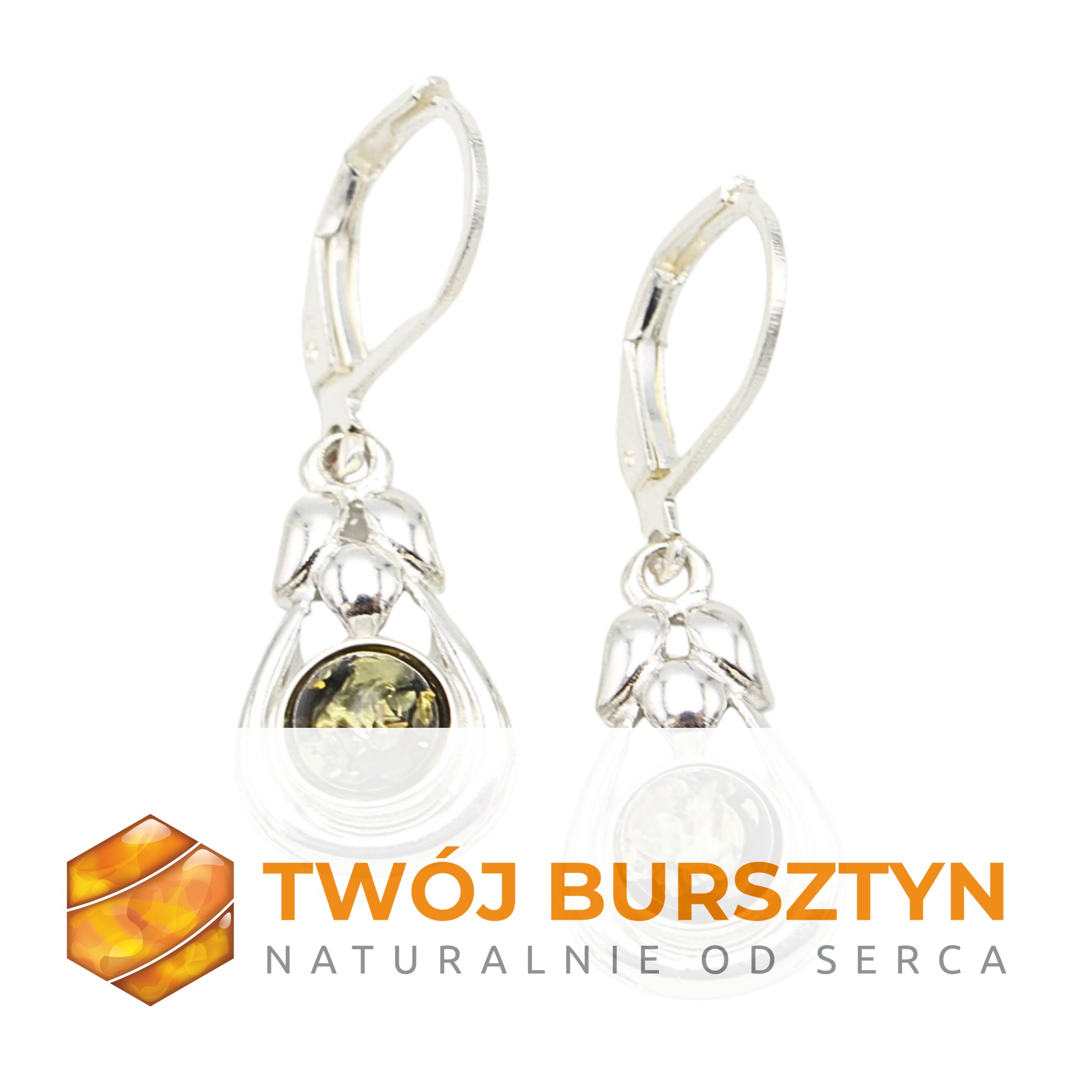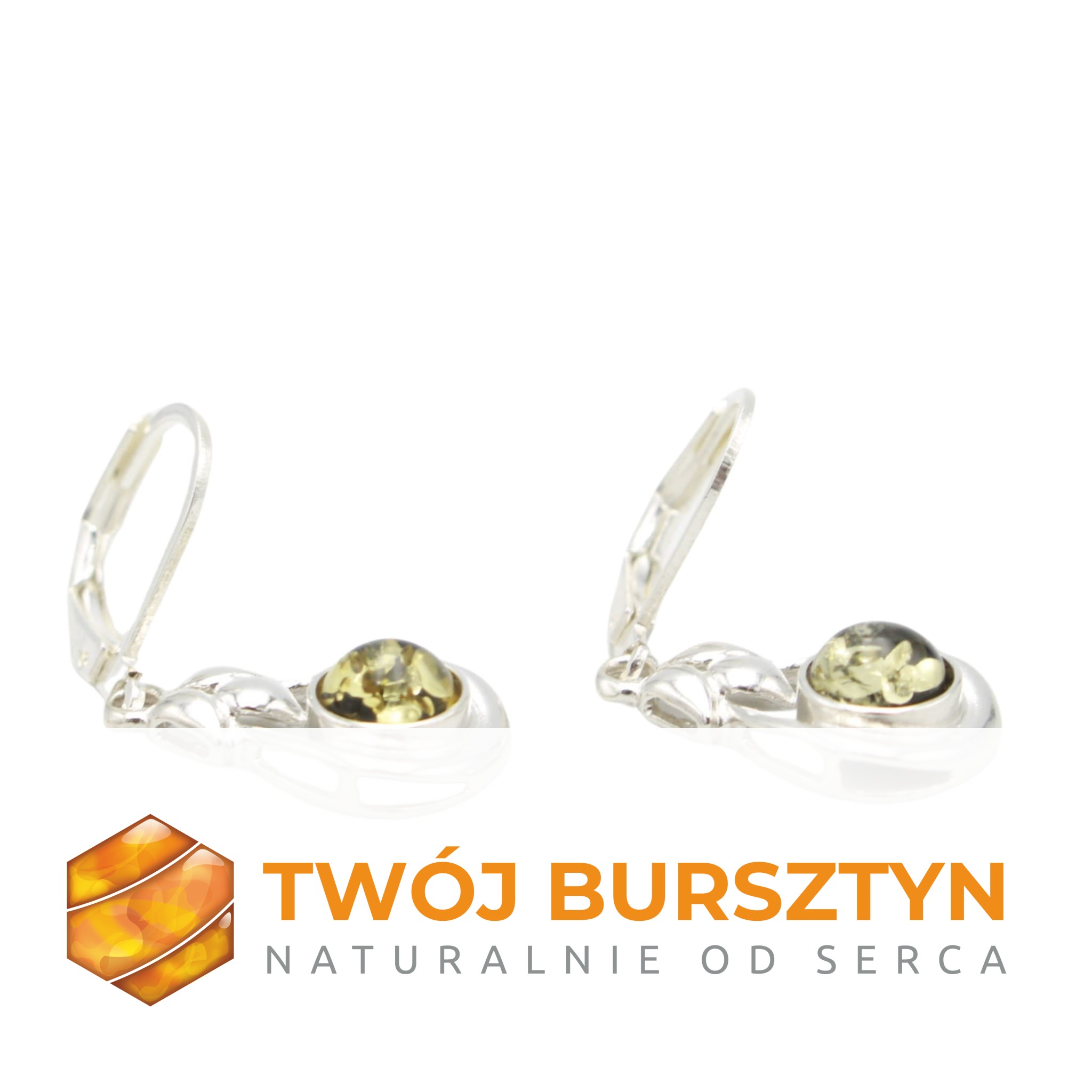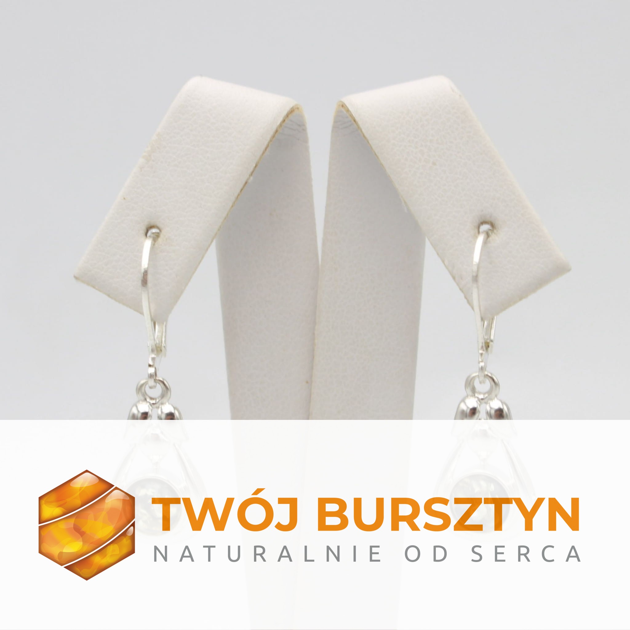 KOLCZYKI SREBRNE Z NATURALNYM BURSZTYNEM
