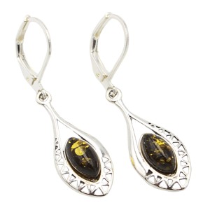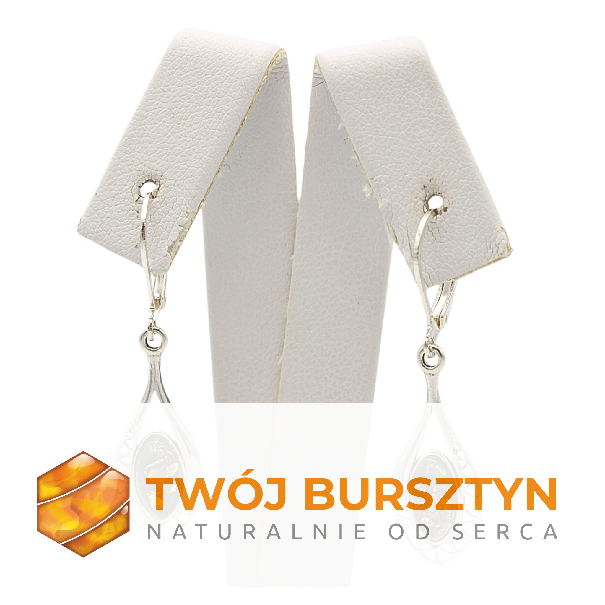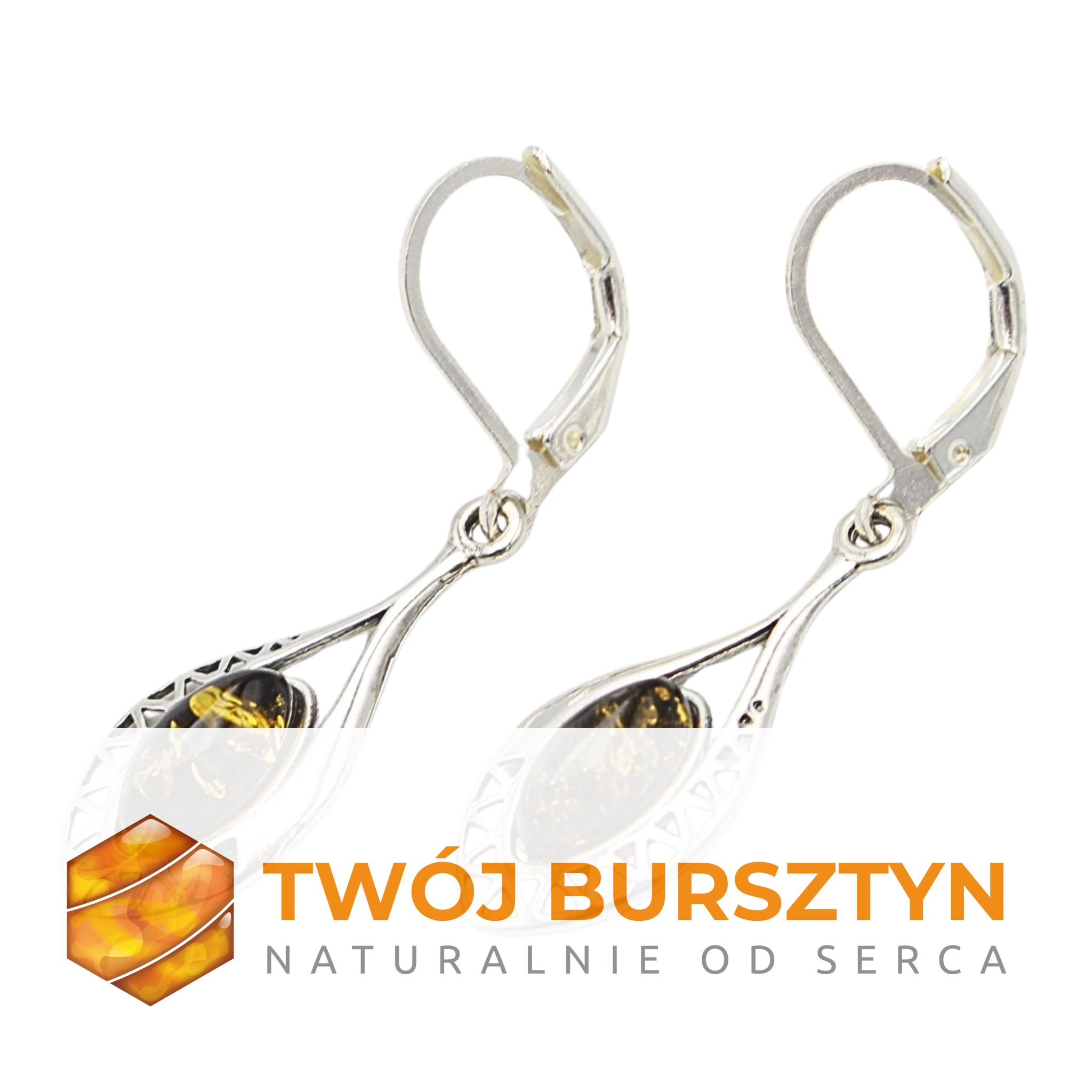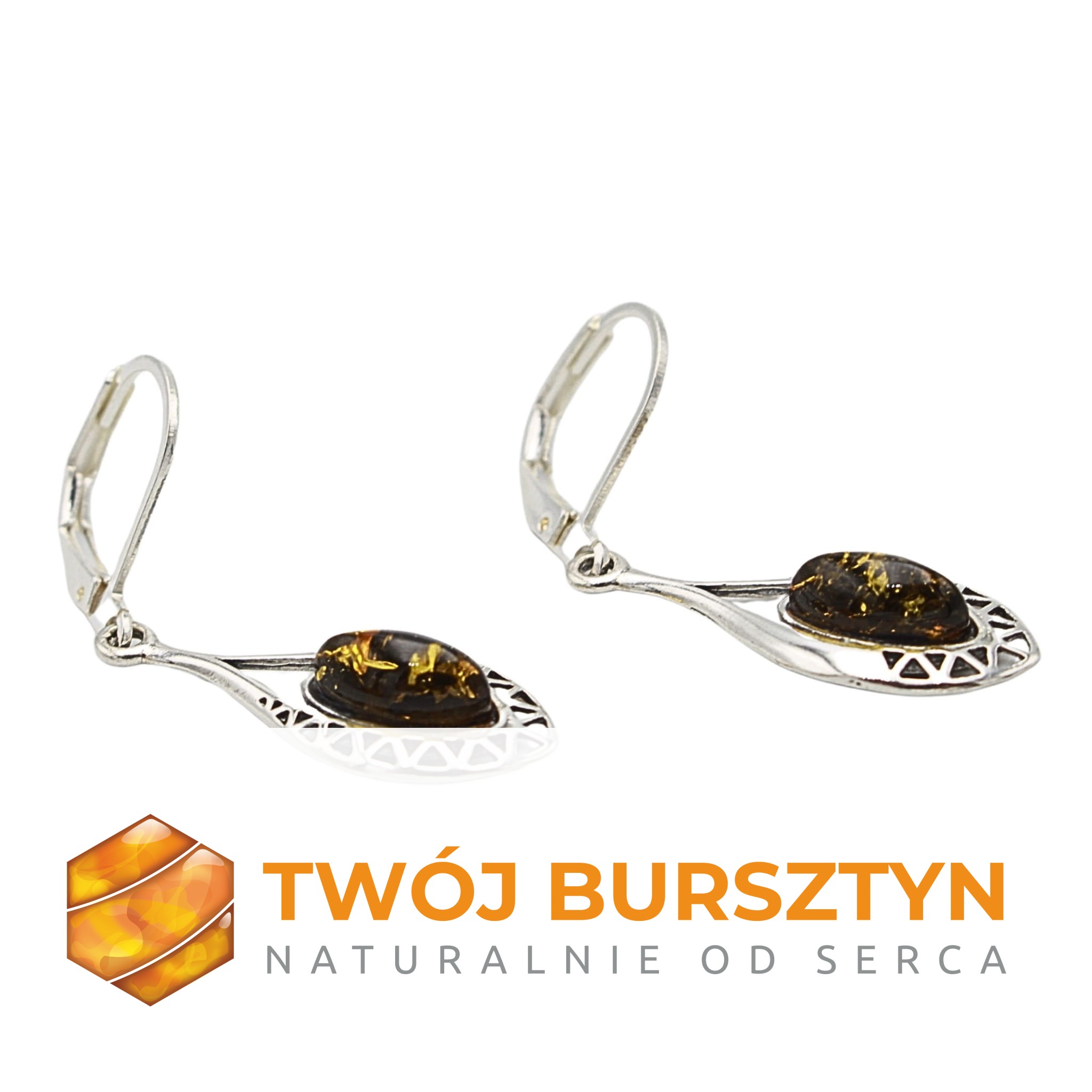 KOLCZYKI SREBRNE Z NATURALNYM BURSZTYNEM