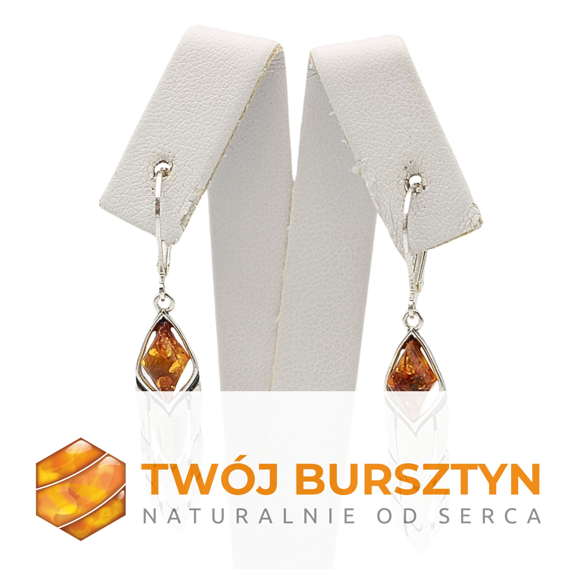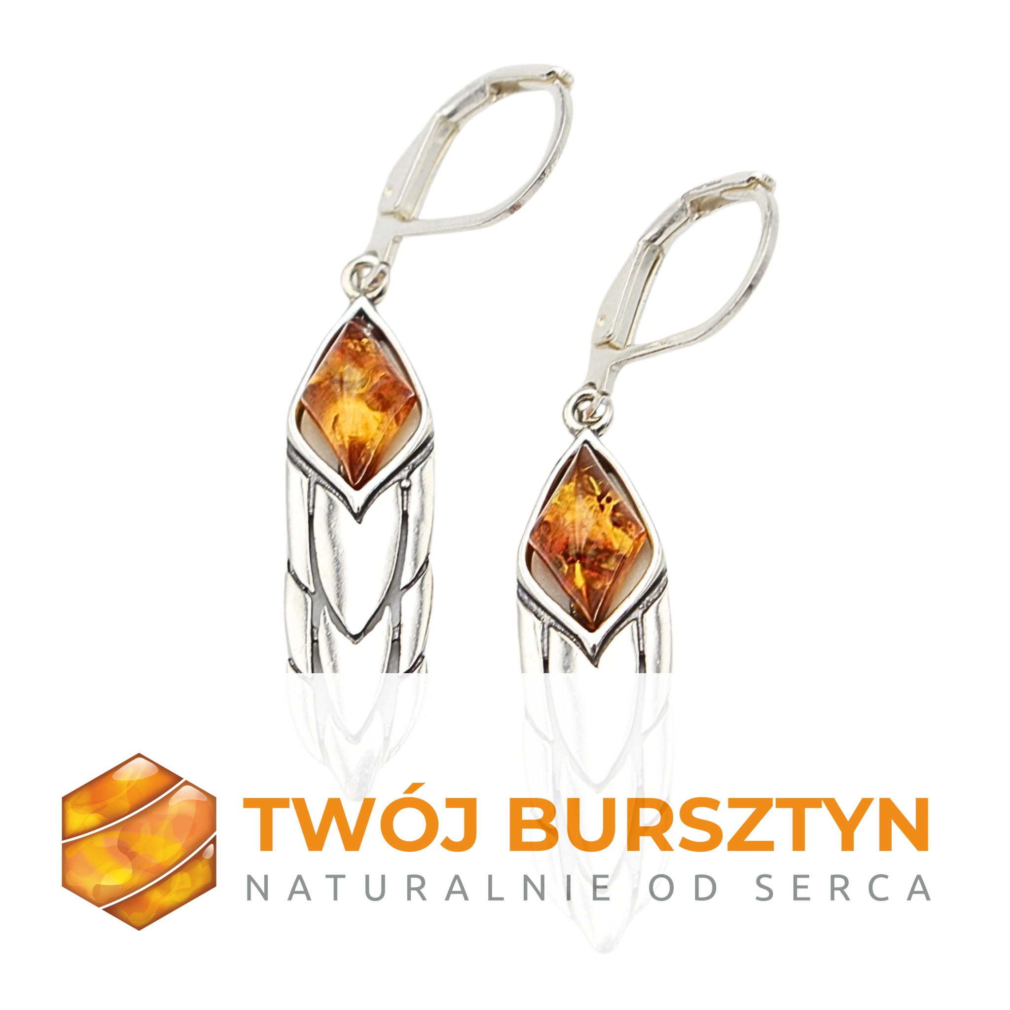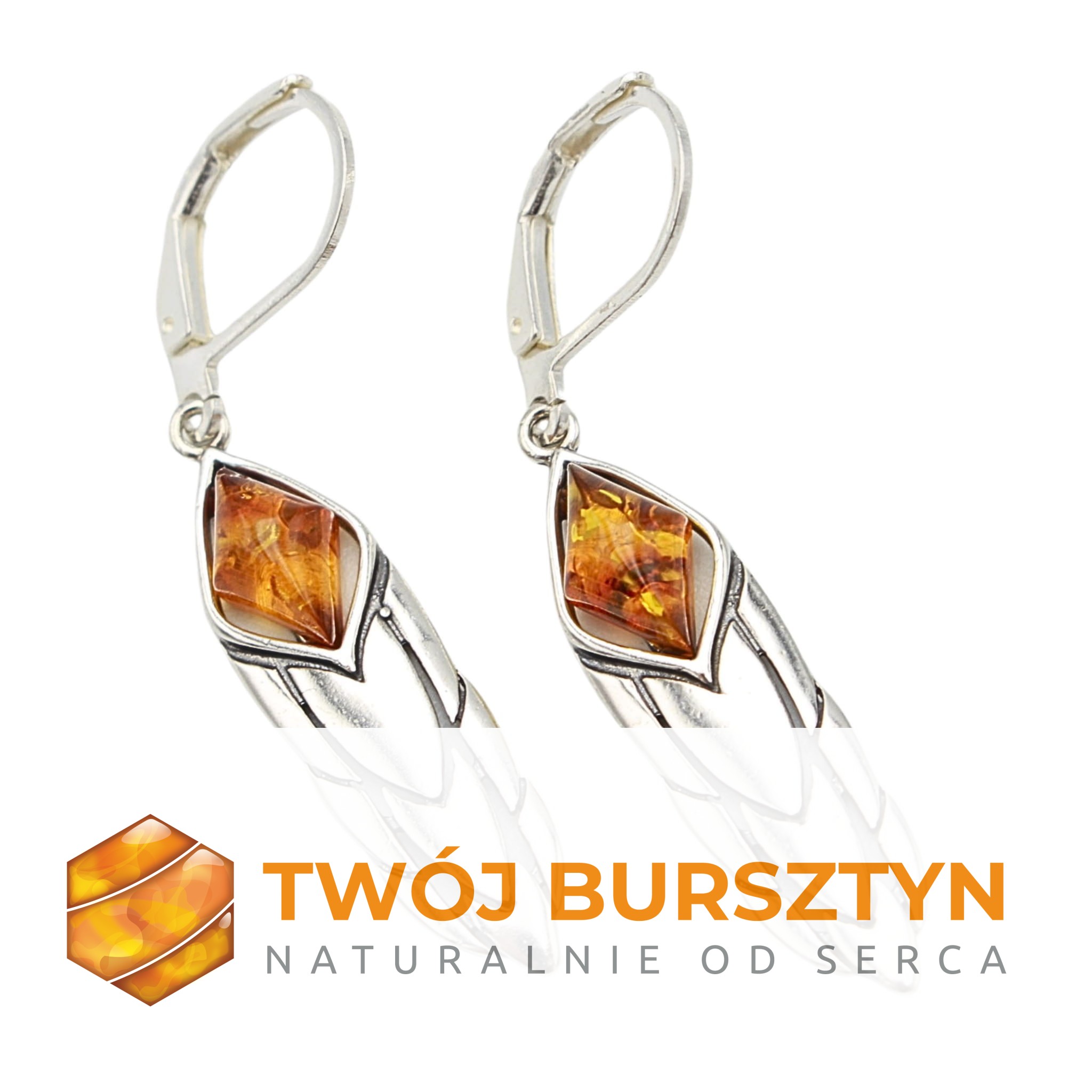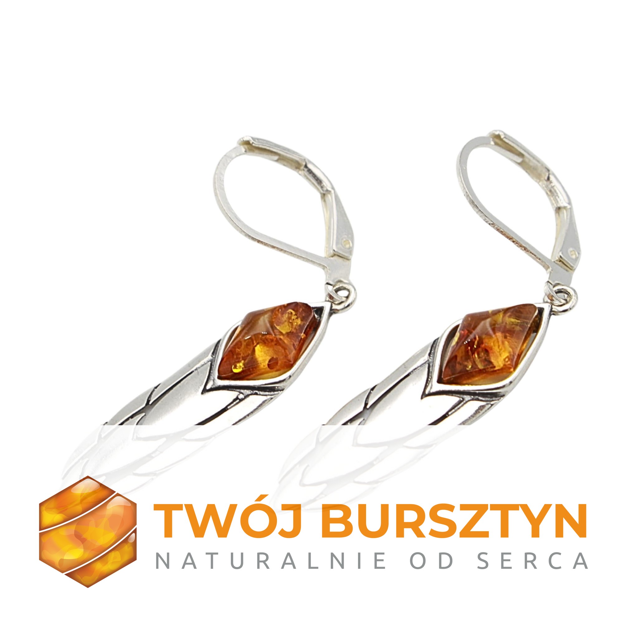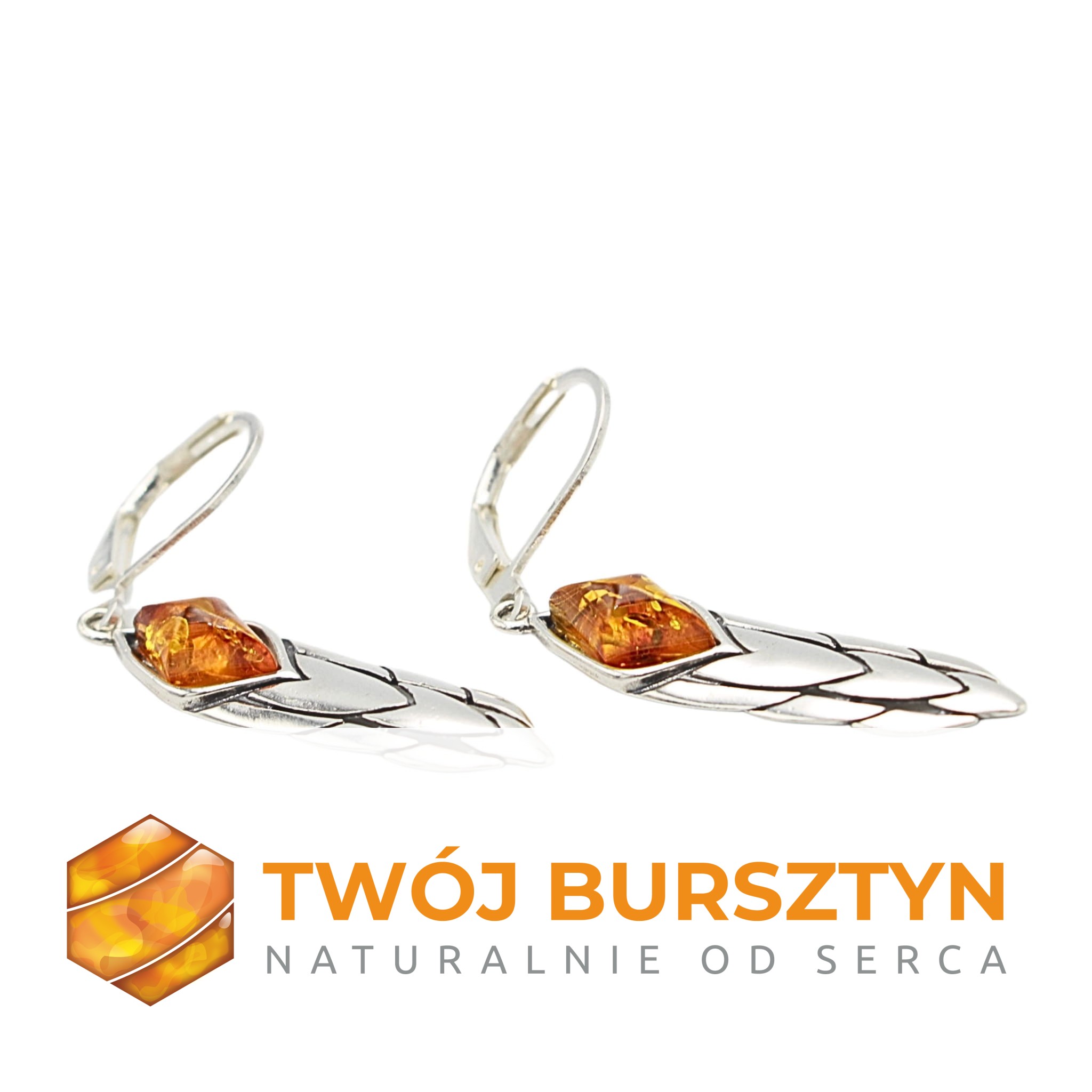 KOLCZYKI SREBRNE Z NATURALNYM BURSZTYNEM