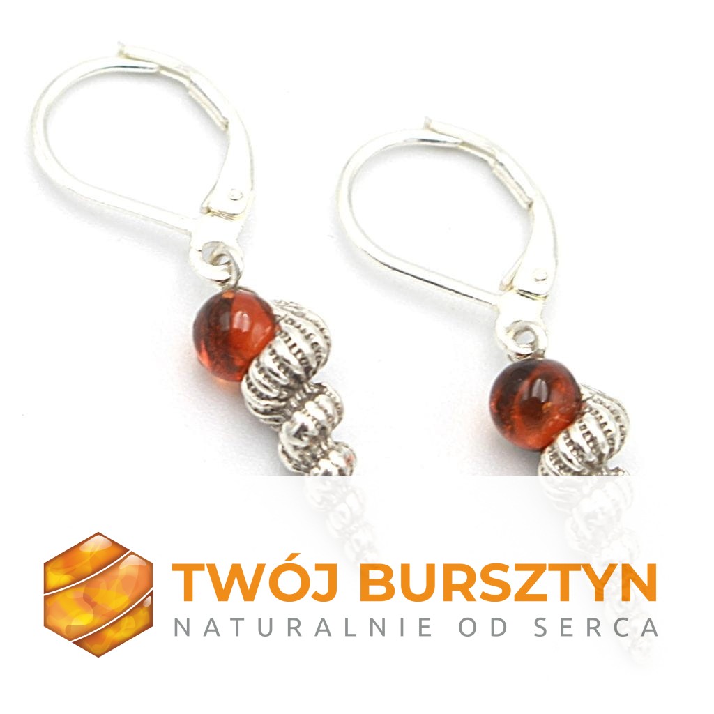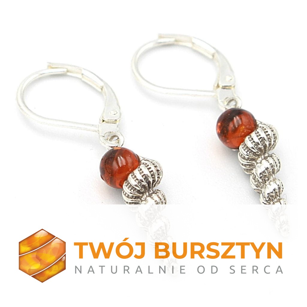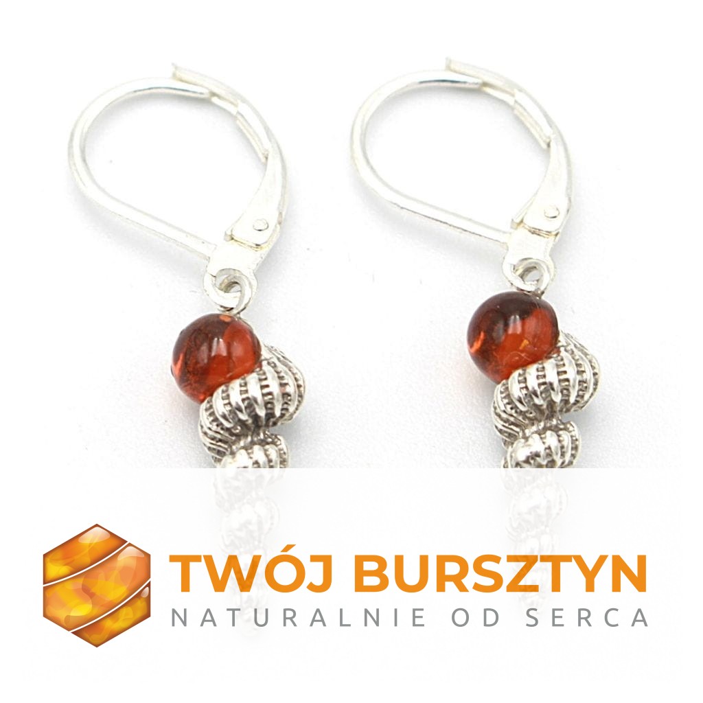 KOLCZYKI SREBRNE Z NATURALNYM BURSZTYNEM