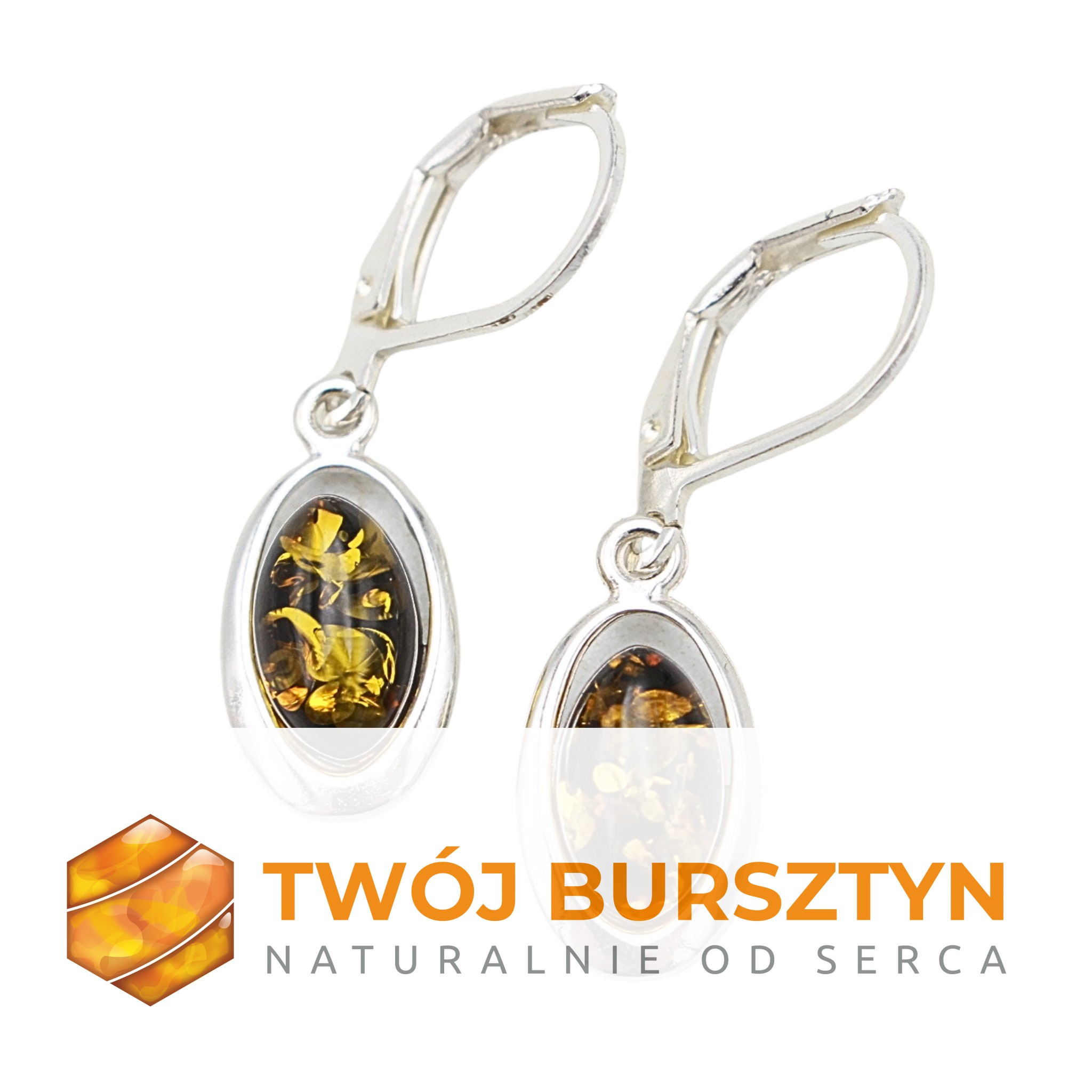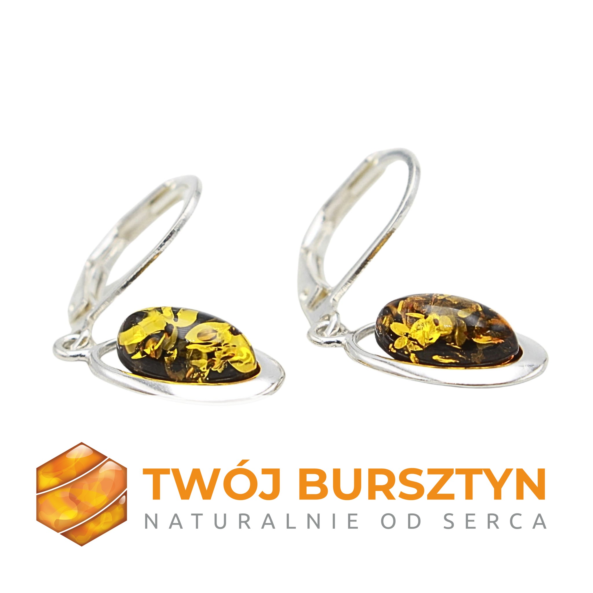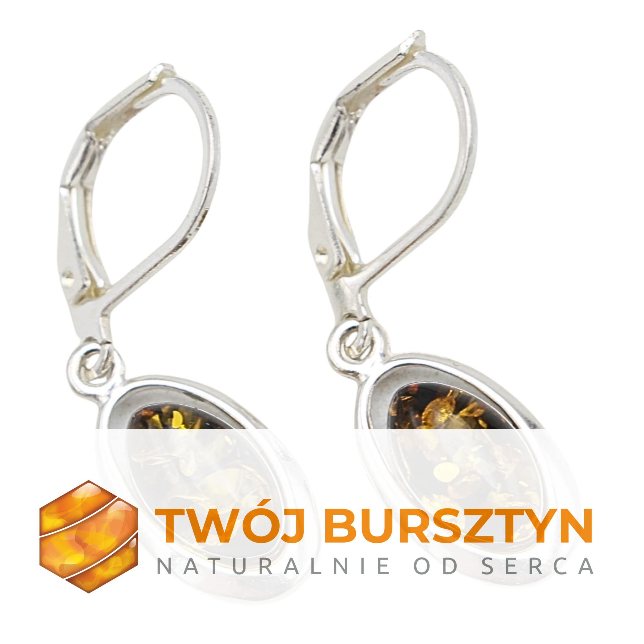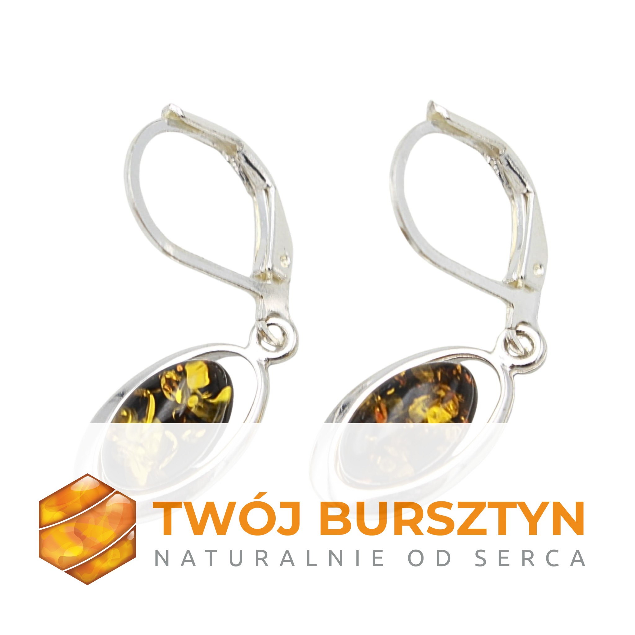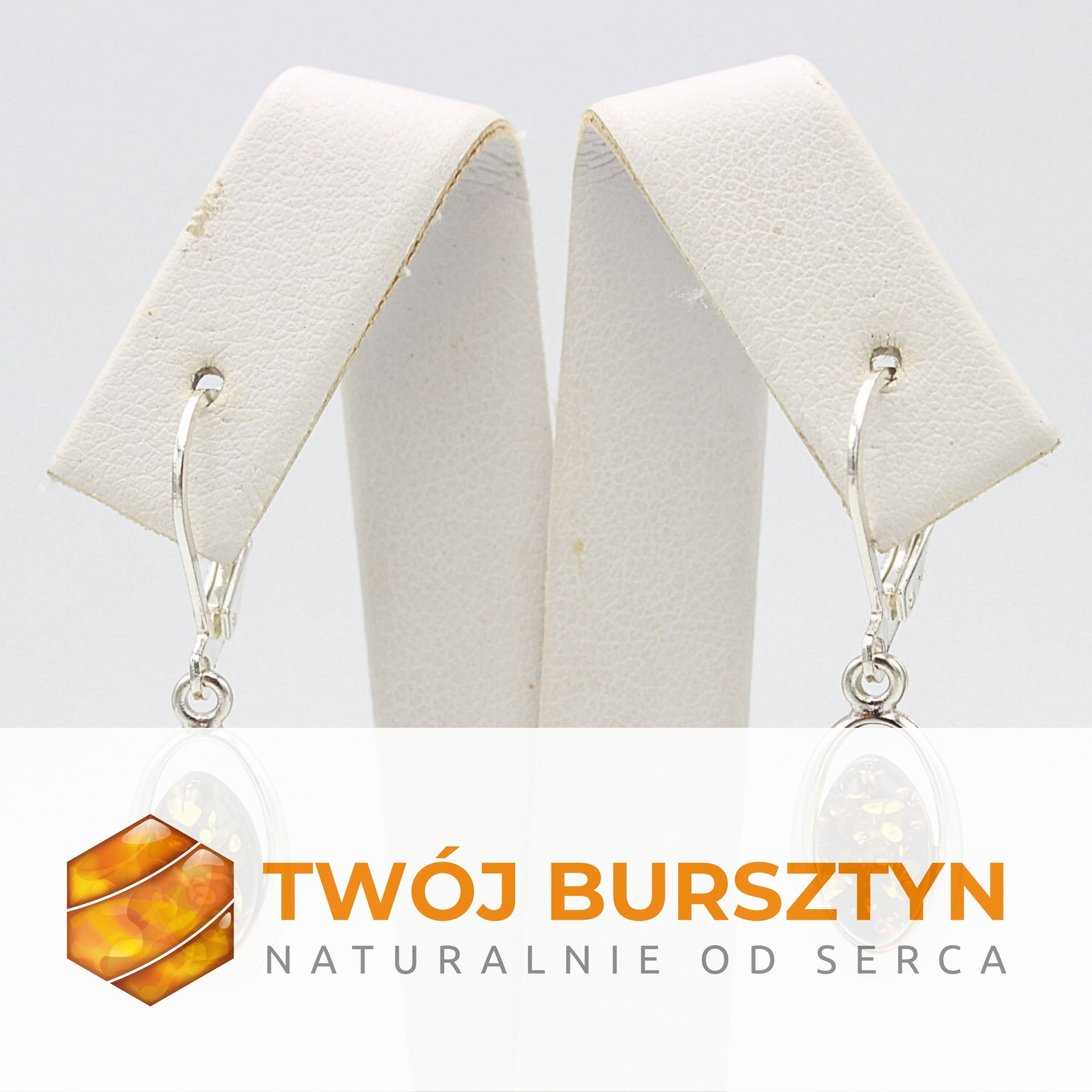 KOLCZYKI SREBRNE Z NATURALNYM BURSZTYNEM