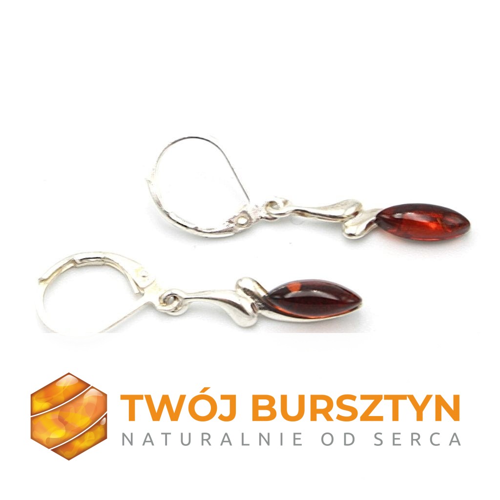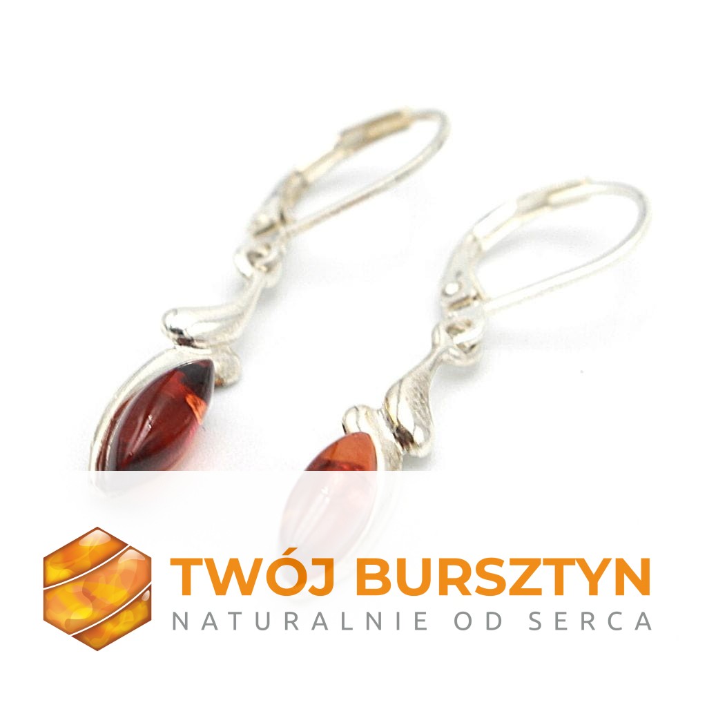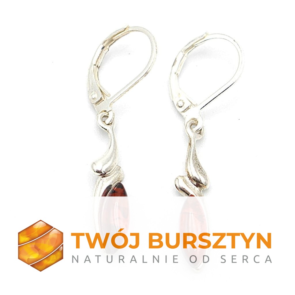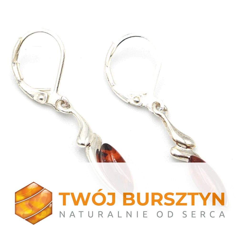 KOLCZYKI SREBRNE Z NATURALNYM BURSZTYNEM