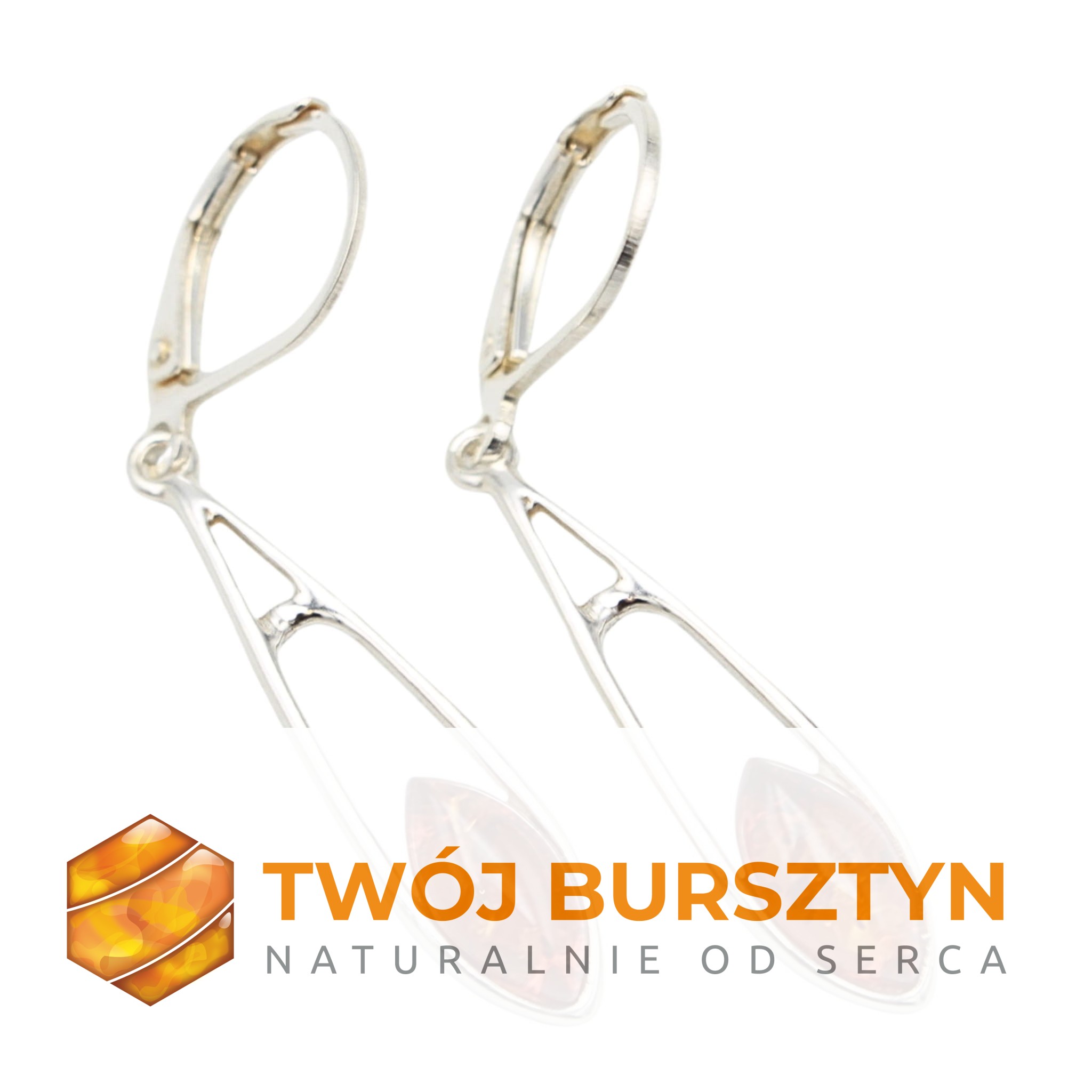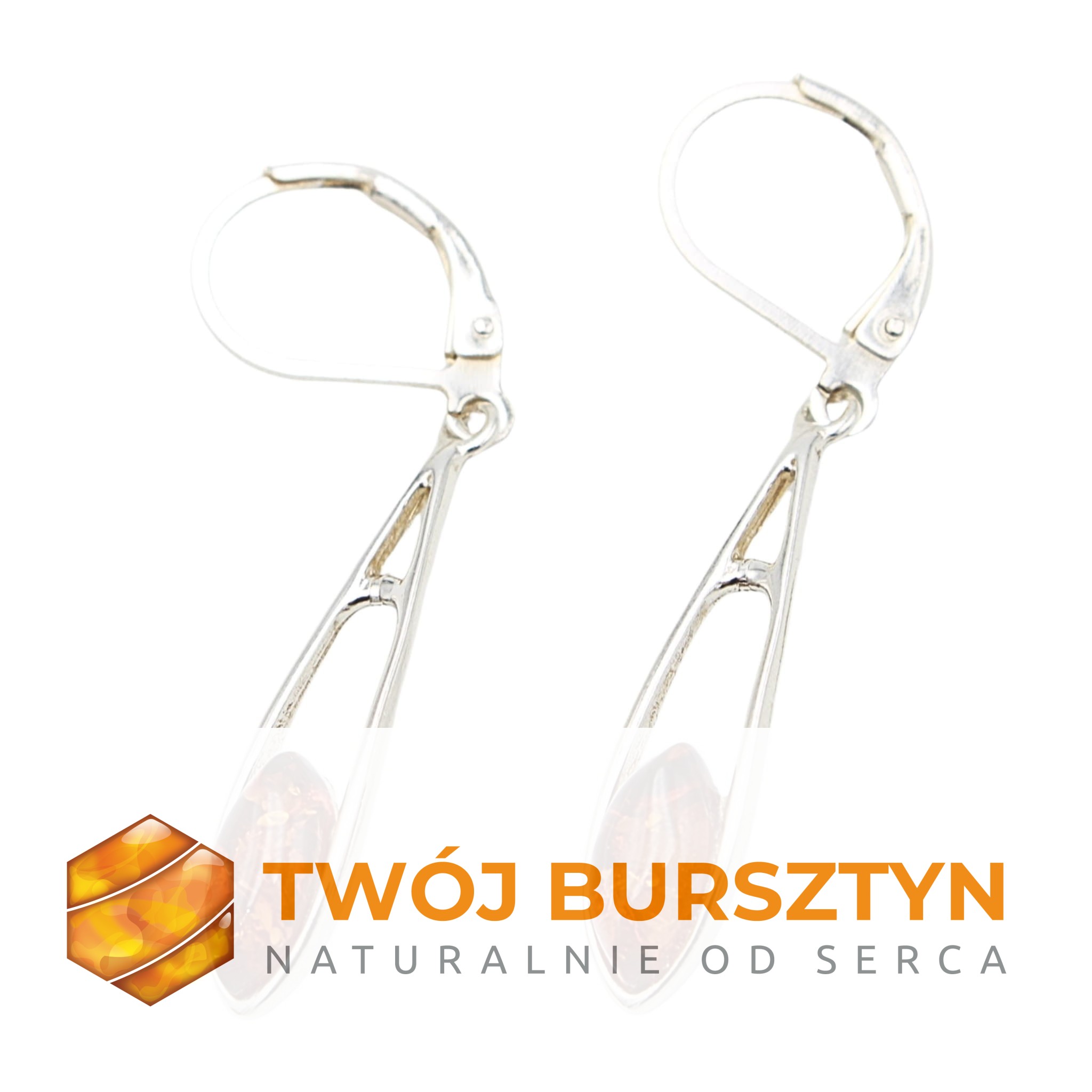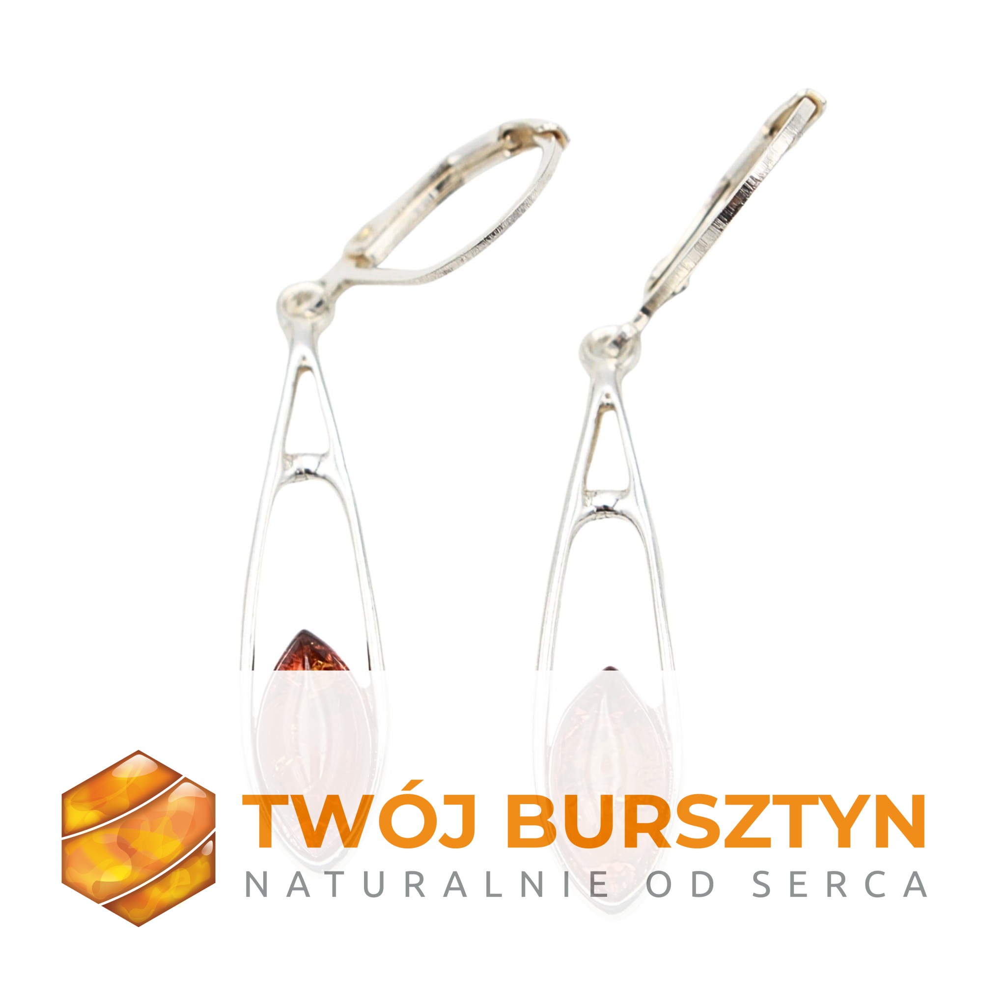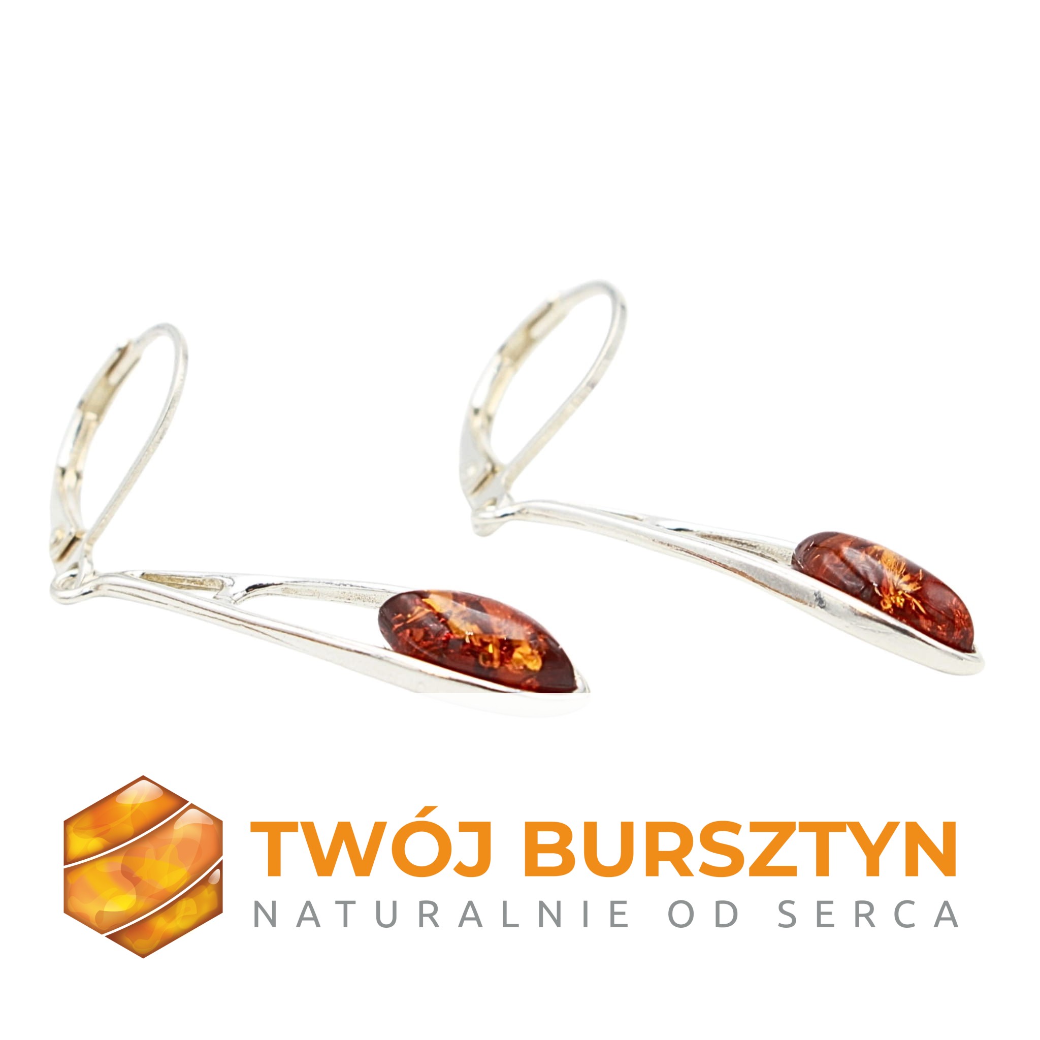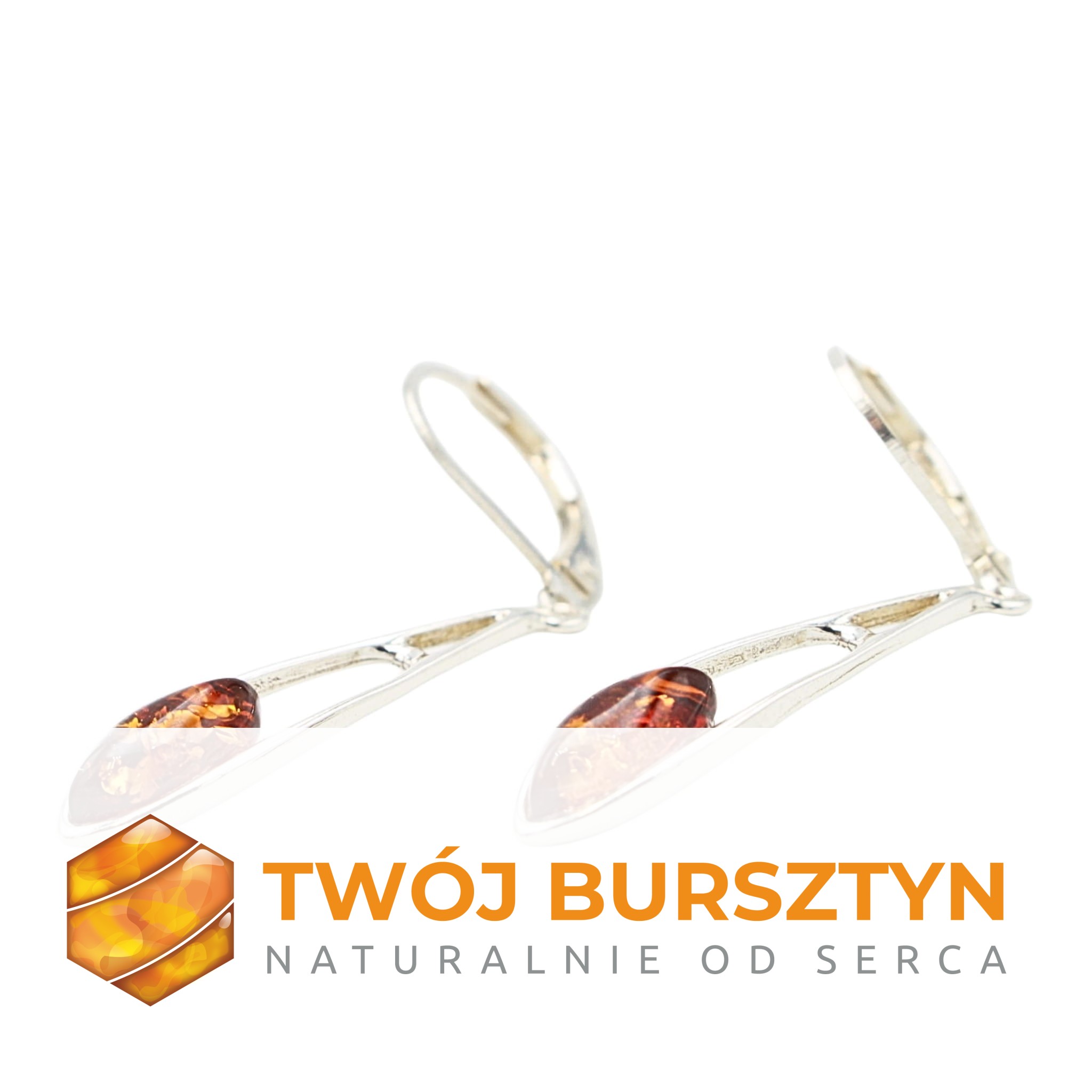 KOLCZYKI SREBRNE Z NATURALNYM BURSZTYNEM
