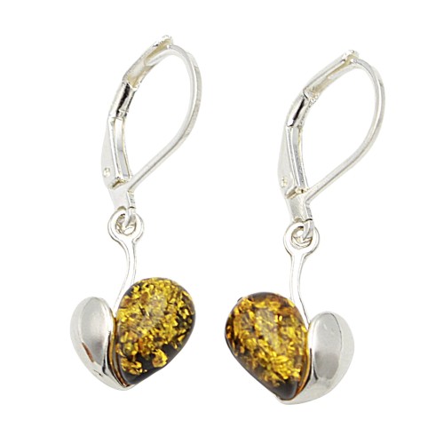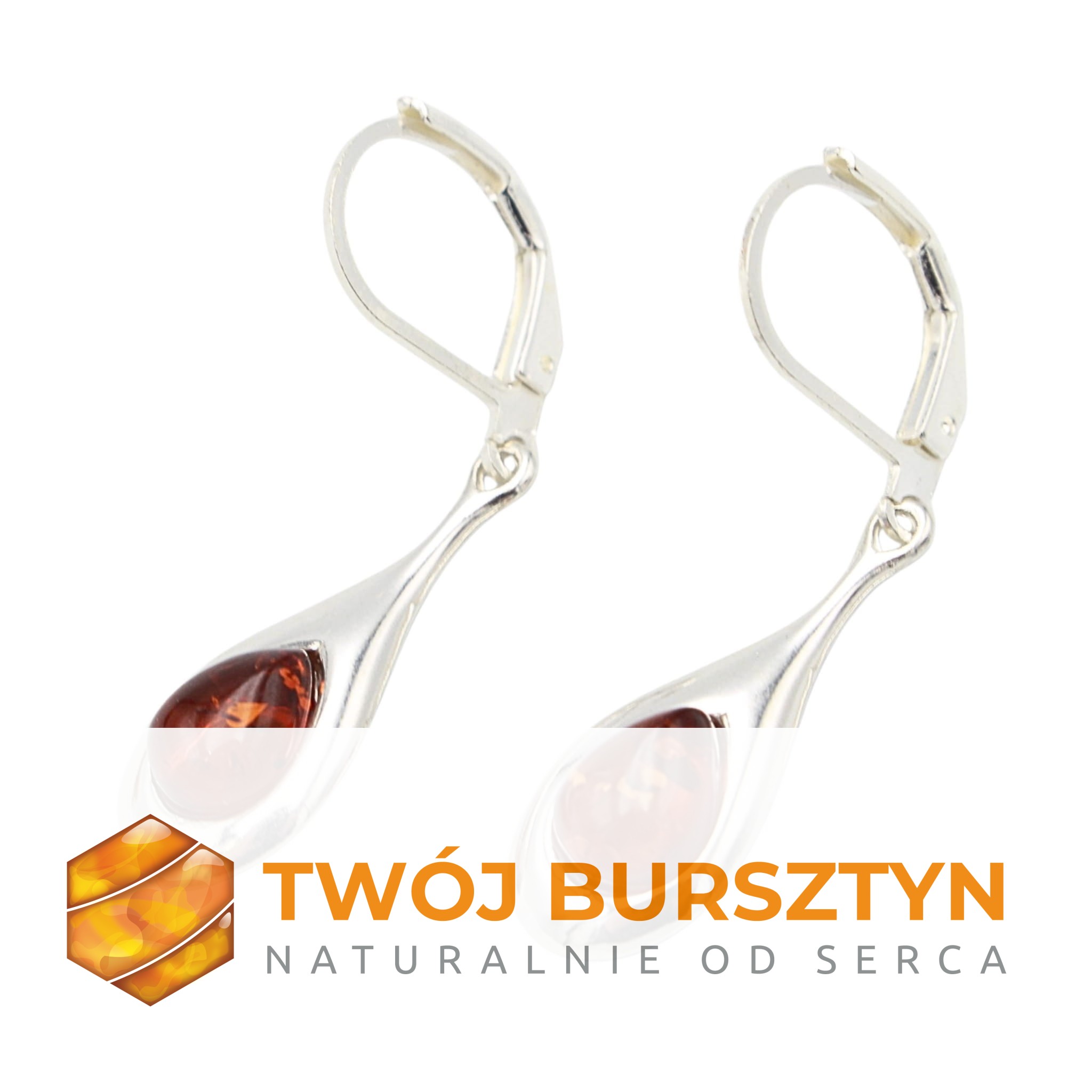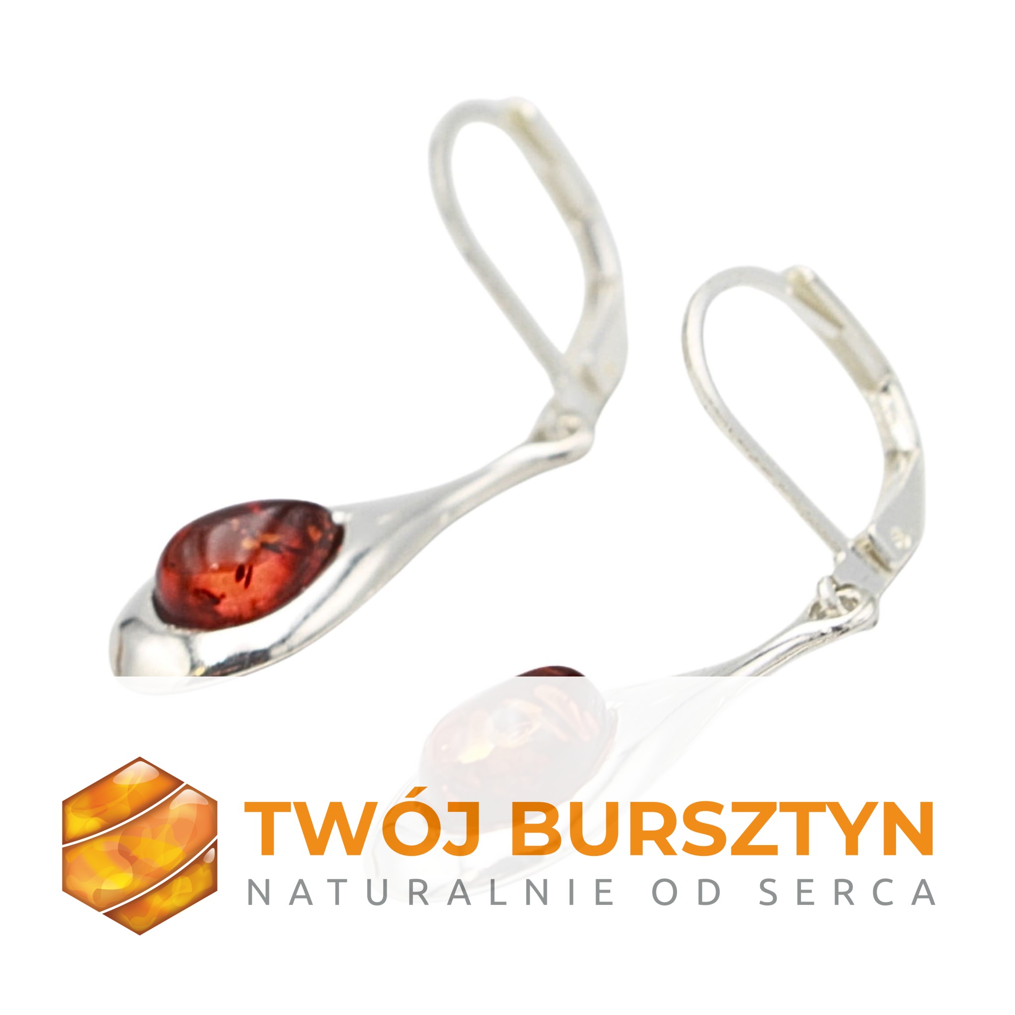KOLCZYKI SREBRNE Z NATURALNYM BURSZTYNEM