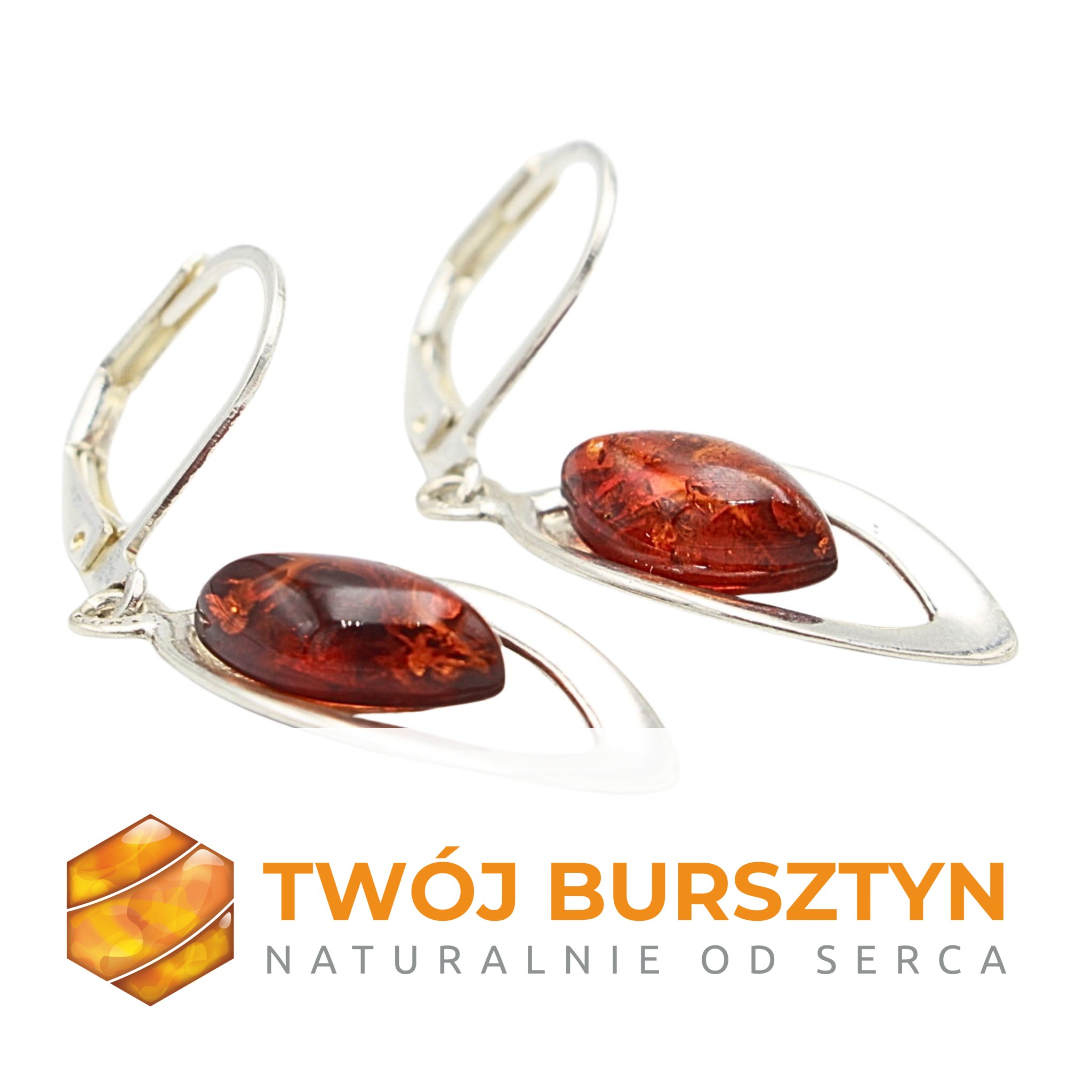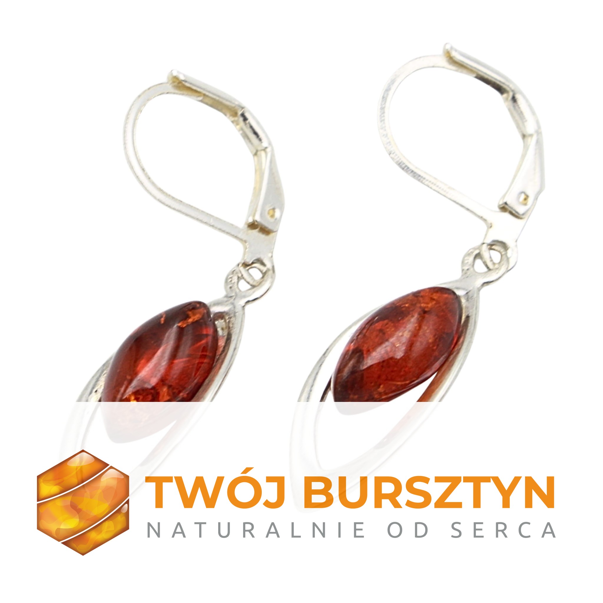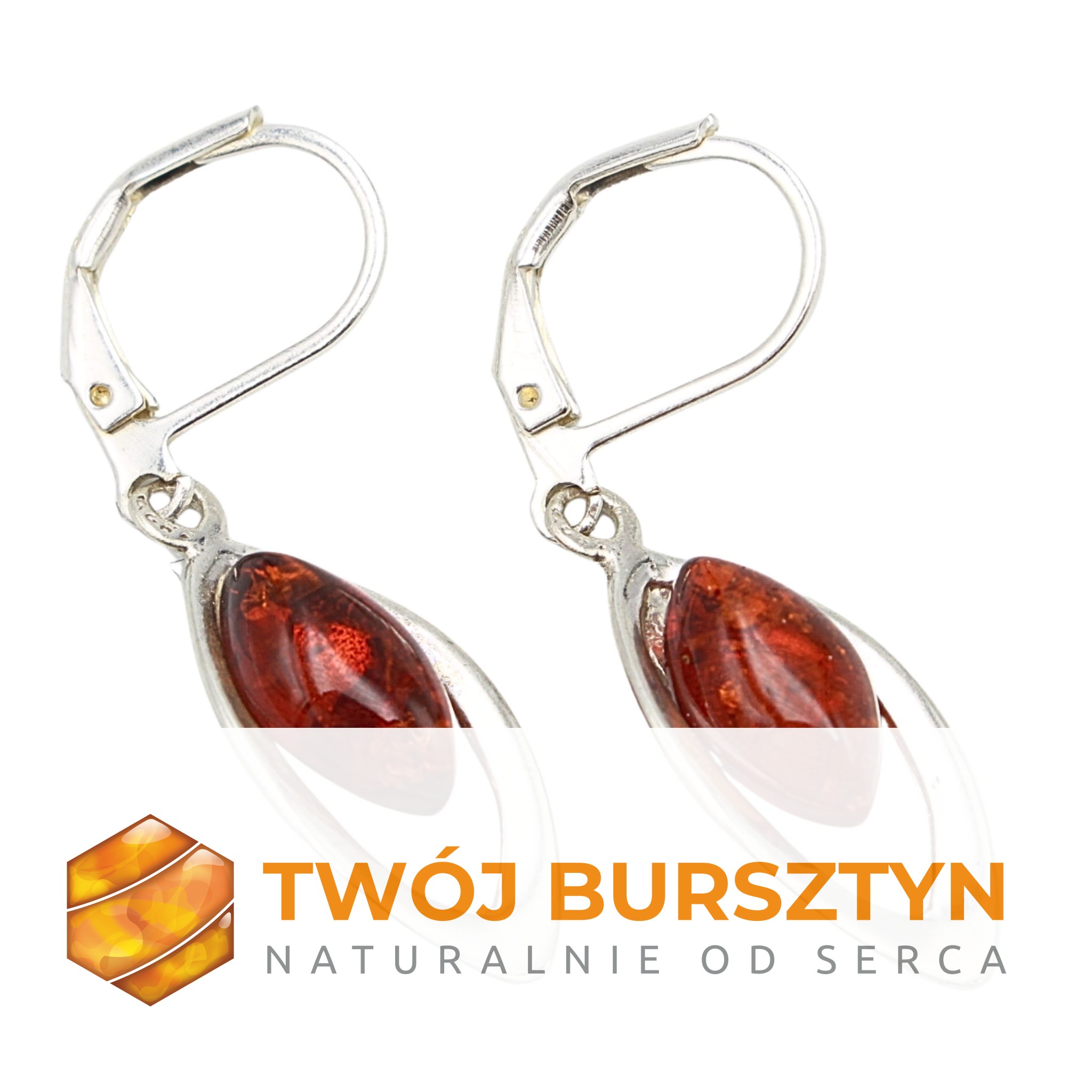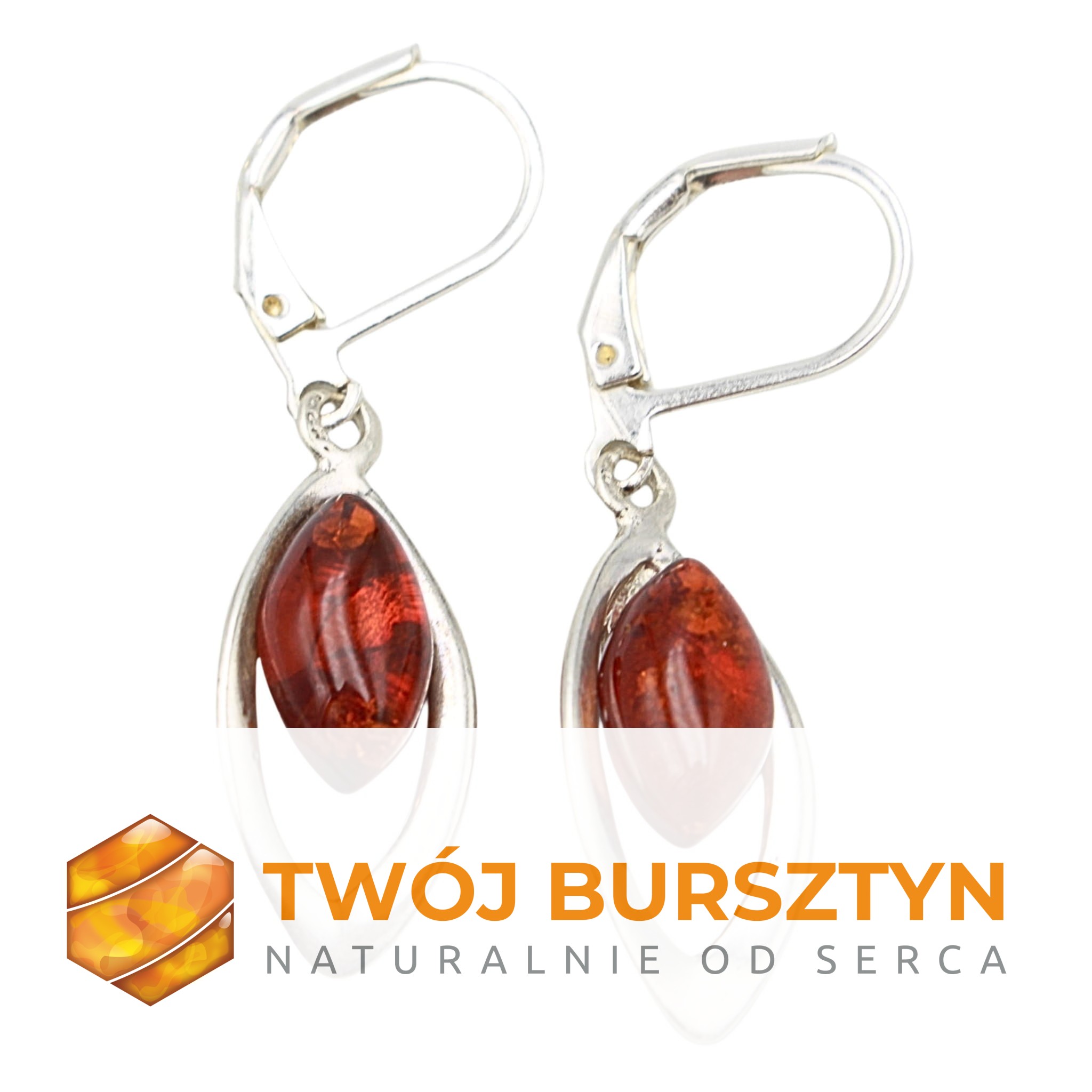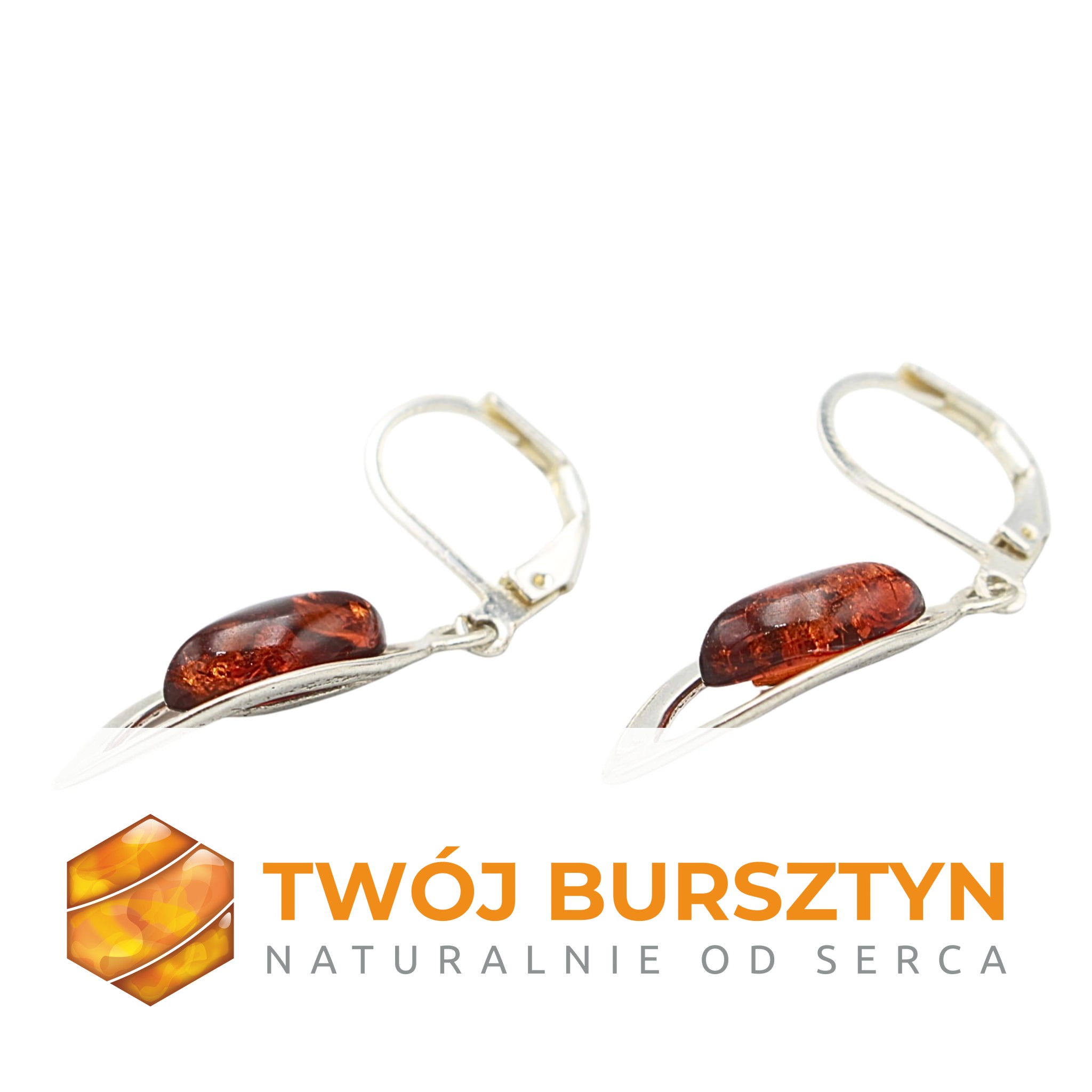 KOLCZYKI SREBRNE Z NATURALNYM BURSZTYNEM