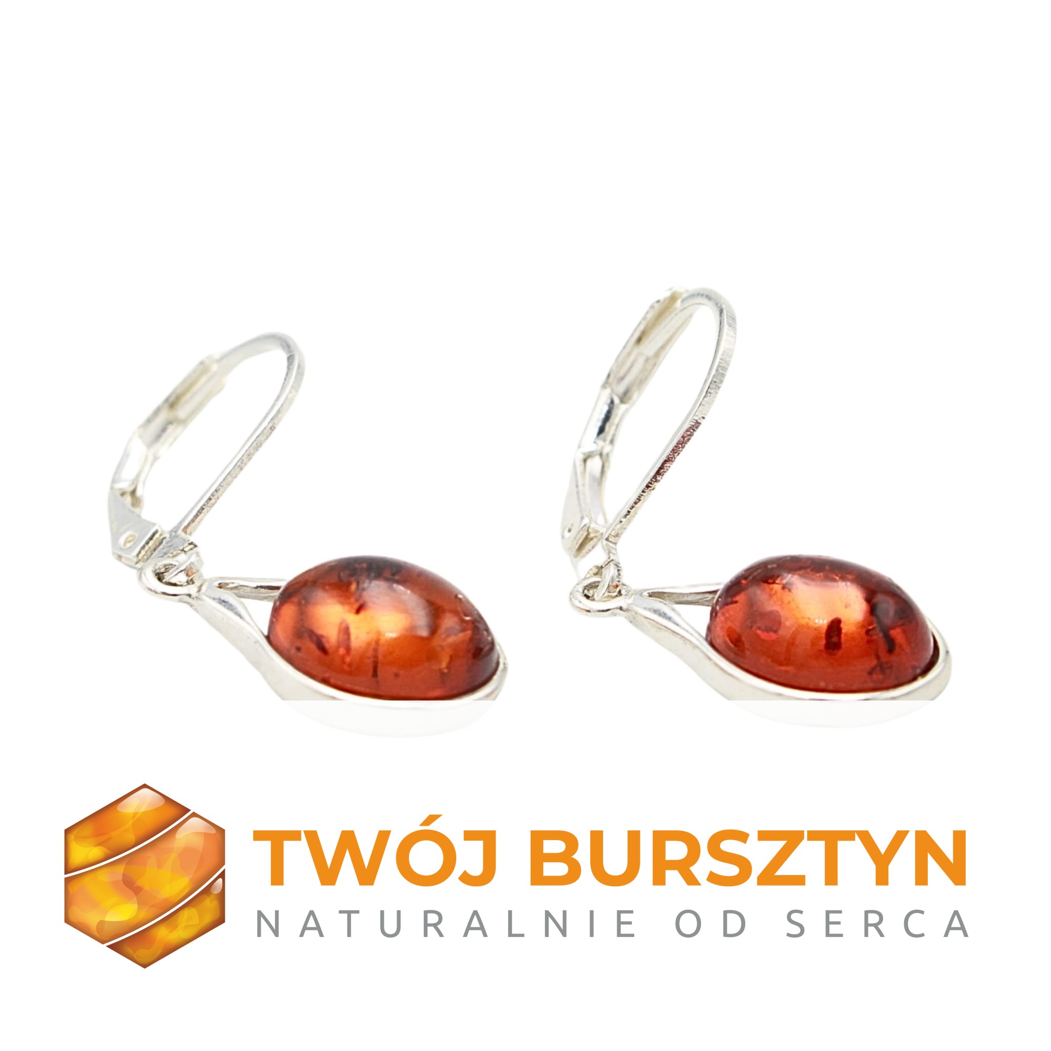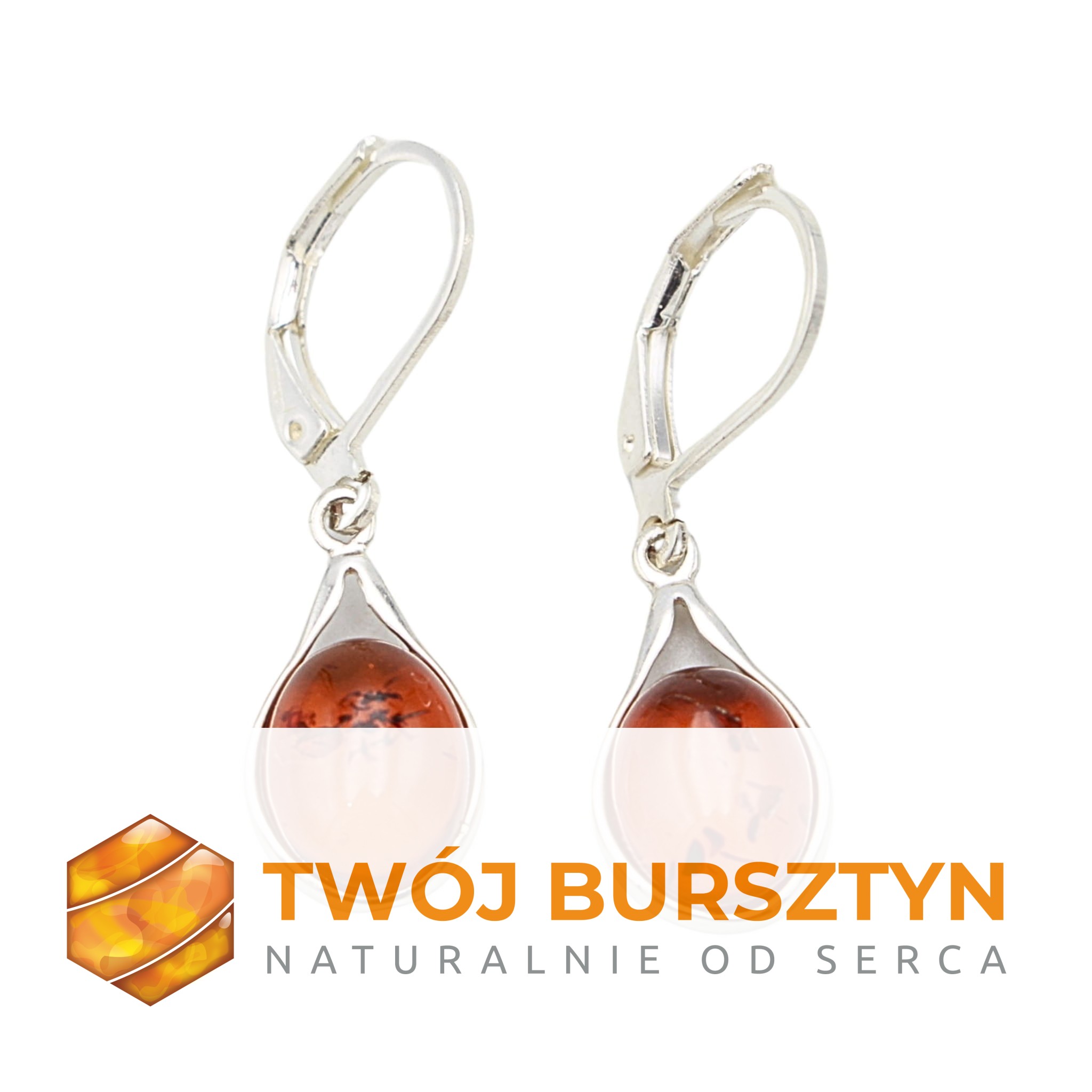 KOLCZYKI SREBRNE Z NATURALNYM BURSZTYNEM
