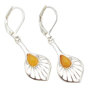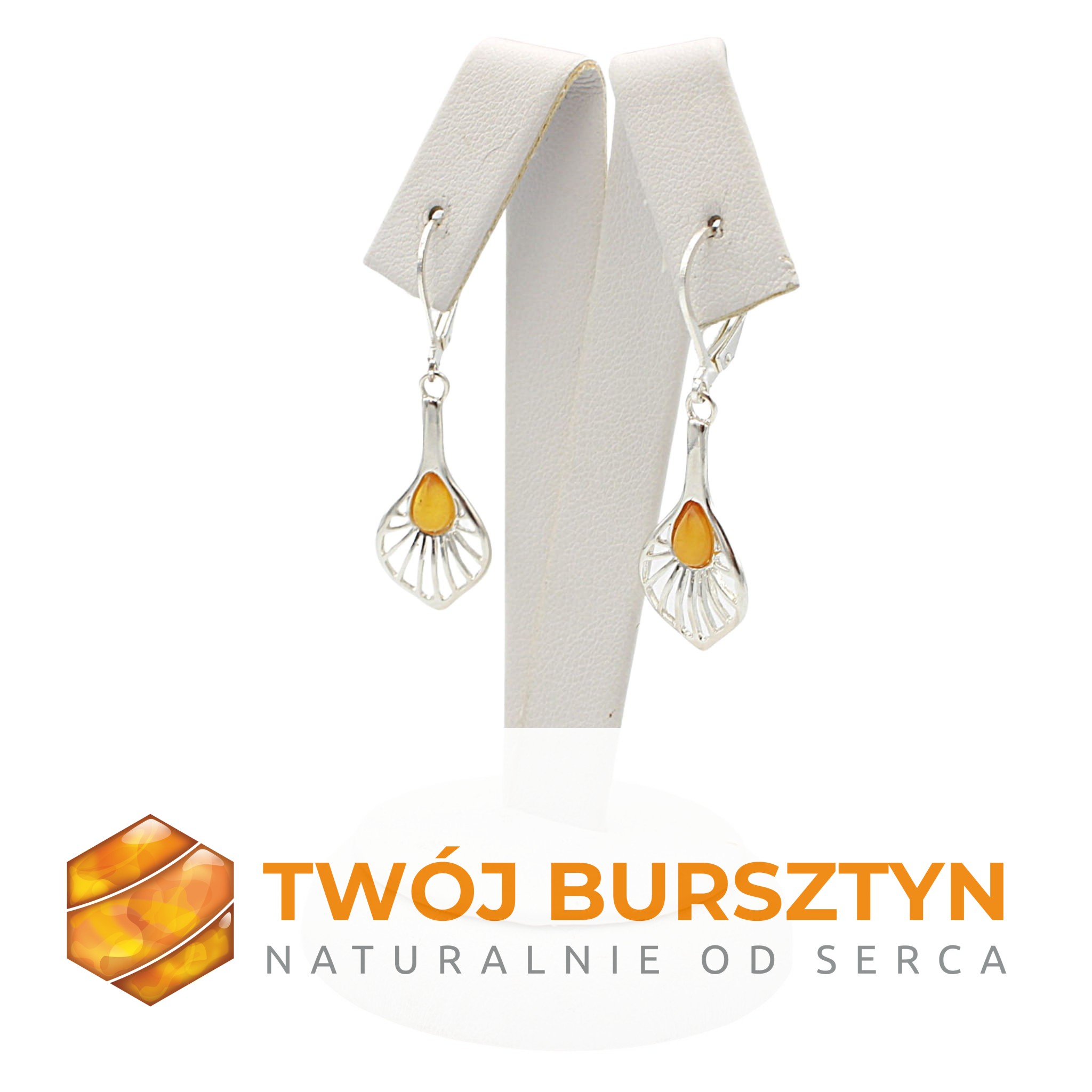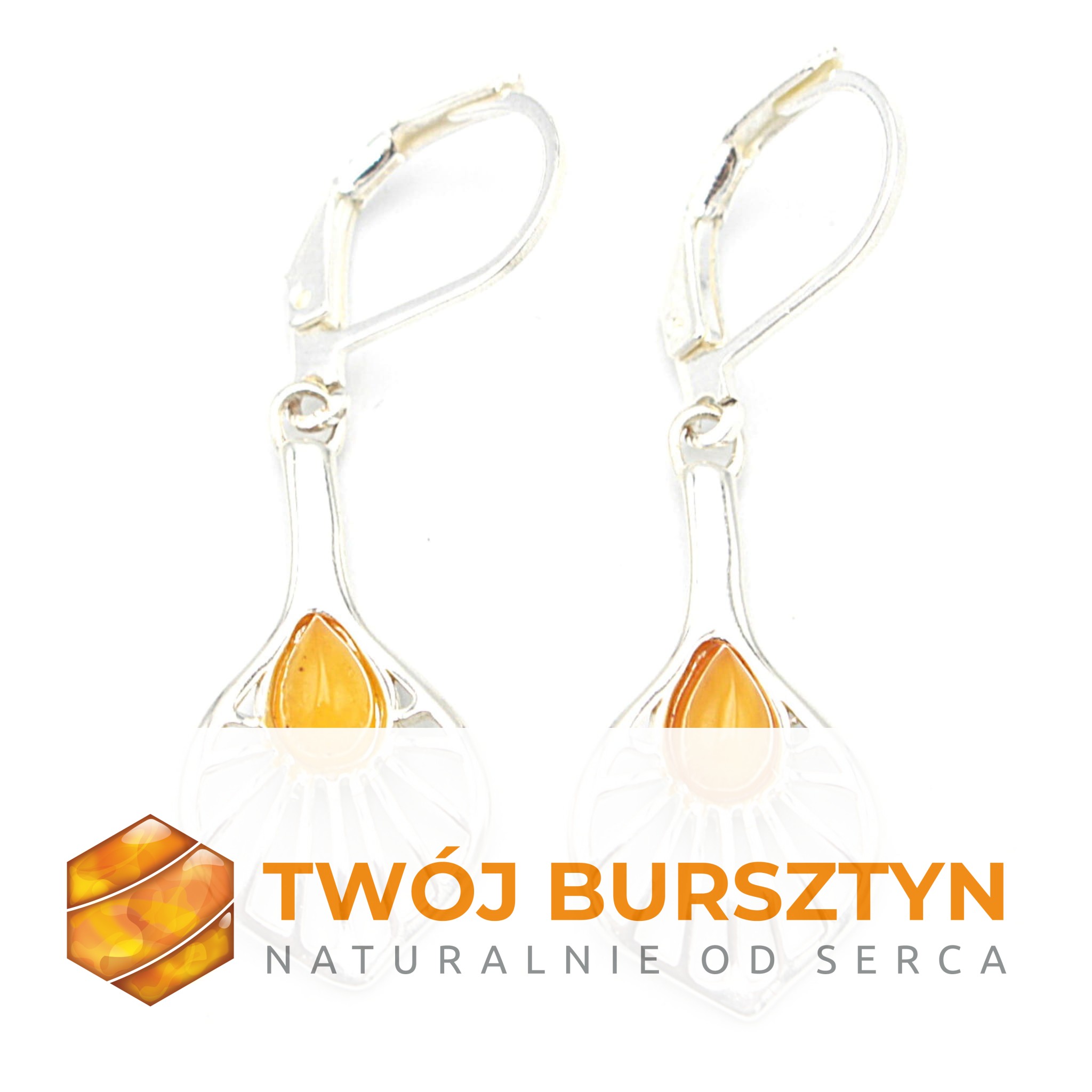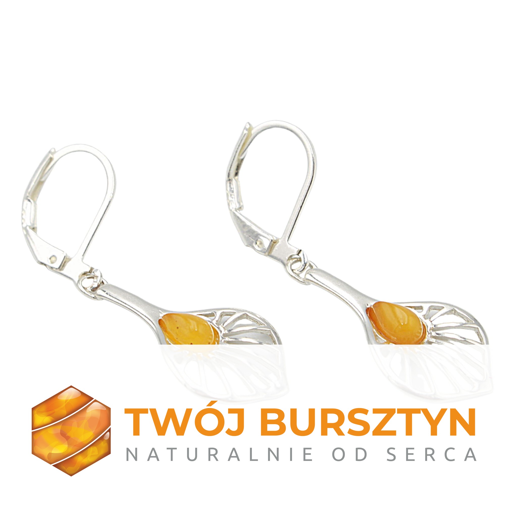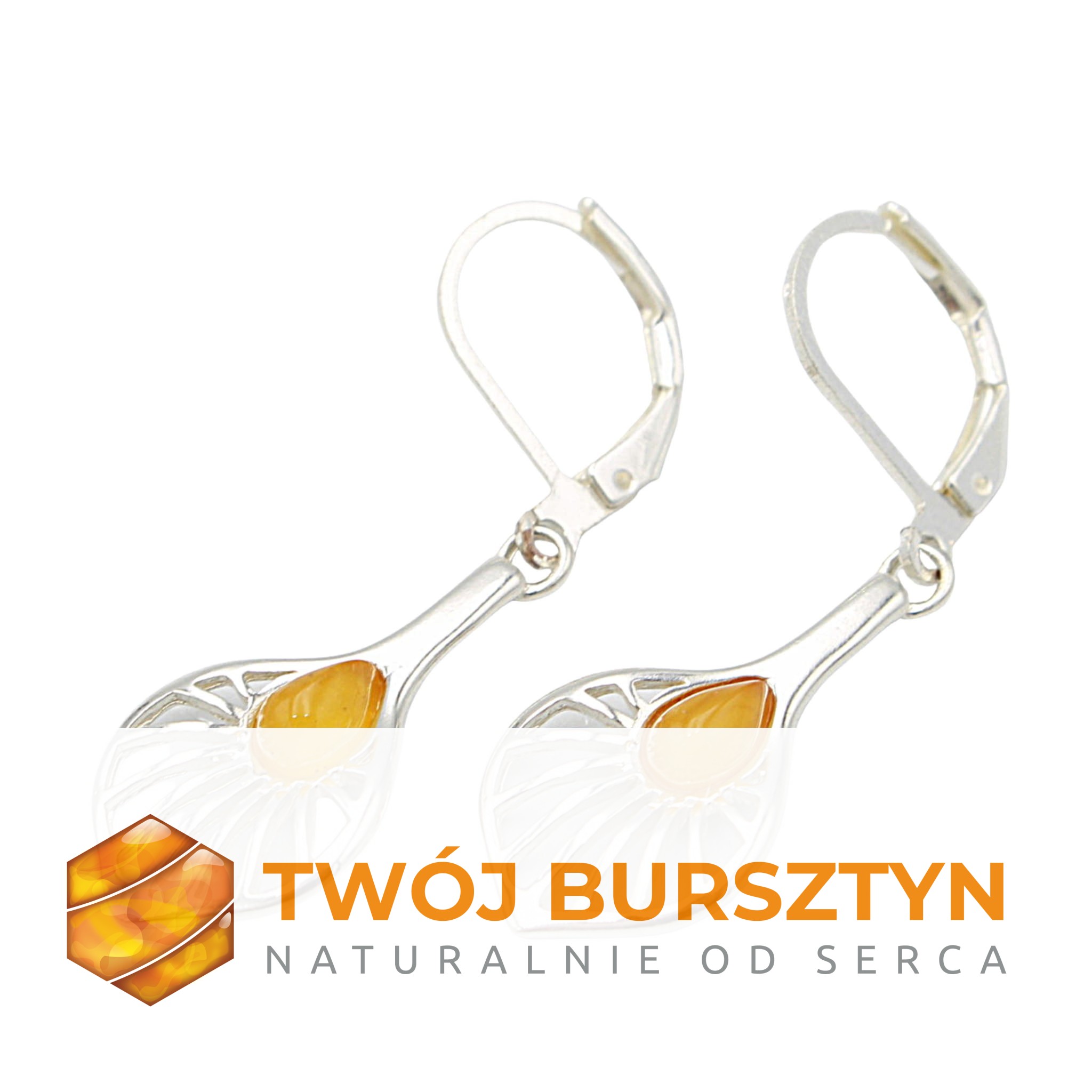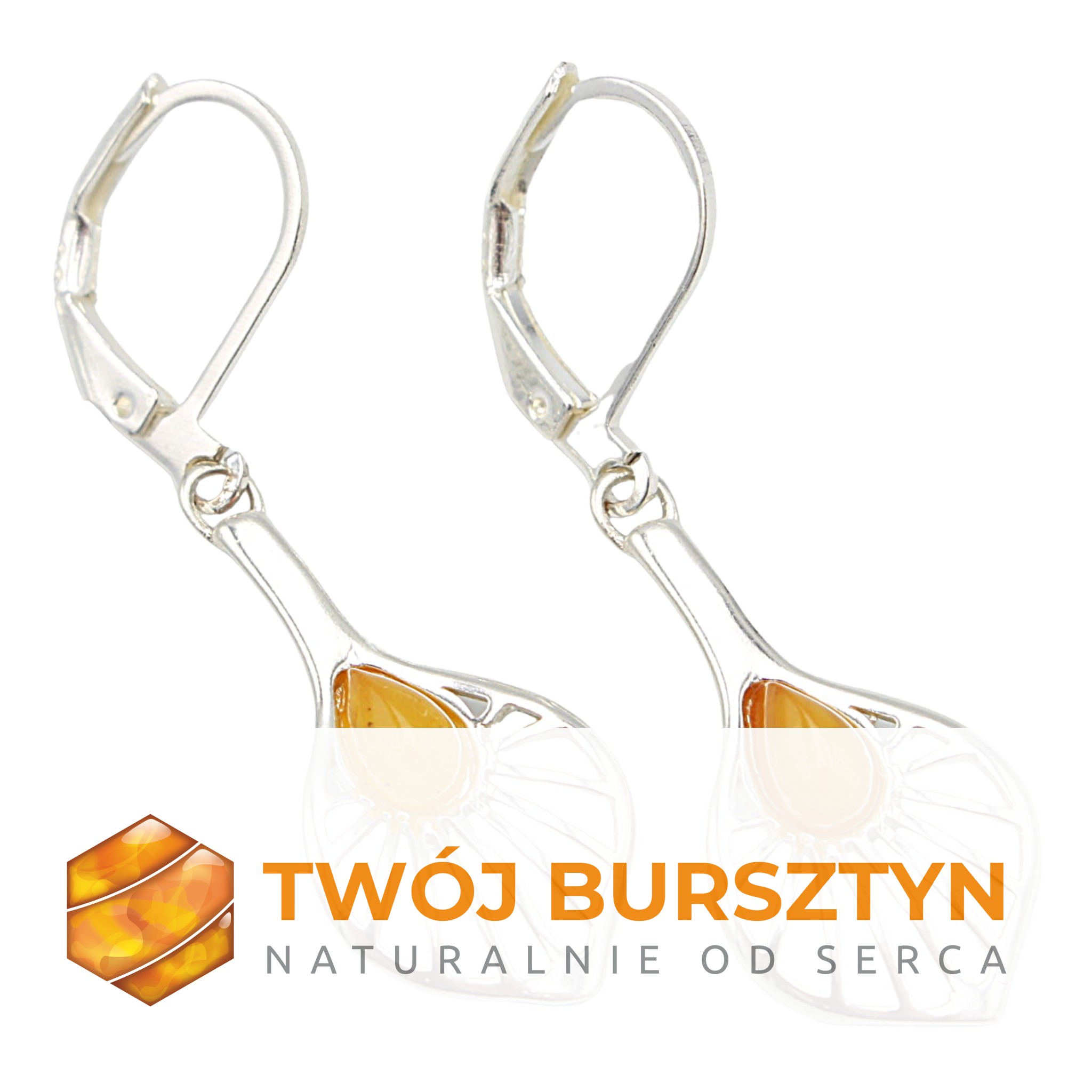 KOLCZYKI SREBRNE z naturalnym bursztynem - MLECZNE
