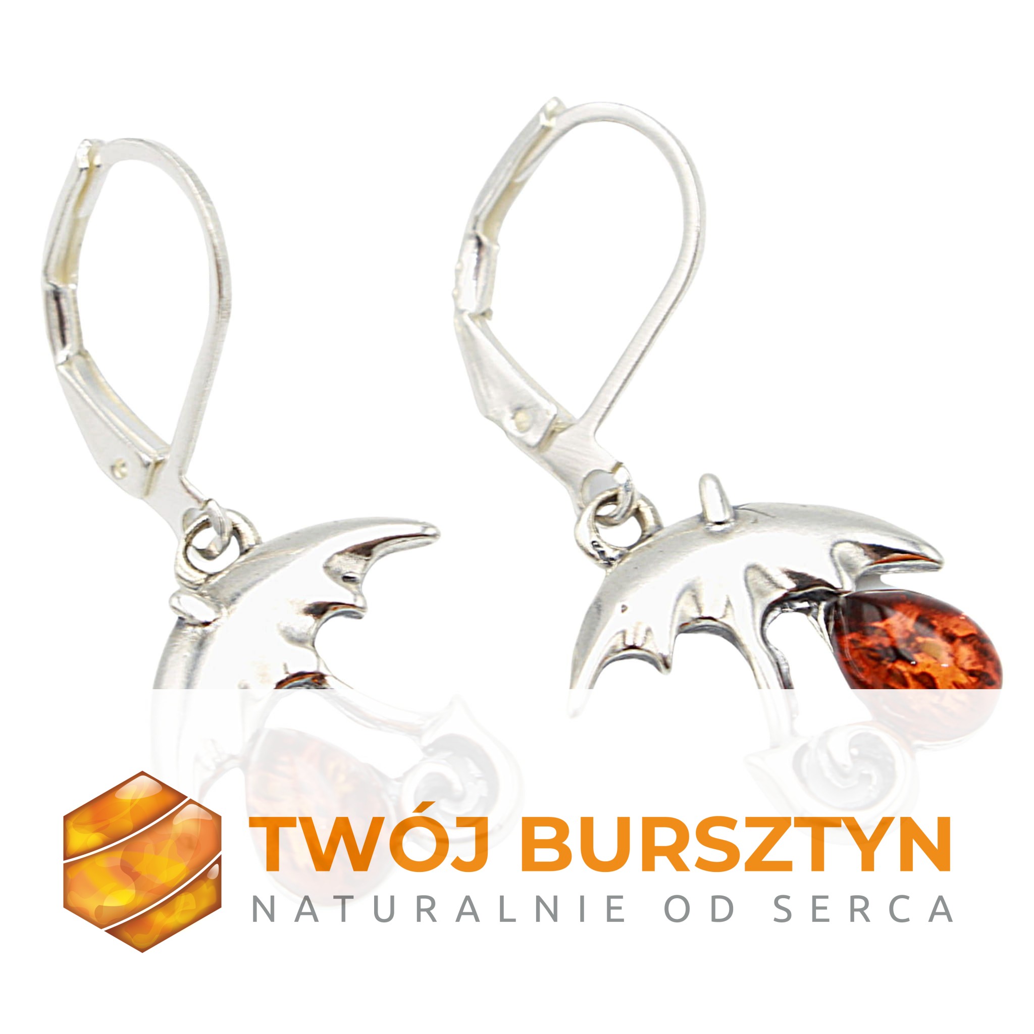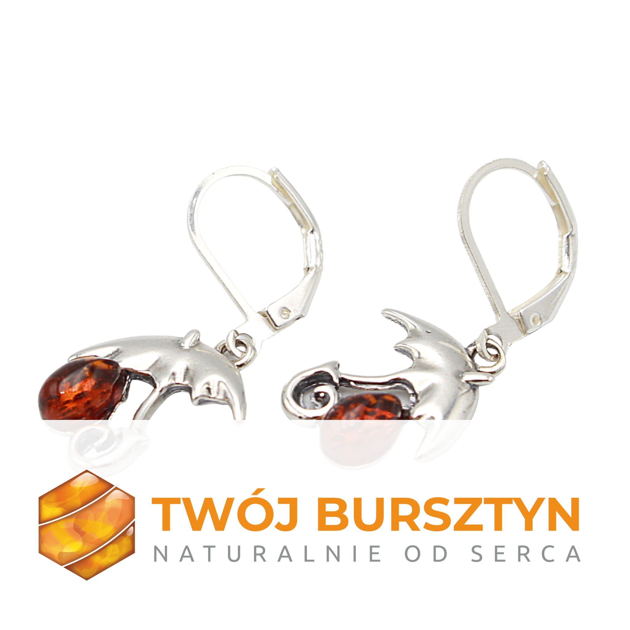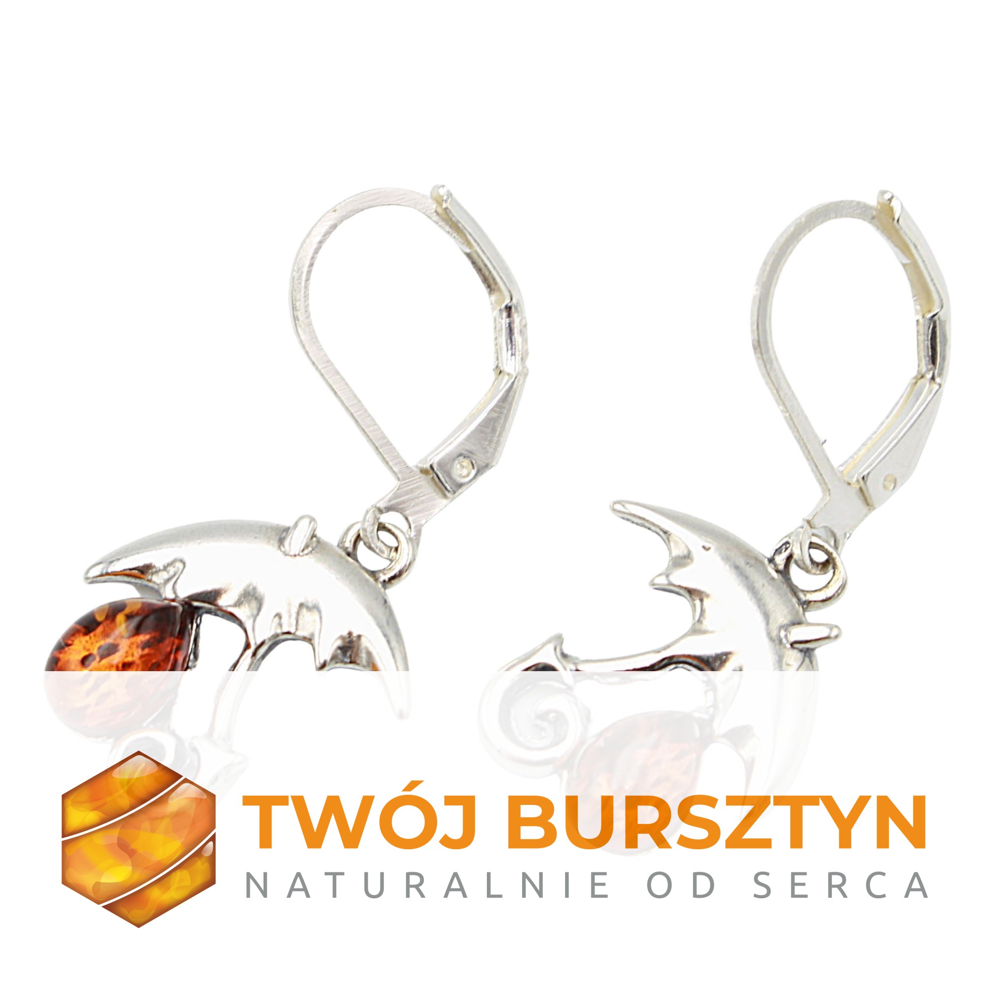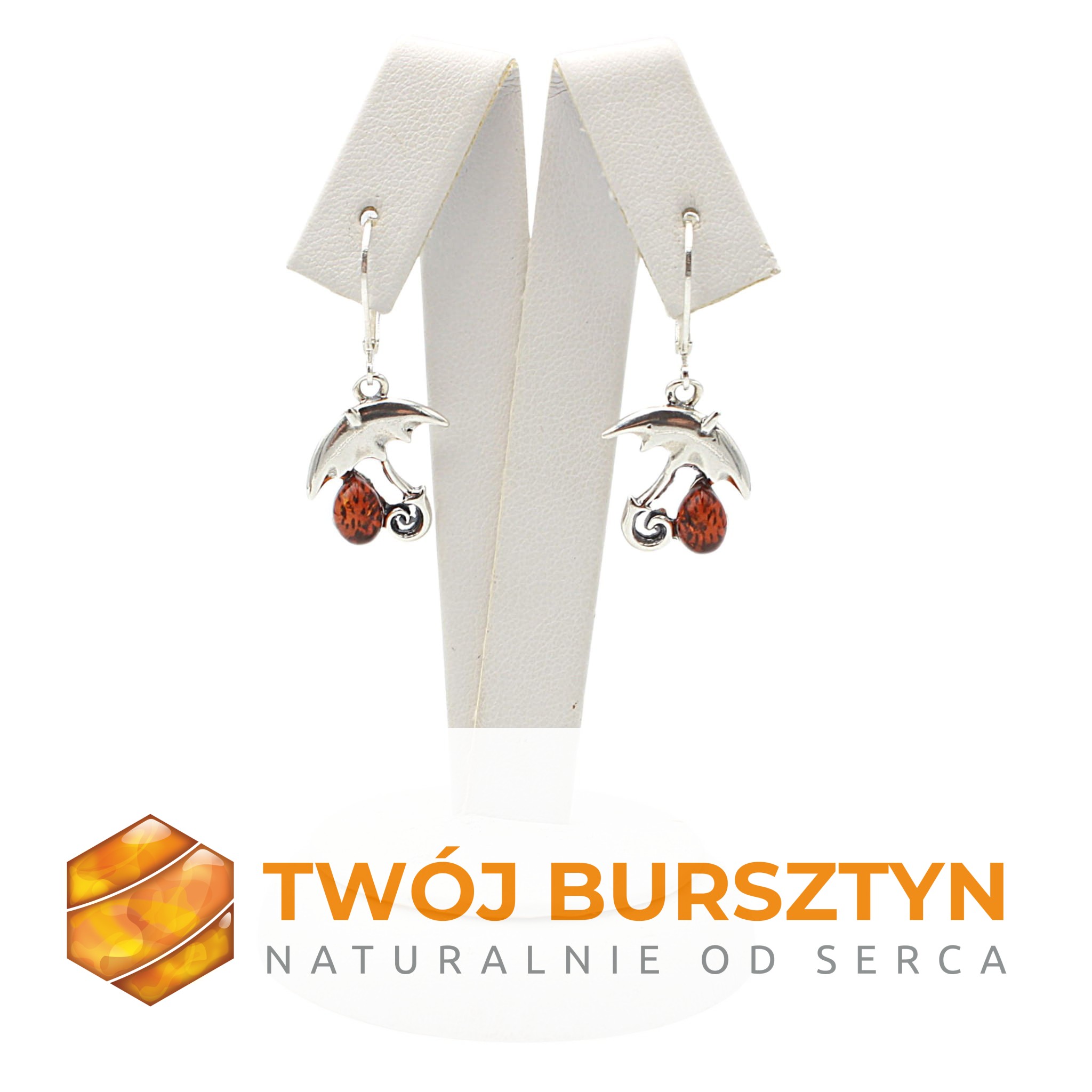 KOLCZYKI srebrne SREBRO z bursztynem BURSZTYN