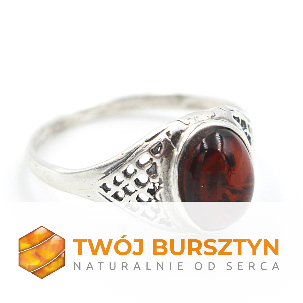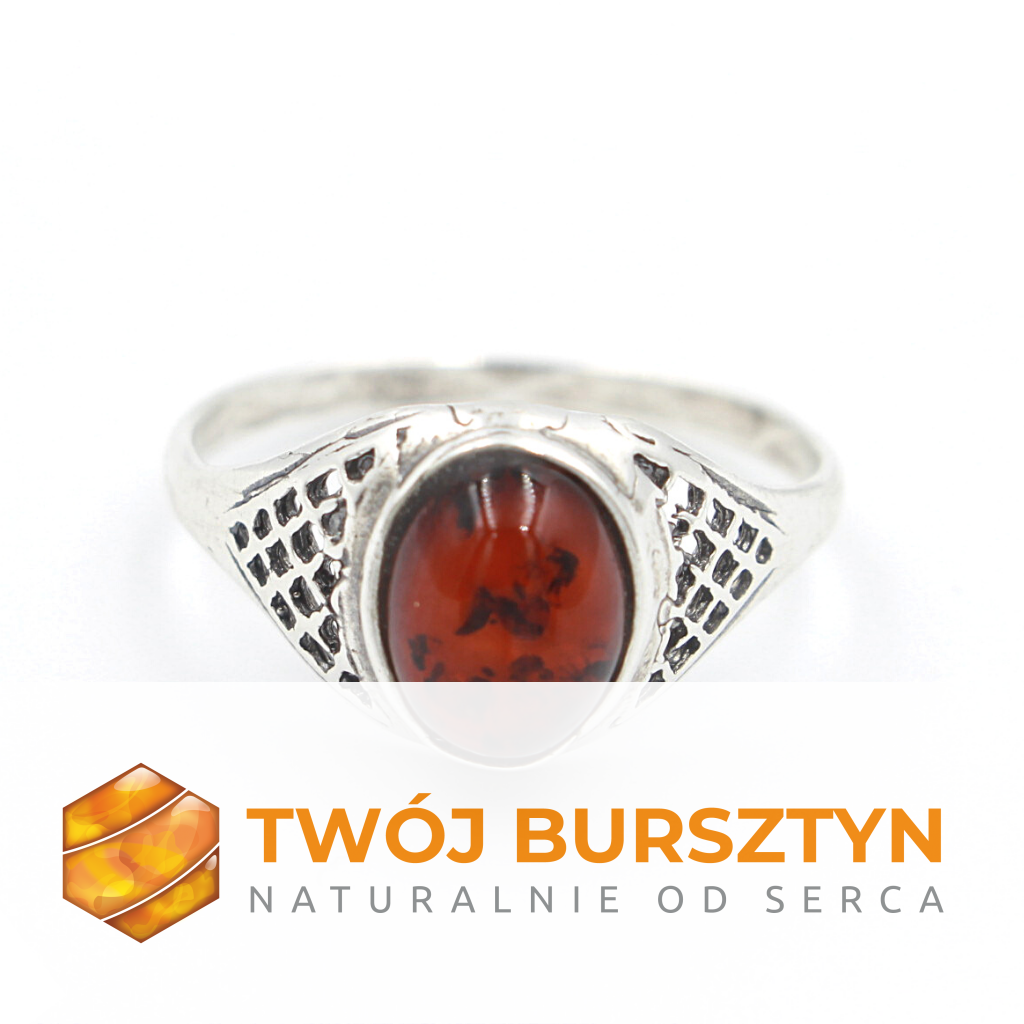 PIERŚCIONEK SREBRNY z bursztynem BURSZTYN r.13