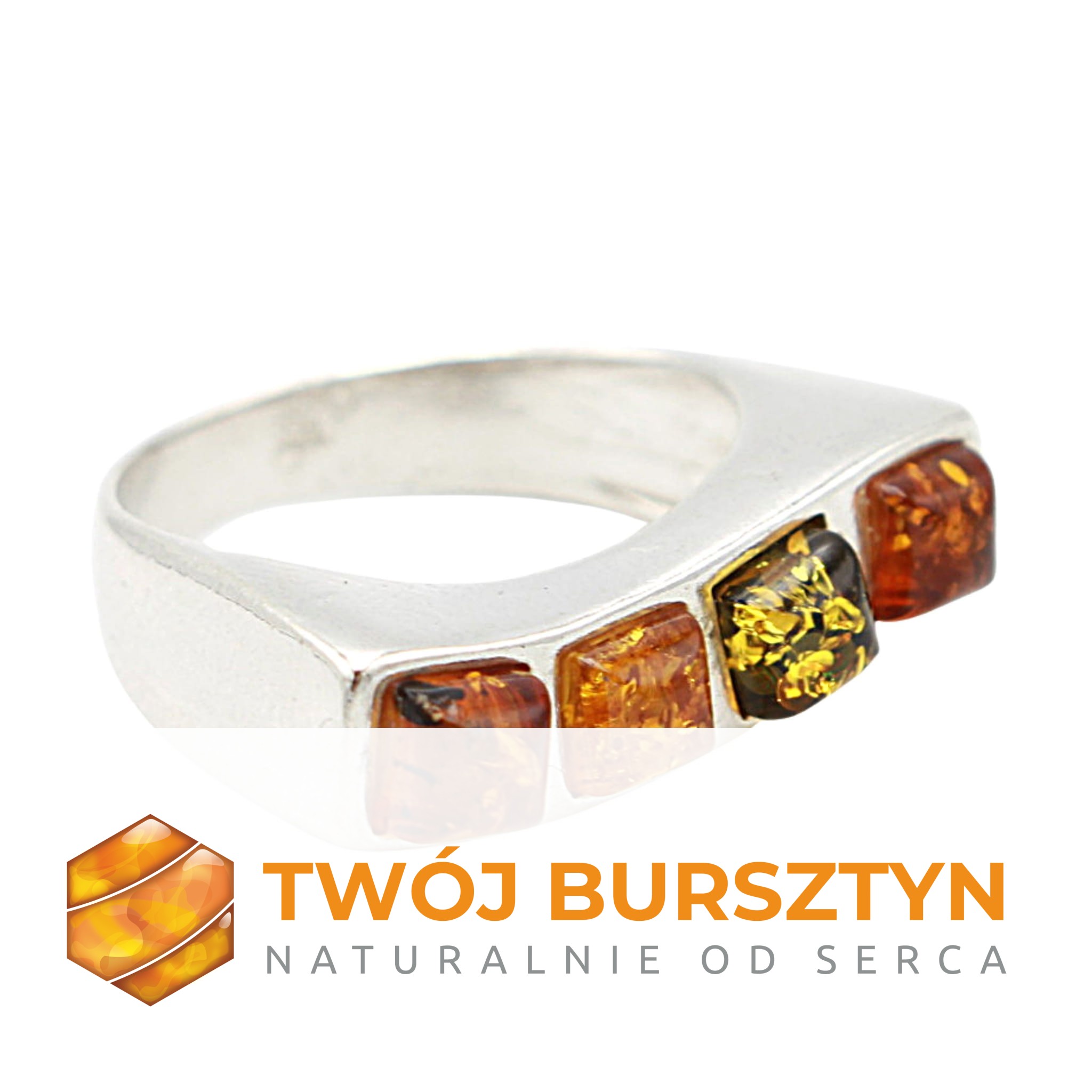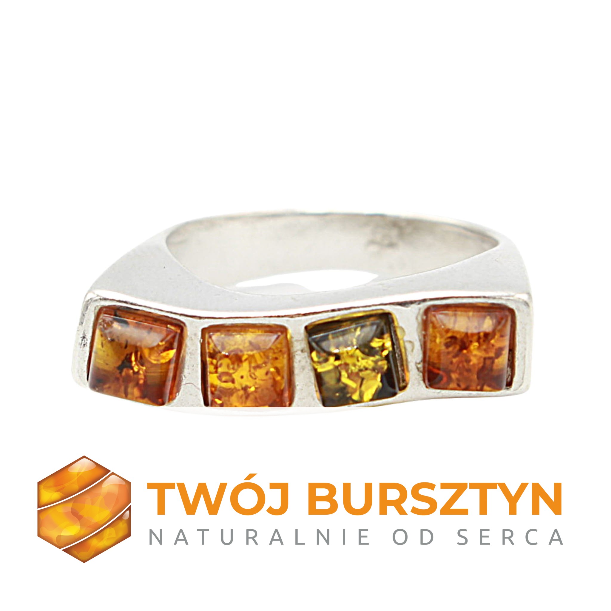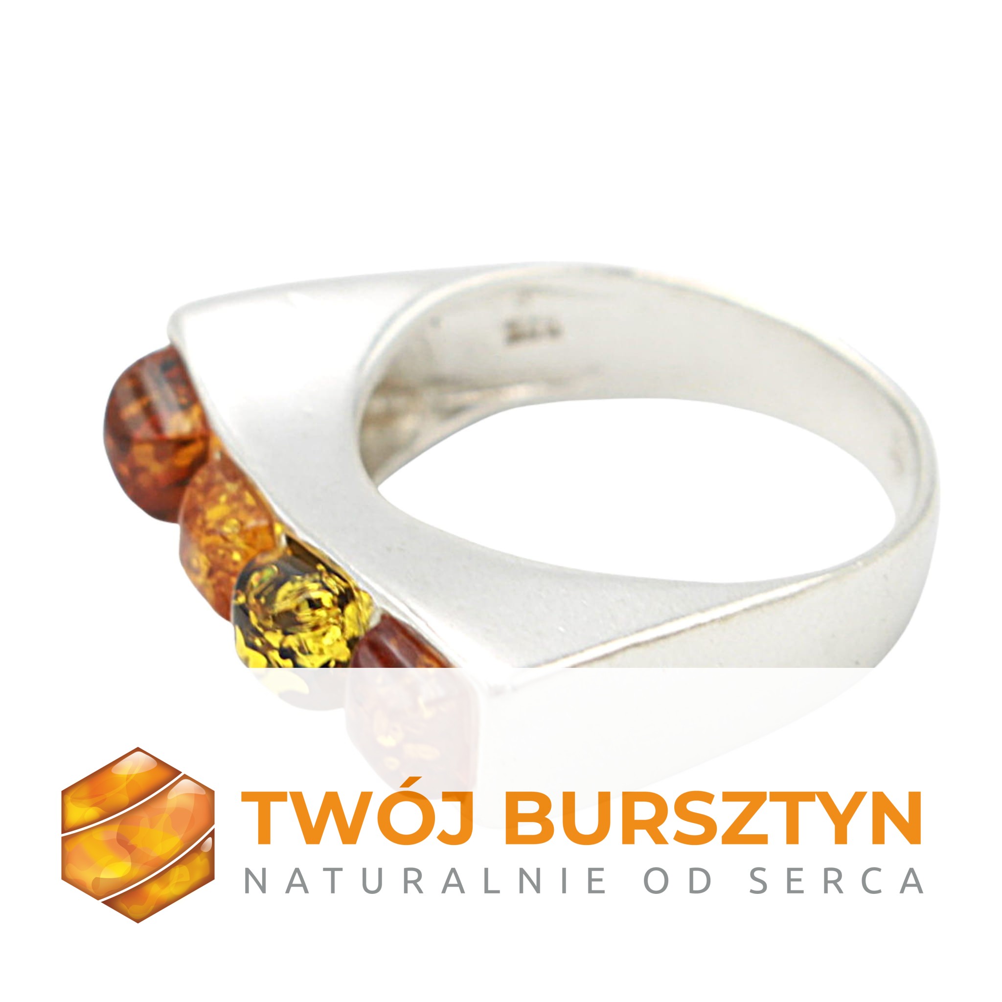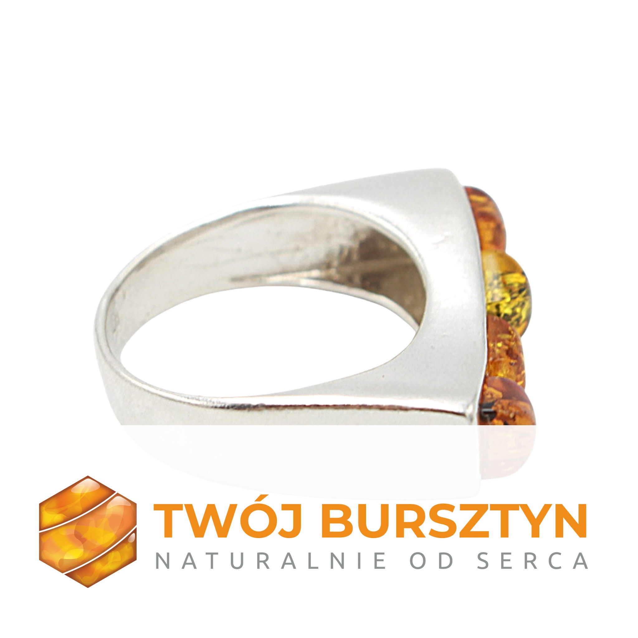 PIERŚCIONEK z bursztynem SREBRNY srebro 925 r.13