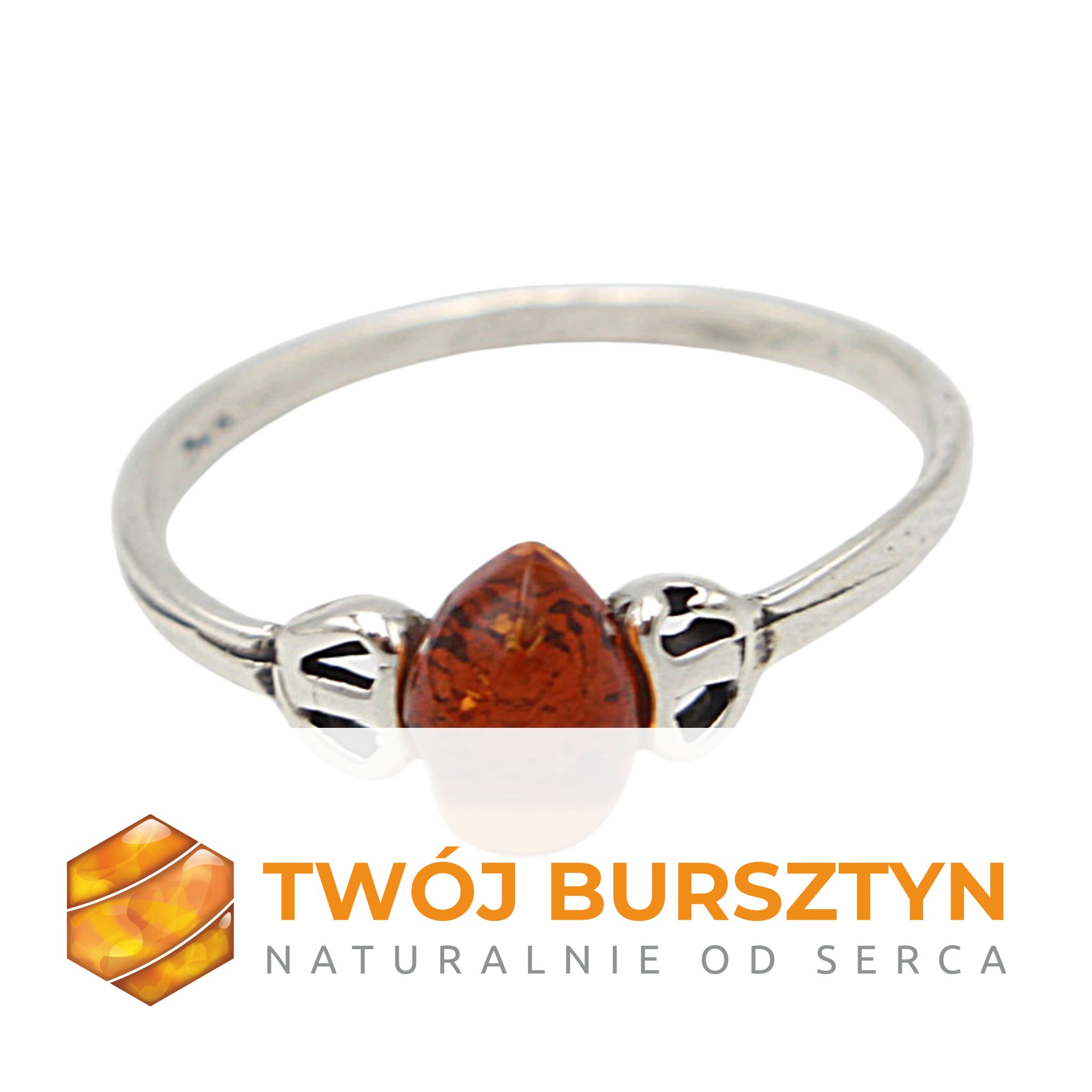 PIERŚCIONEK z bursztynem srebrny BURSZTYN r.10