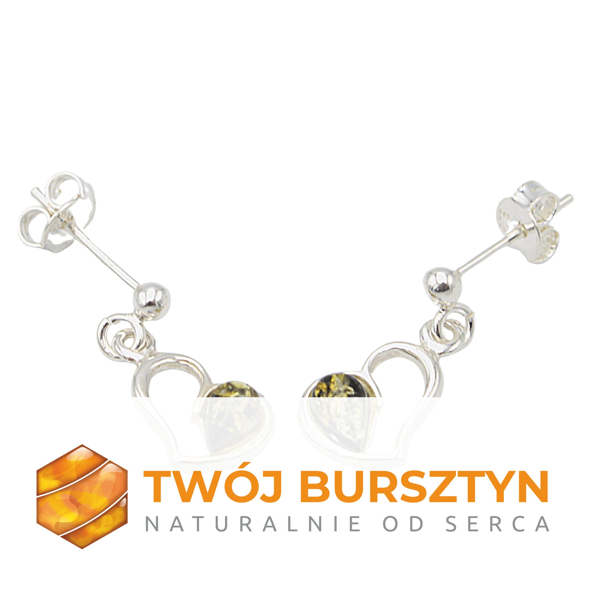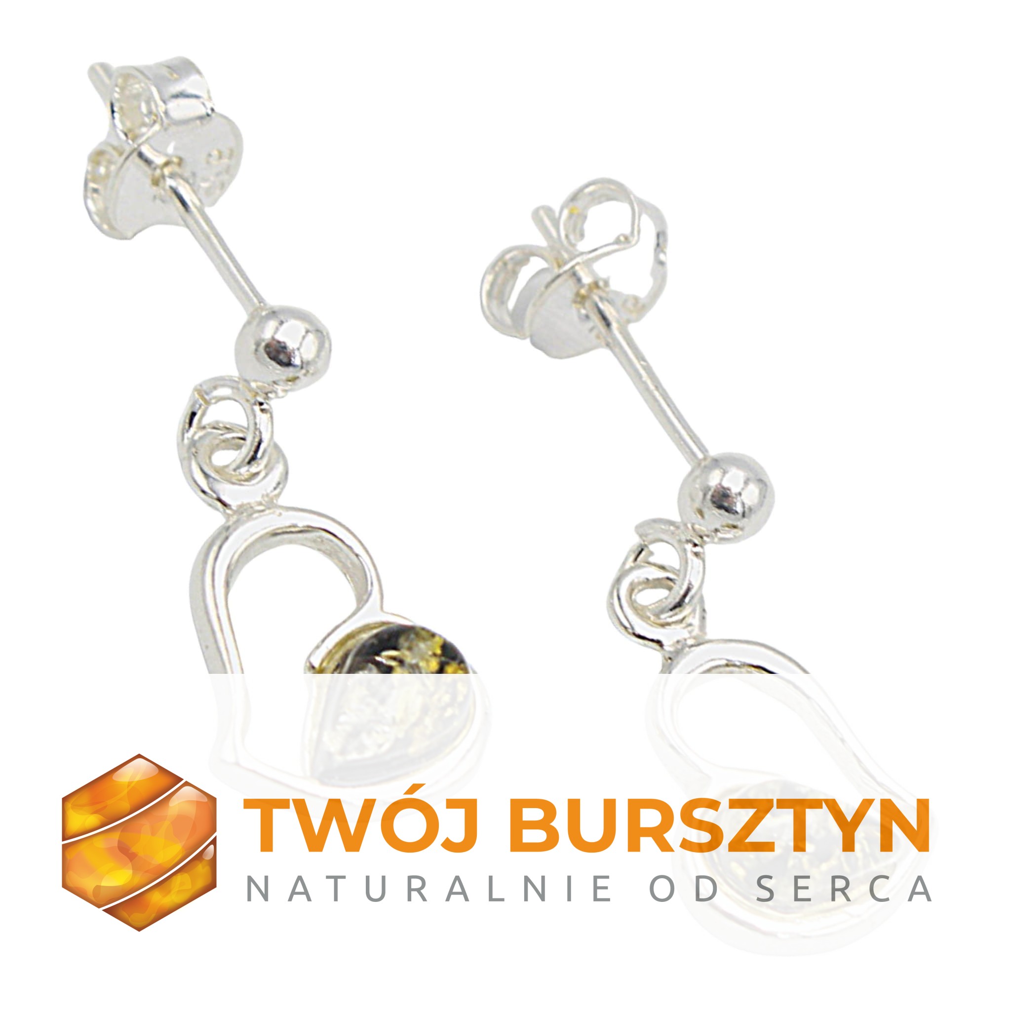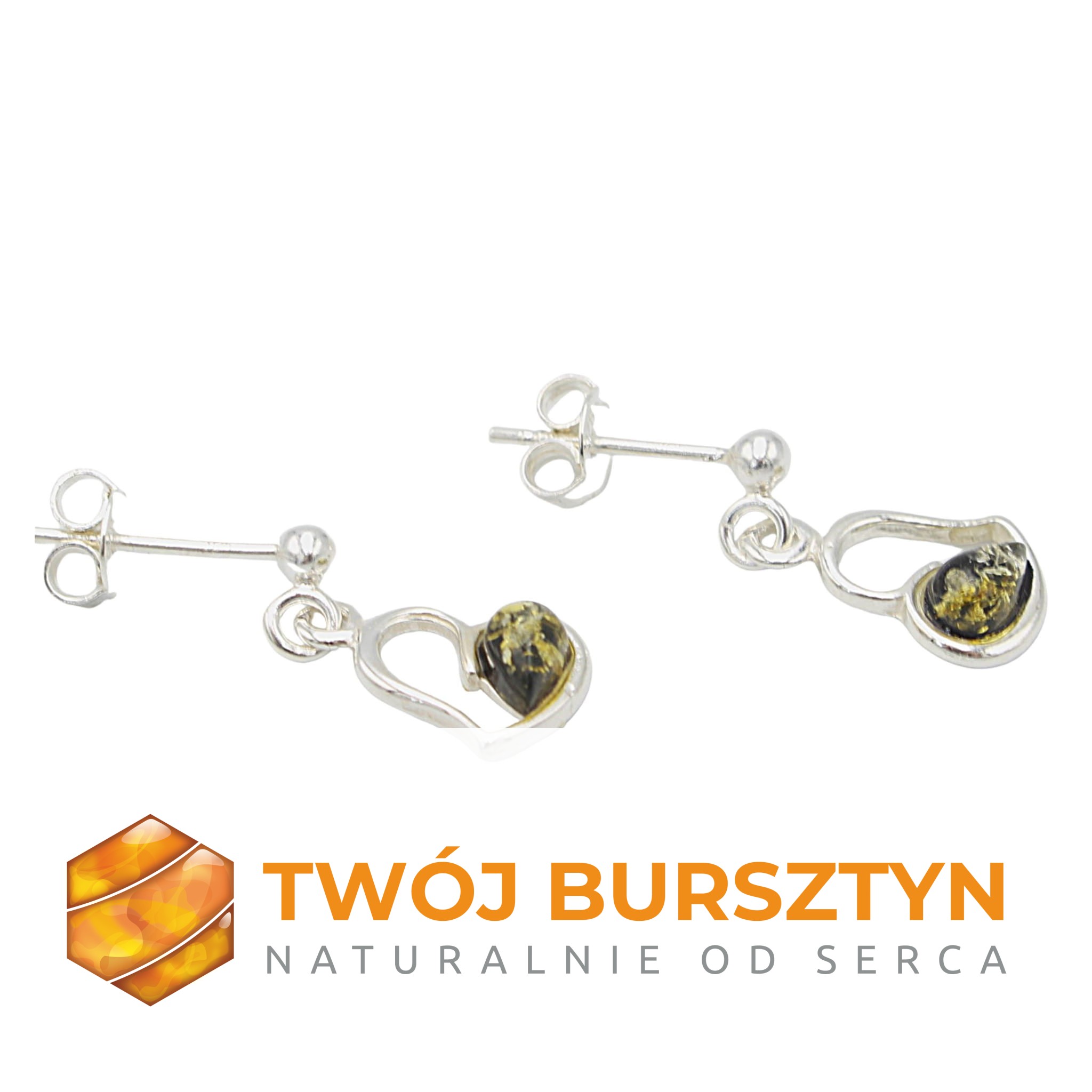 SERCA KOLCZYKI z bursztynem BURSZTYN naturalny SREBRO 925 sztyfty