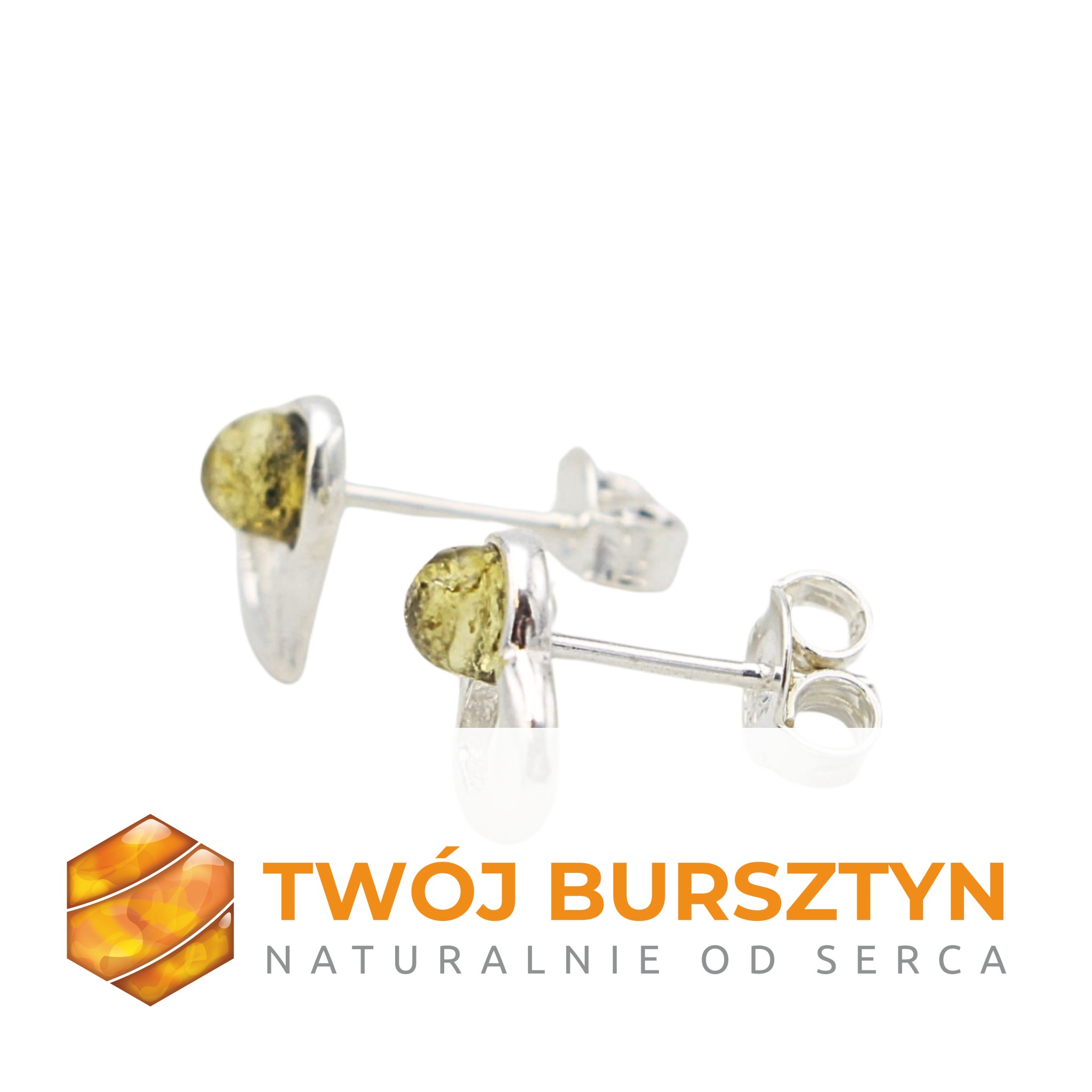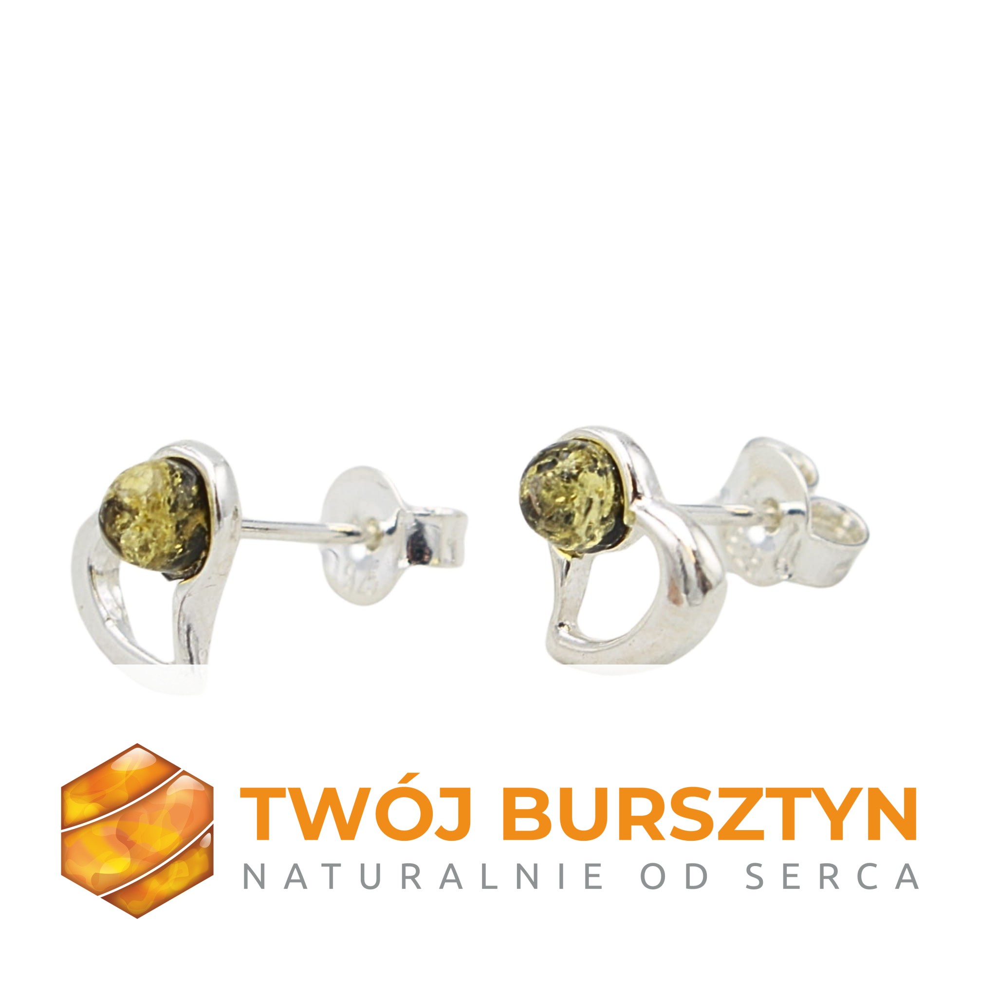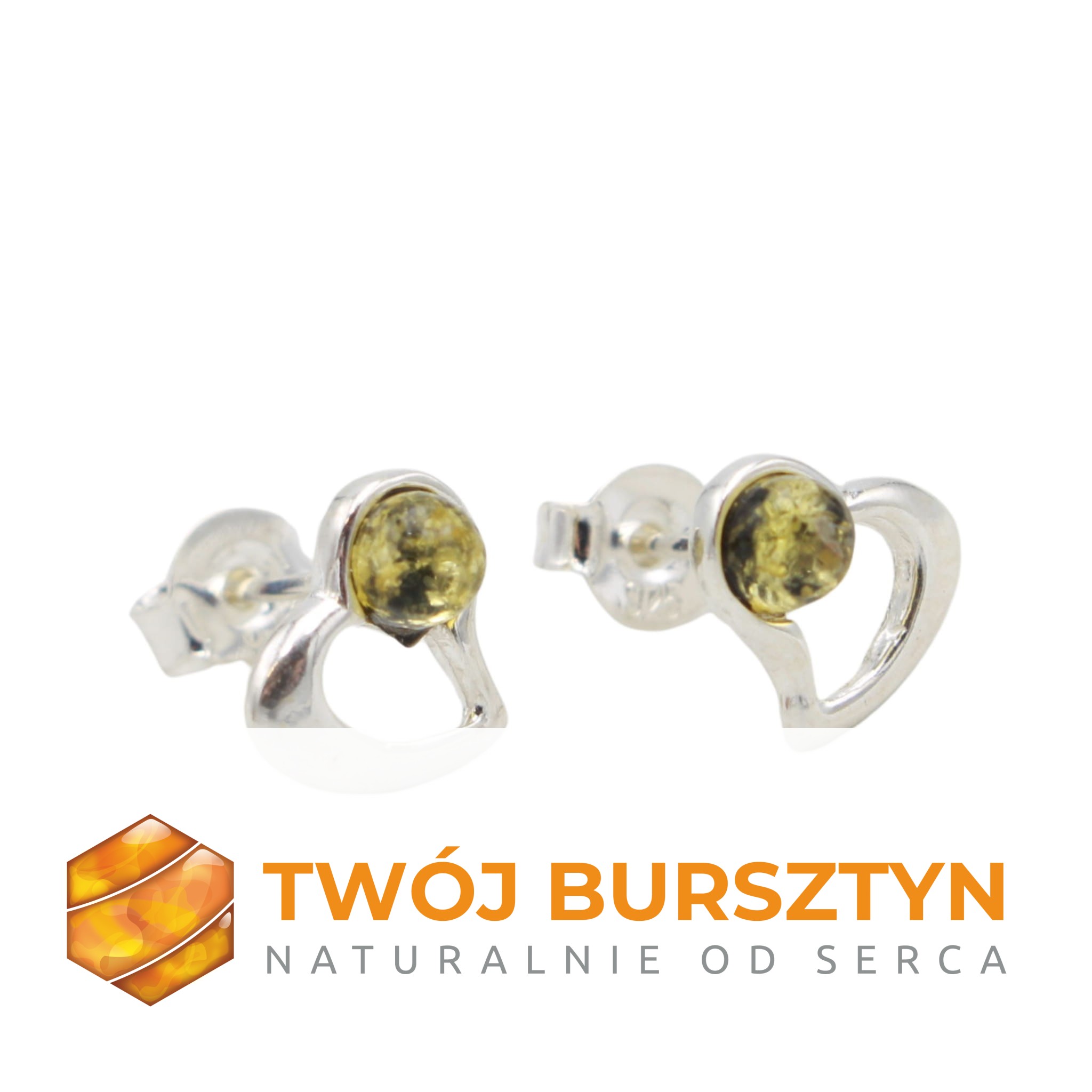 SREBRNE KOLCZYKI serca z bursztynem SZTYFTY
