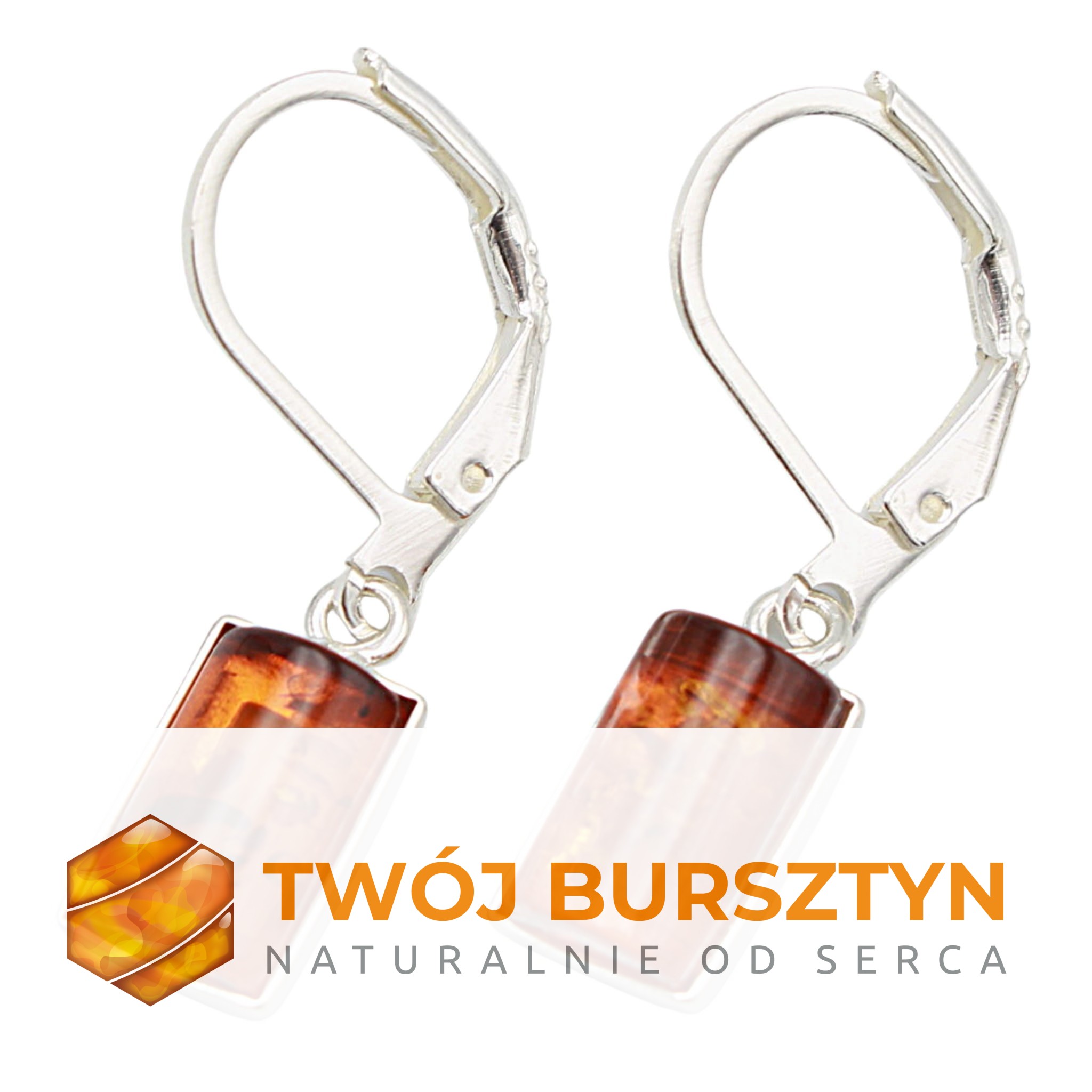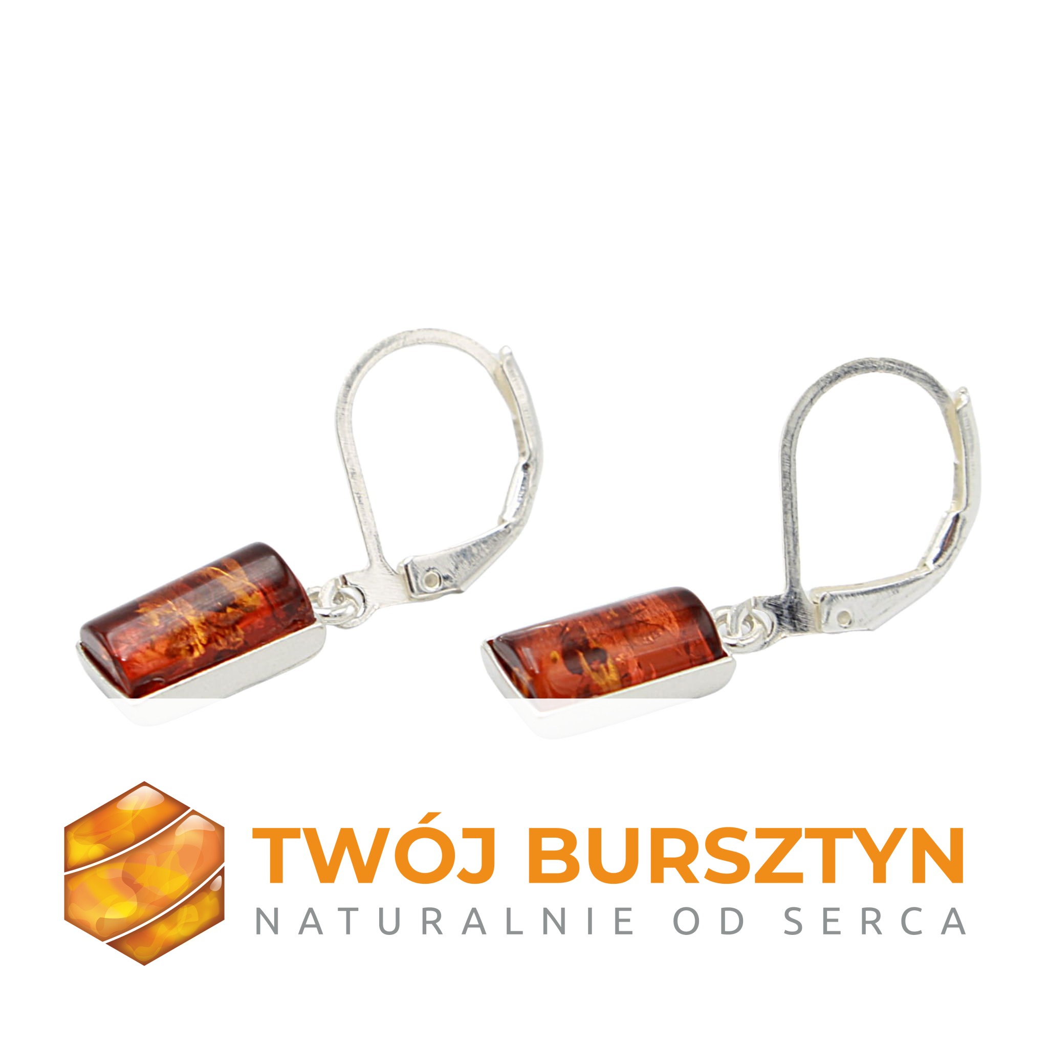 SREBRNE KOLCZYKI z bursztynem BURSZTYN koniakowe