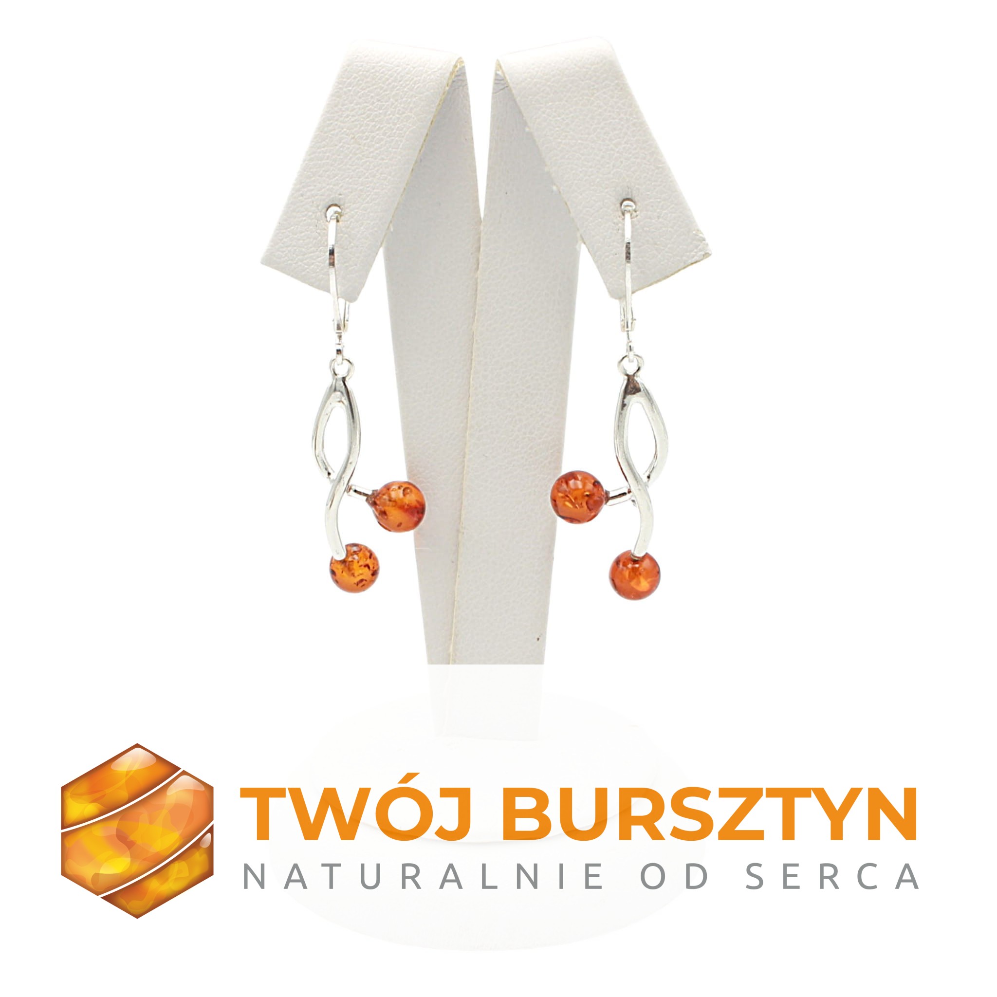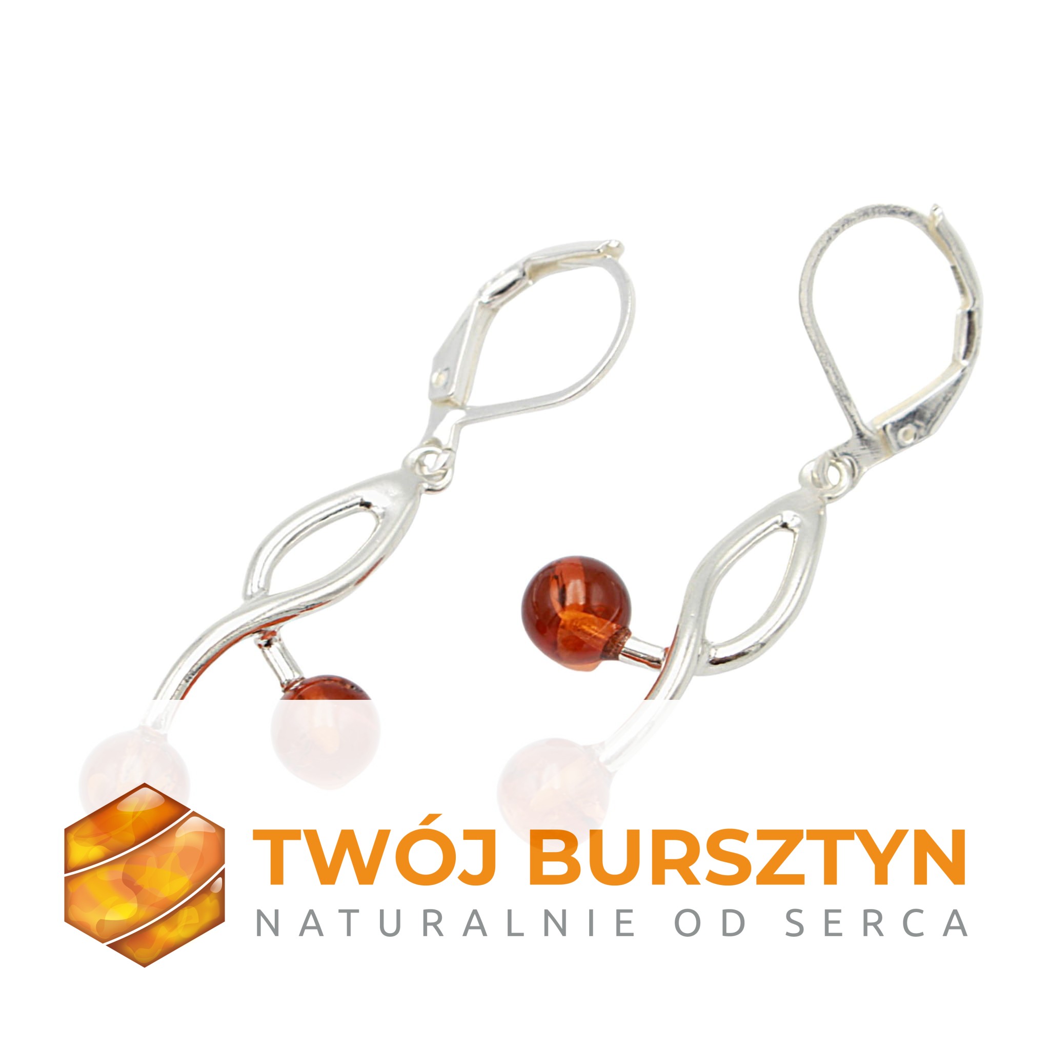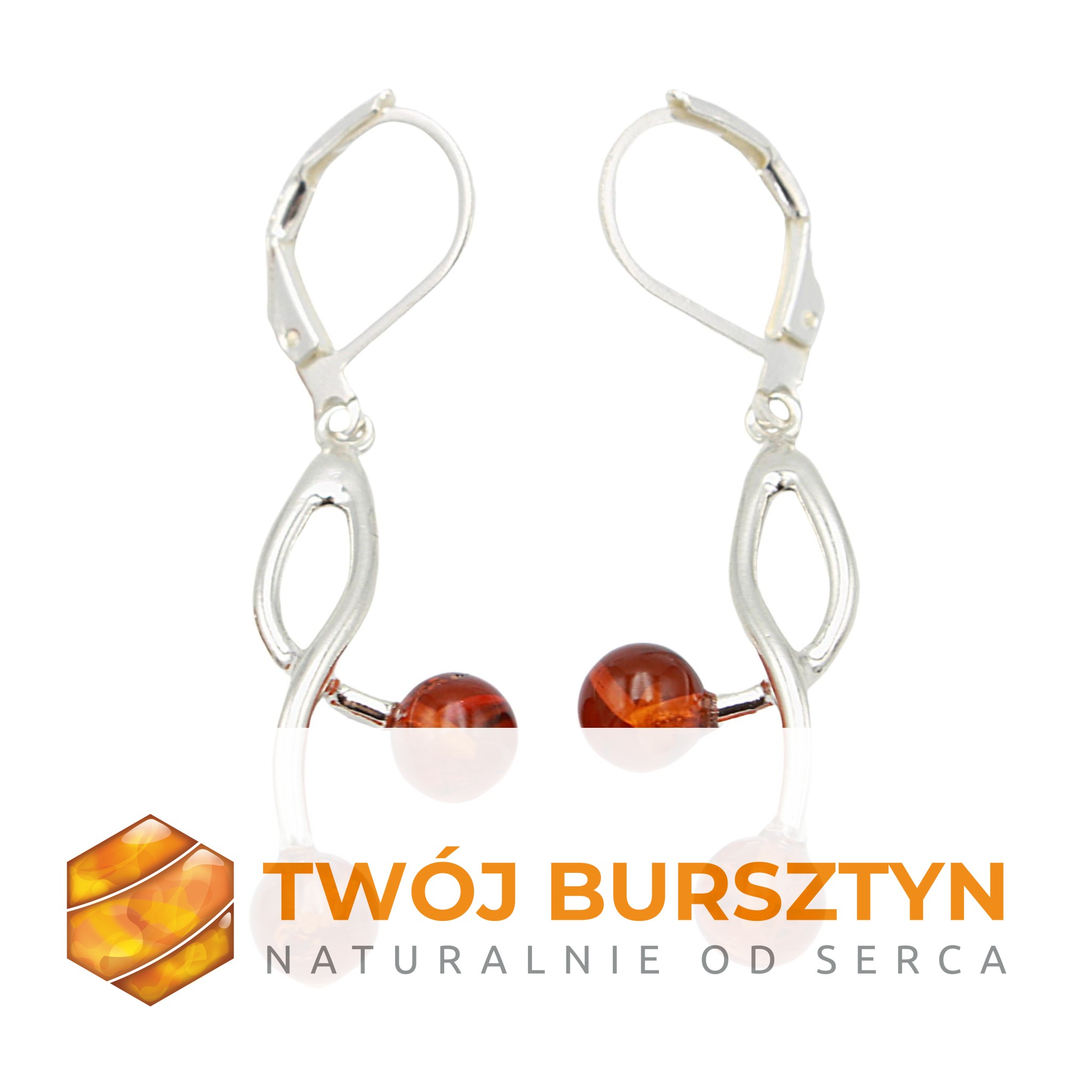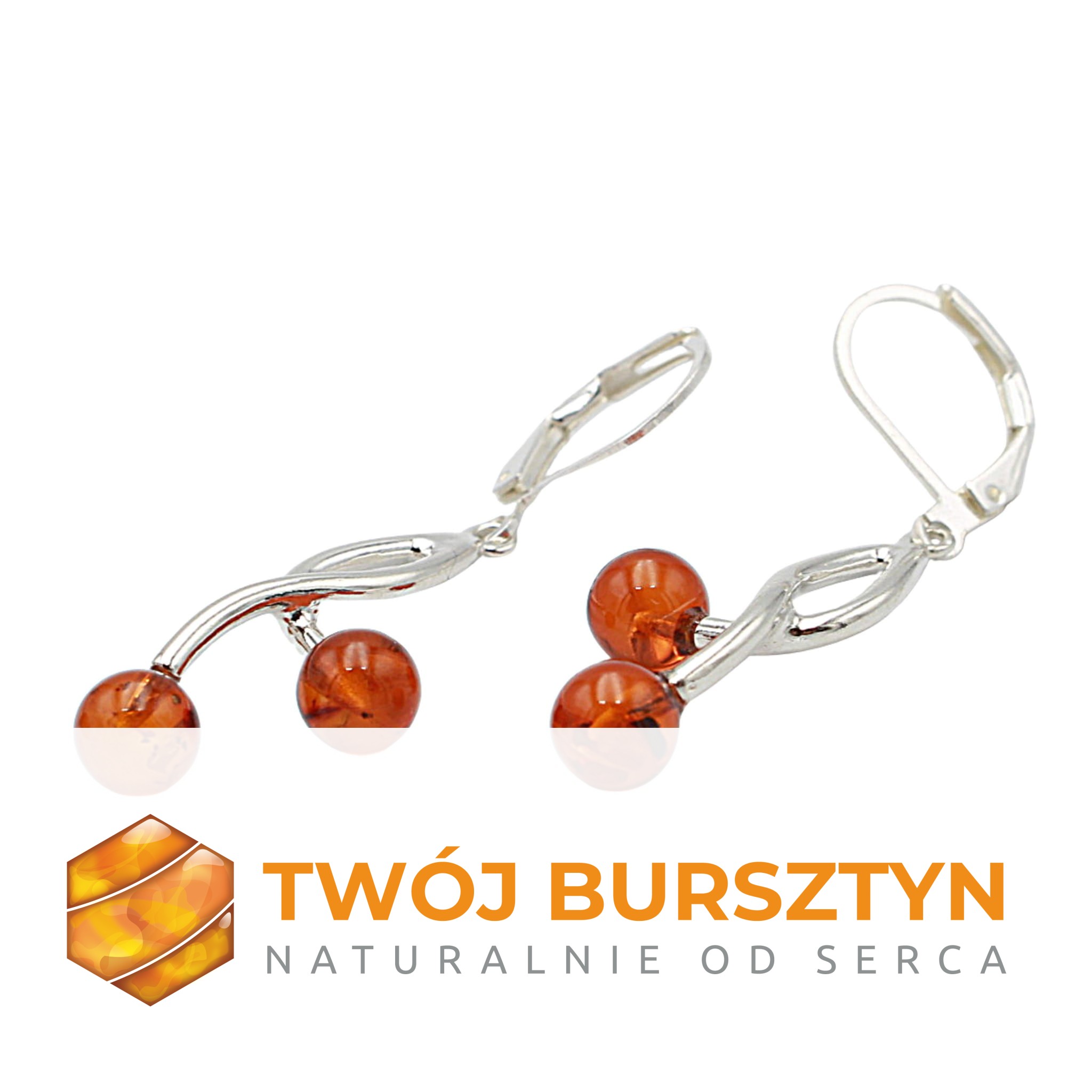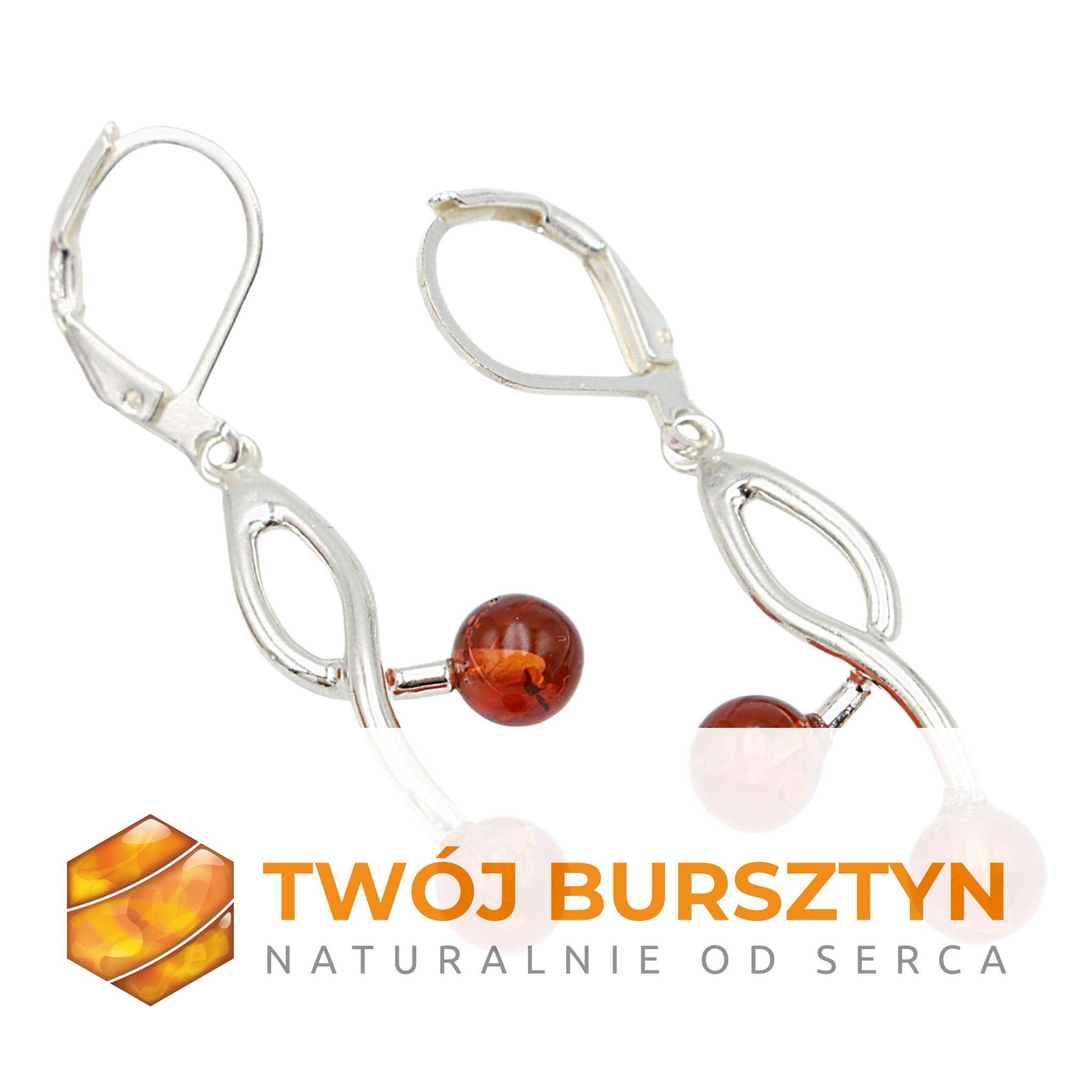 SREBRNE KOLCZYKI z bursztynem BURSZTYN koniakowe