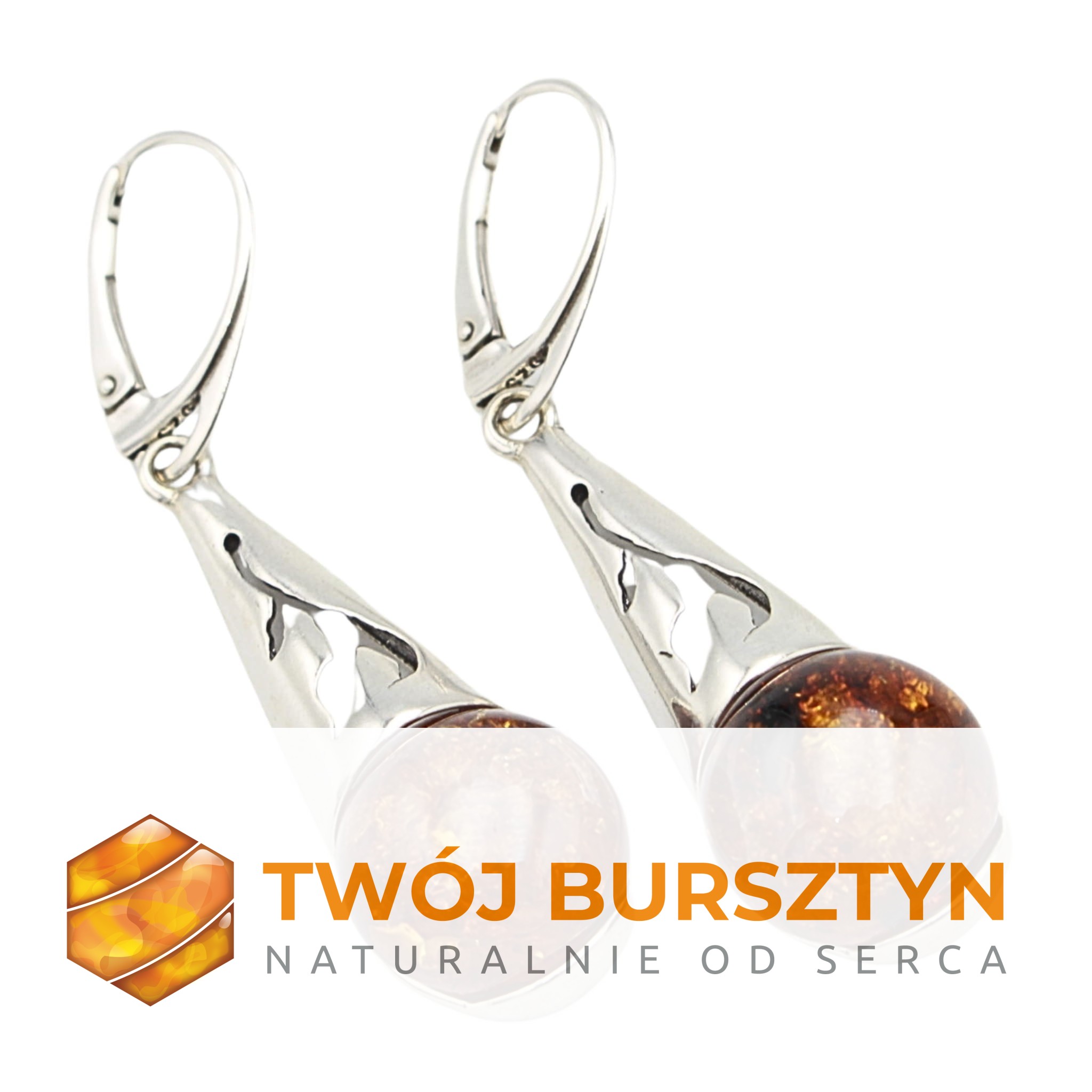 SREBRNE KOLCZYKI z bursztynem SREBRO 925 BURSZTYN Bałtycki
