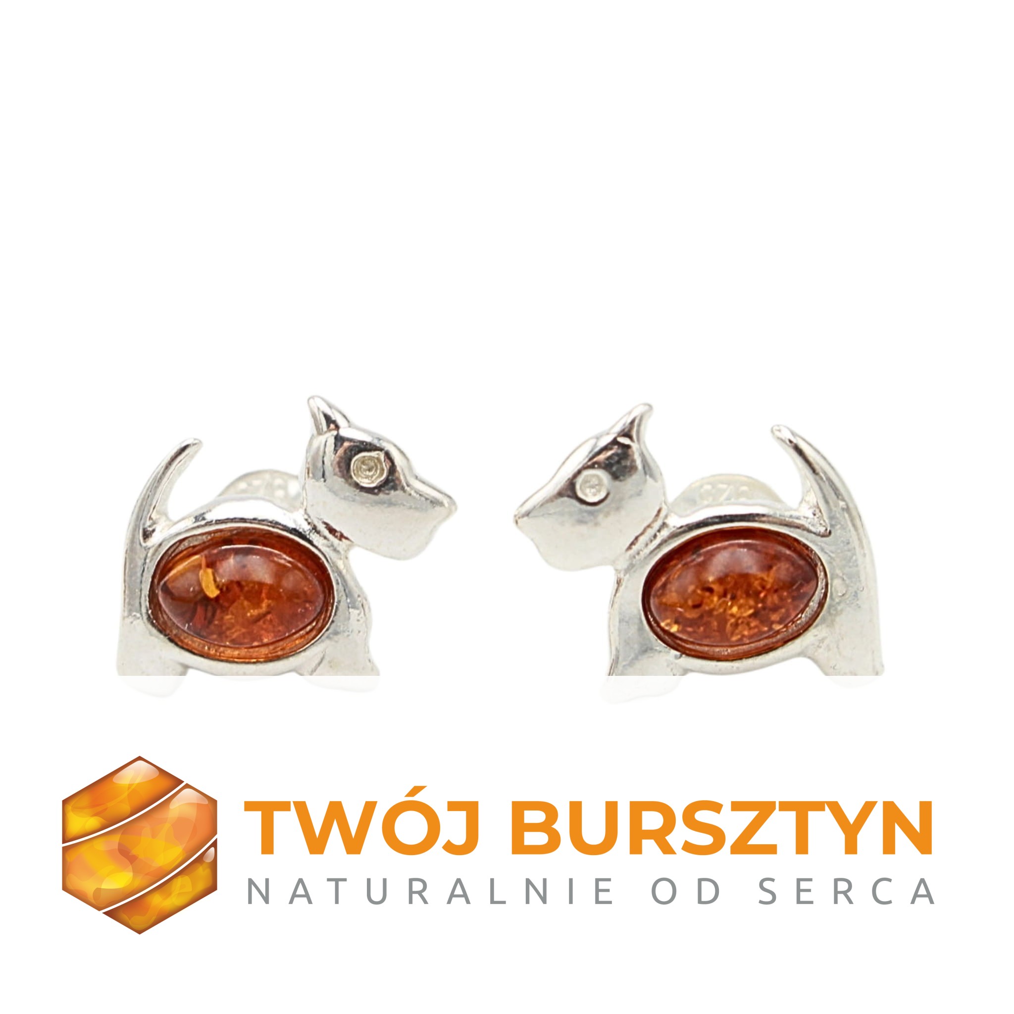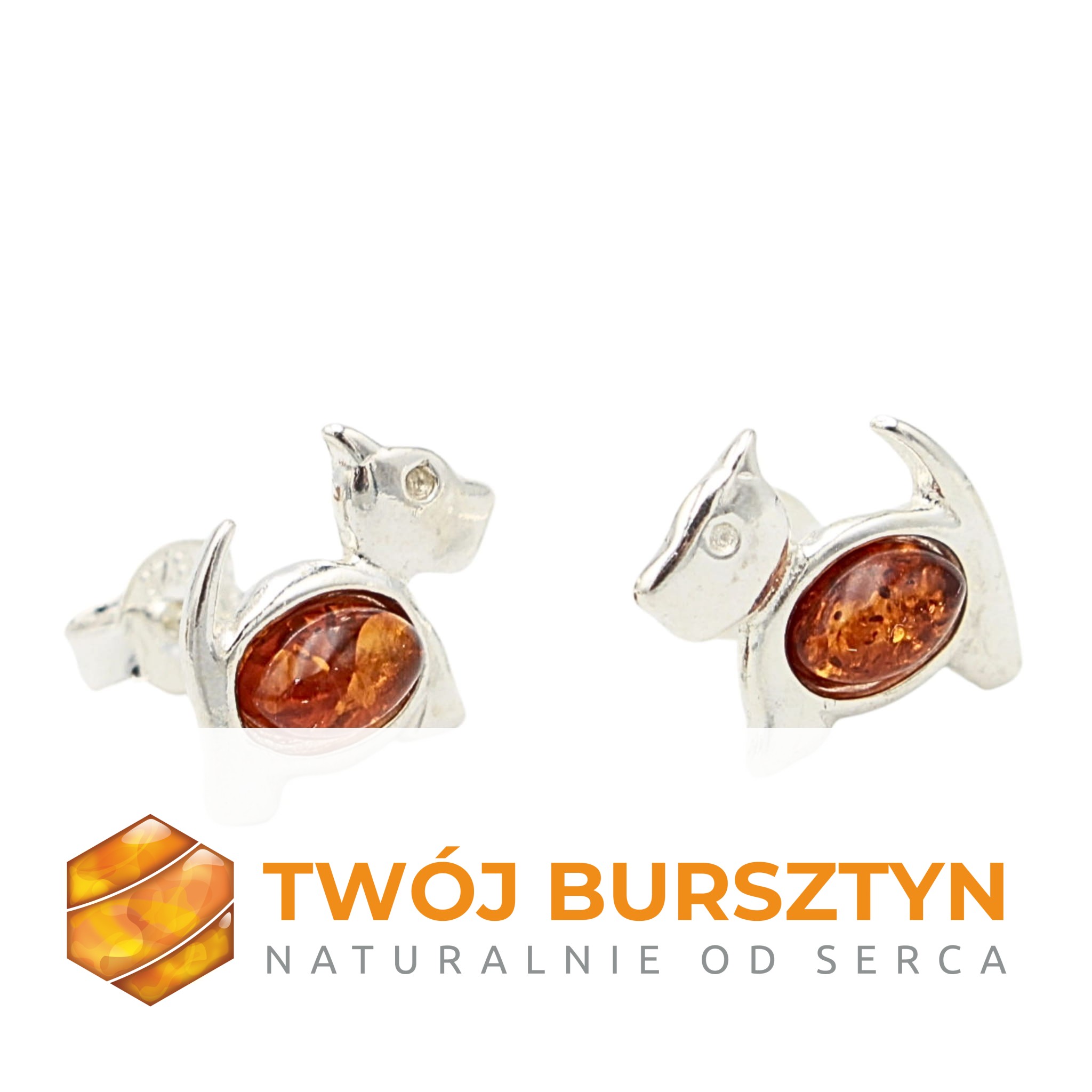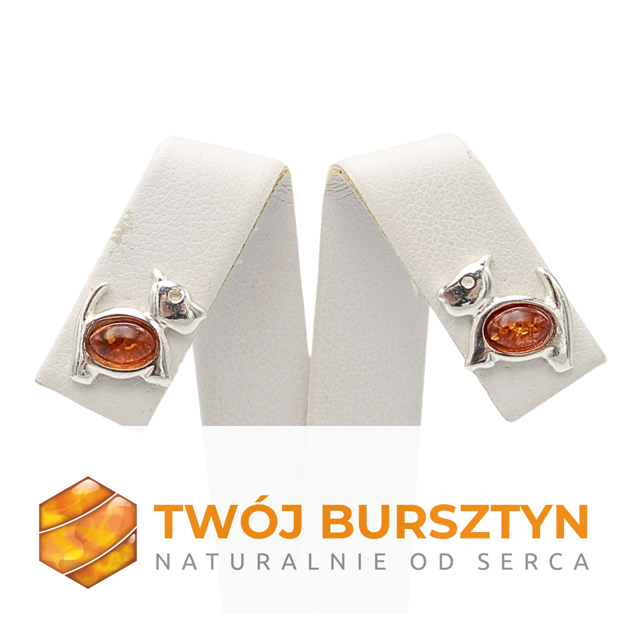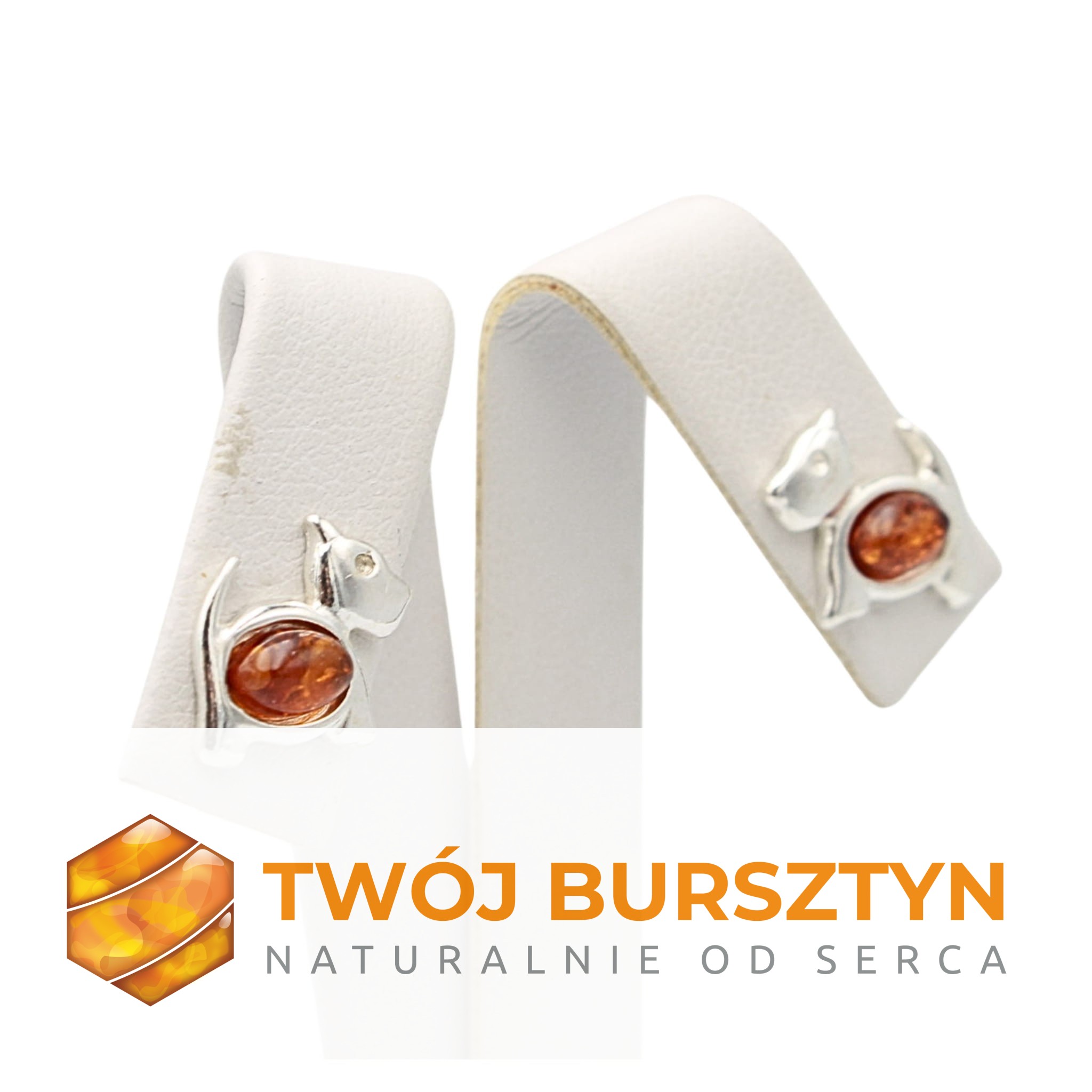 SZTYFTY KOLCZYKI Z BURSZTYNEM SREBRNE srebro 925 bursztyn naturalny