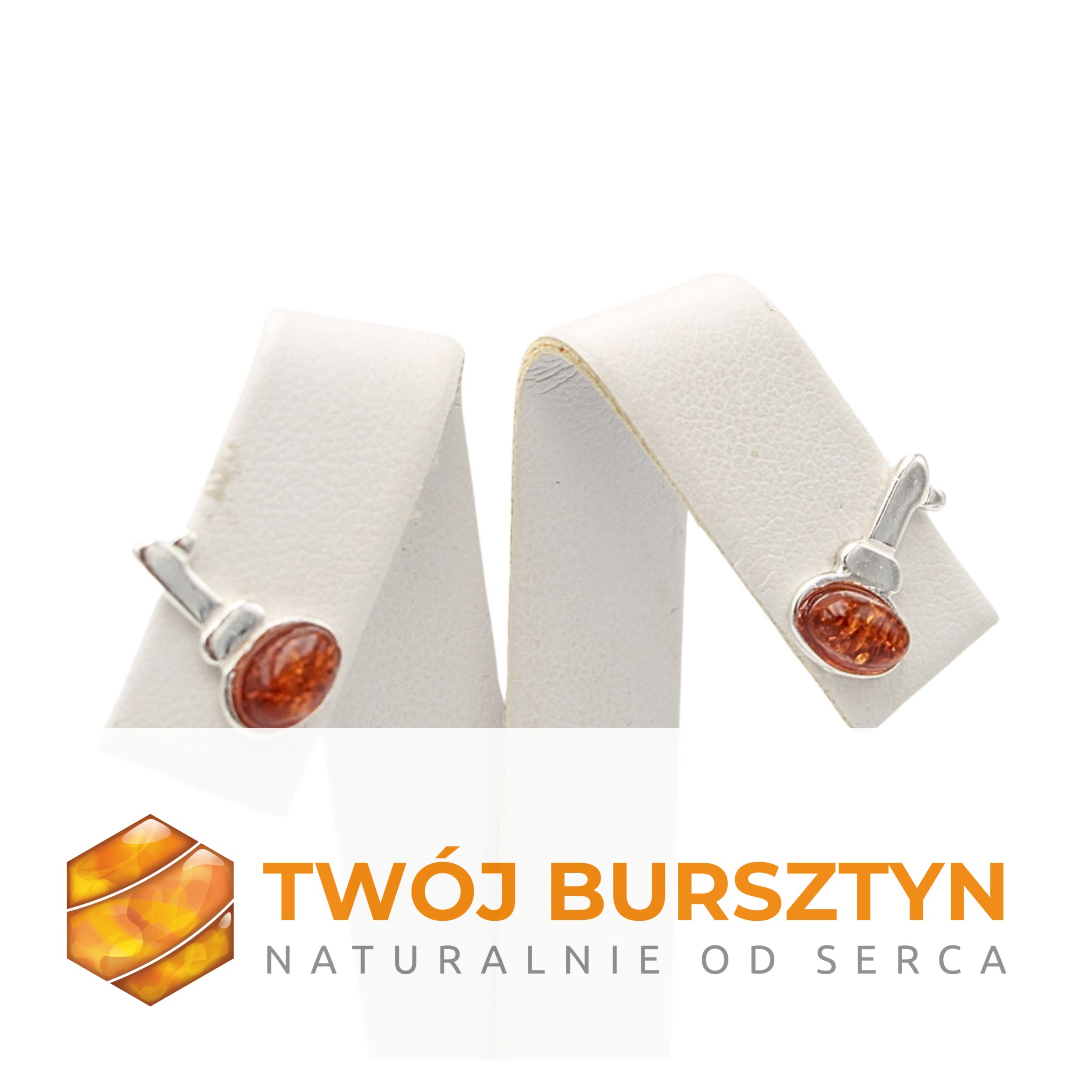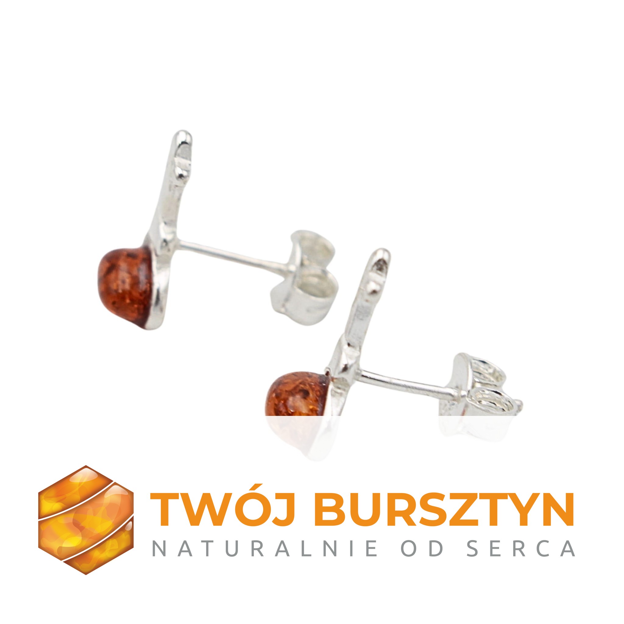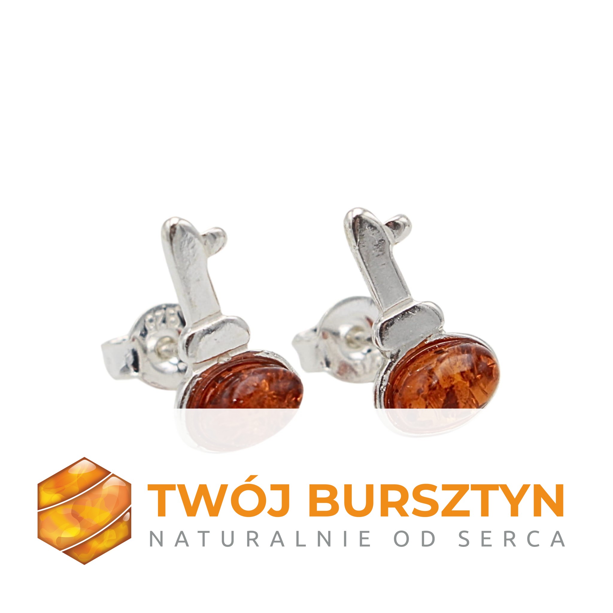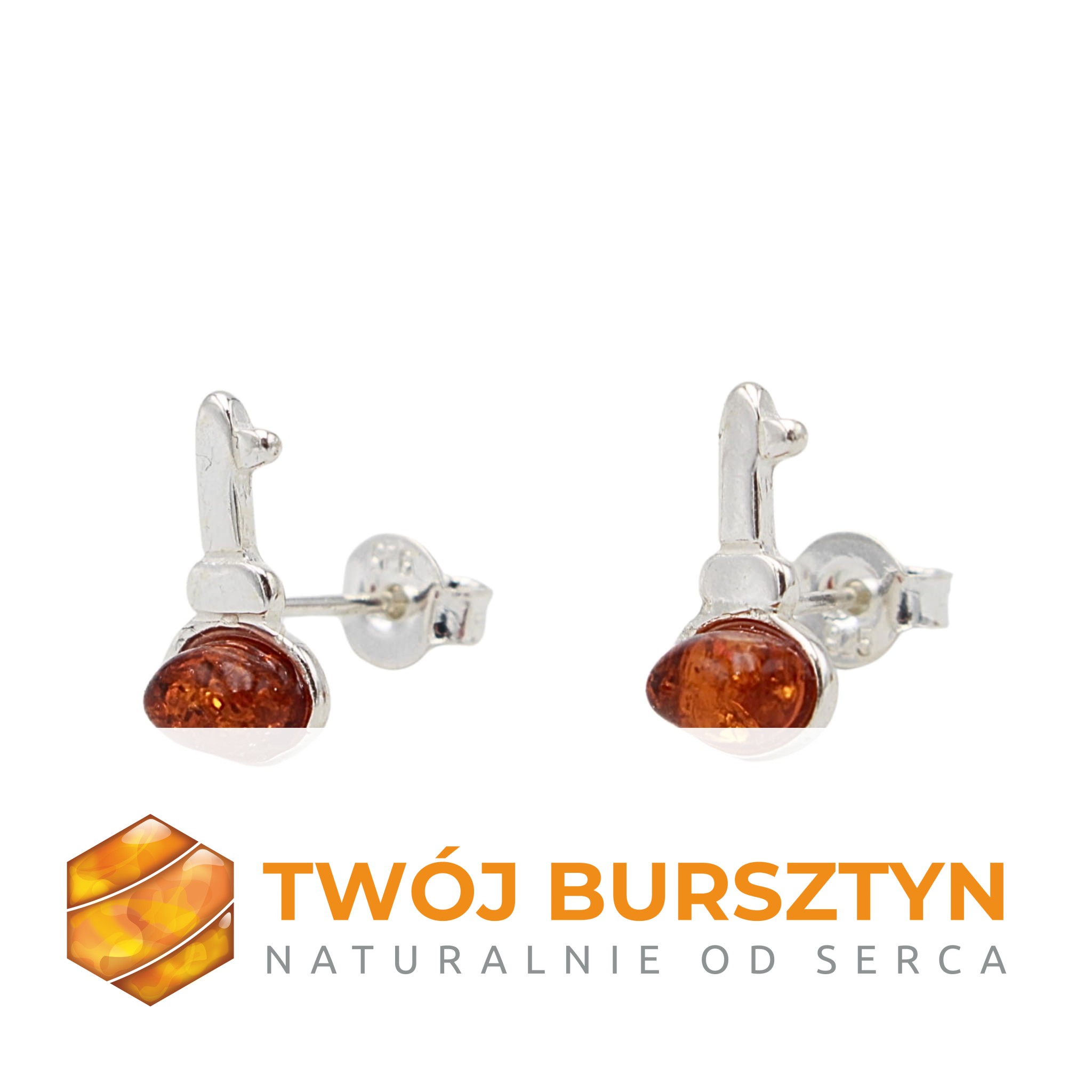 SZTYFTY KOLCZYKI Z BURSZTYNEM SREBRNE srebro 925 bursztyn naturalny